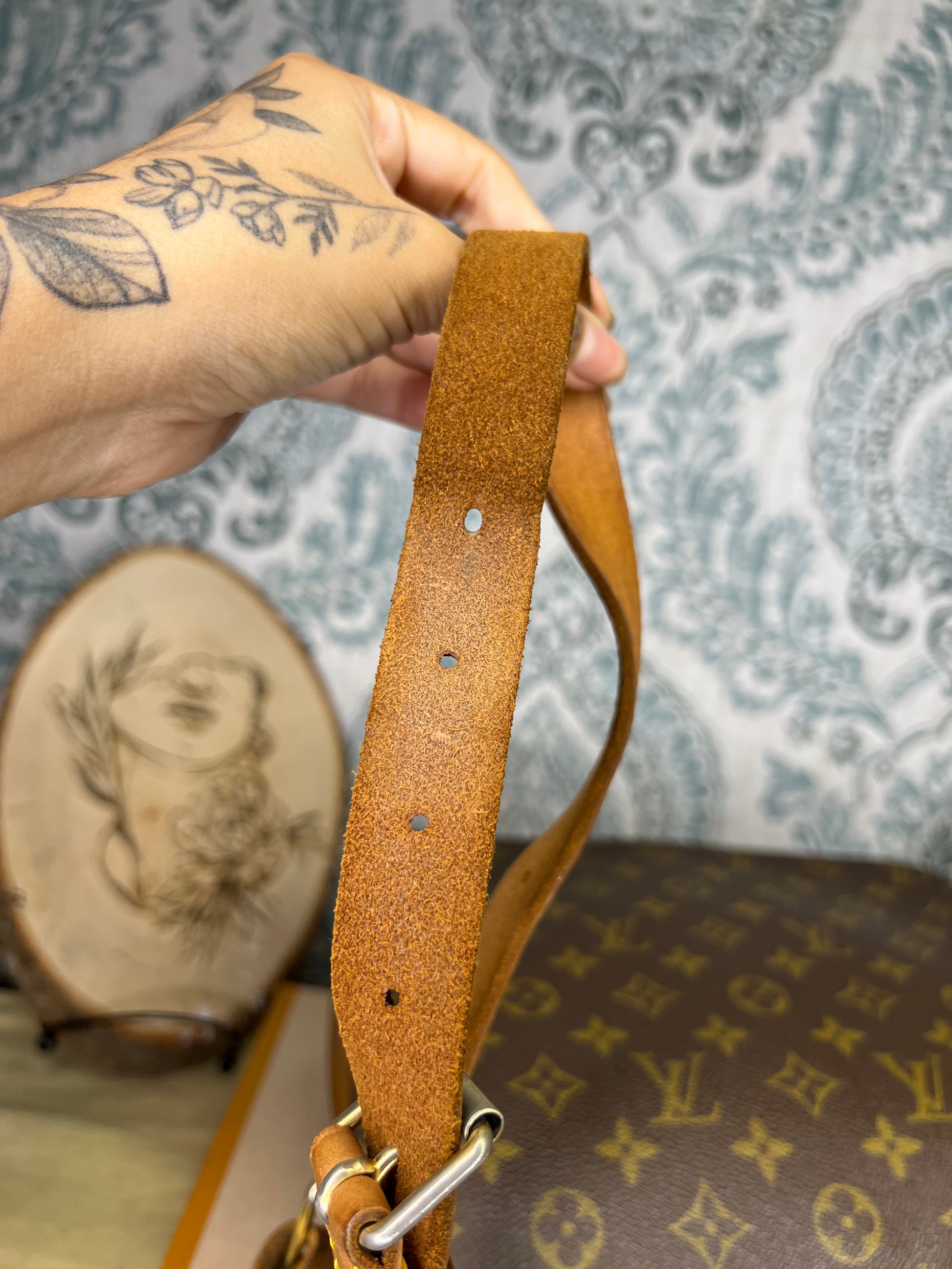 πΈ Strap does have wrinkles and scuffs, but itβs sturdy. No deep cracks. Scuffing and watermarks present. Strap is interchangeable and can removed without damaging it. Water stains and scuffs present on leather. Chaps are sturdy. Vachetta on the body of the bag has scuffing and some water staining. Buckle piece has rubs, but is intact. Piping has rubs, but is is intact, no exposed areas