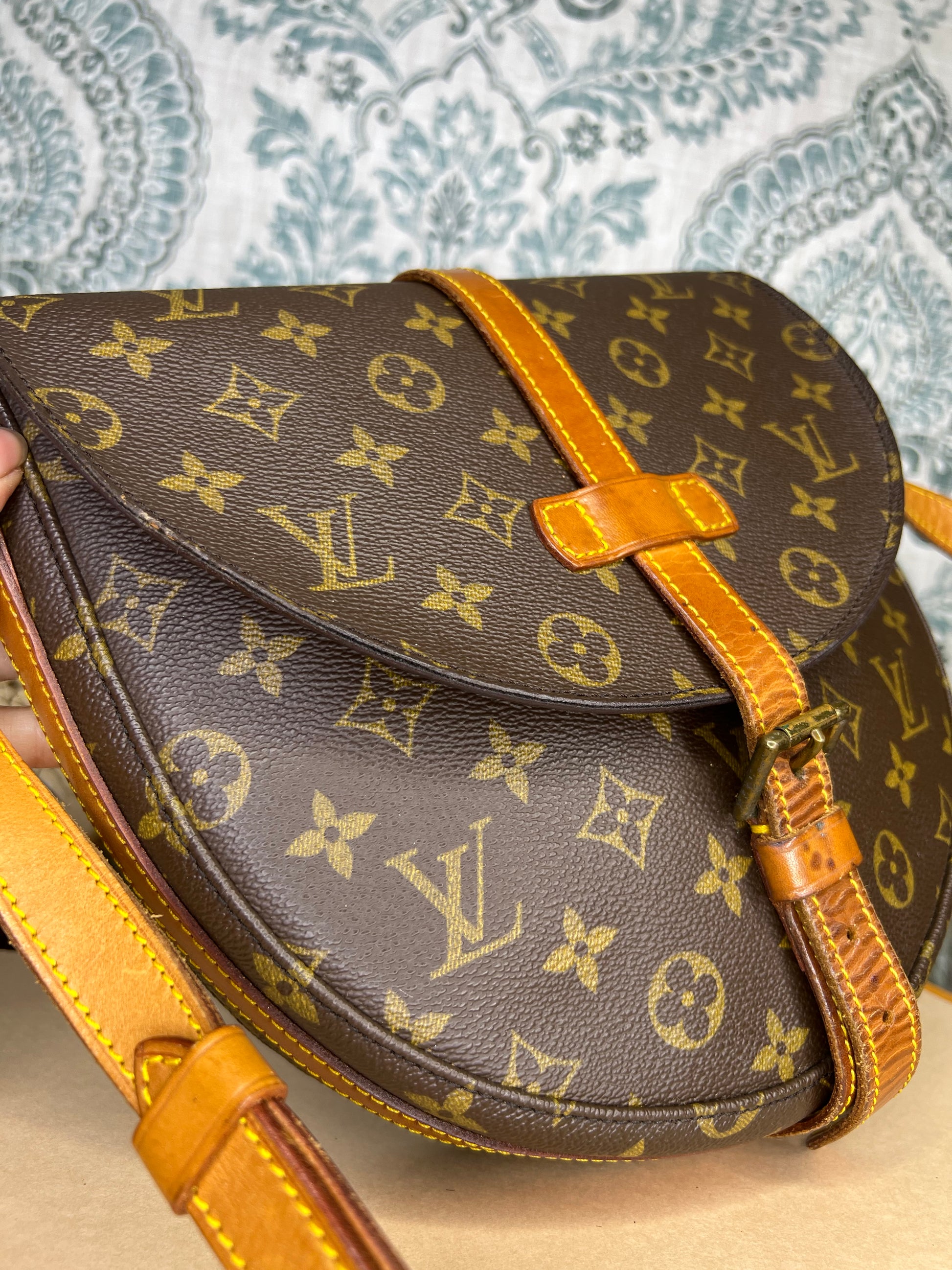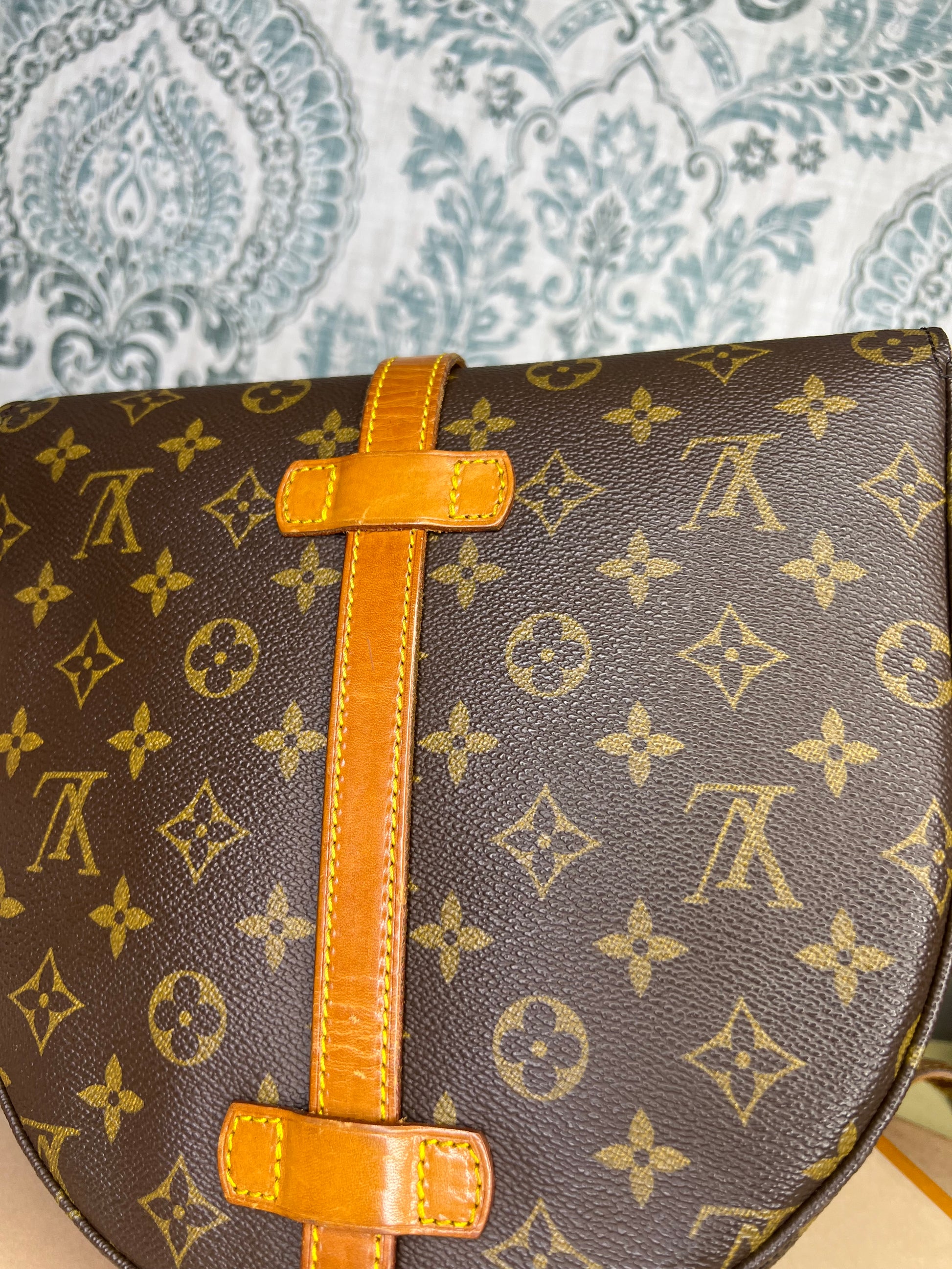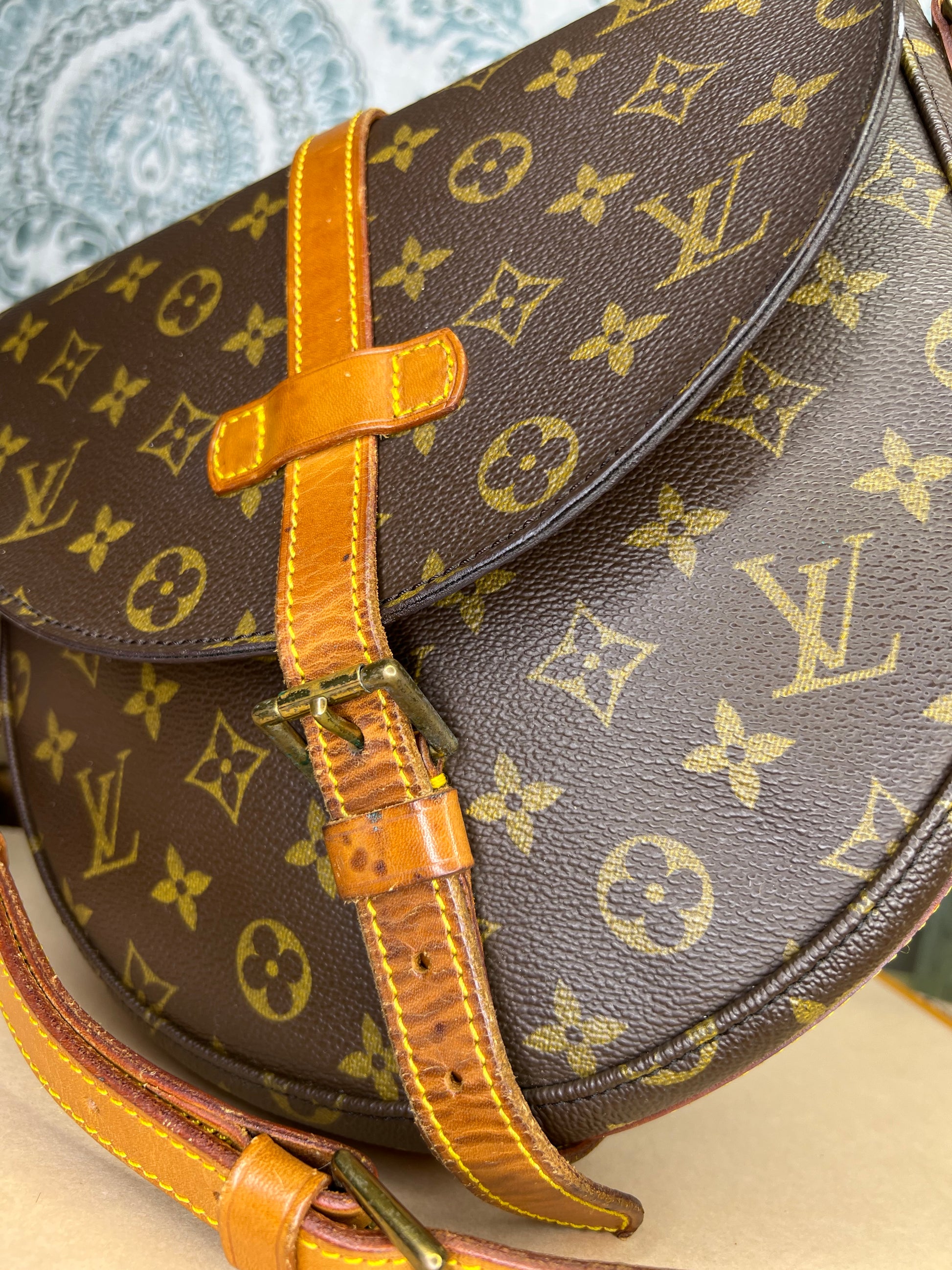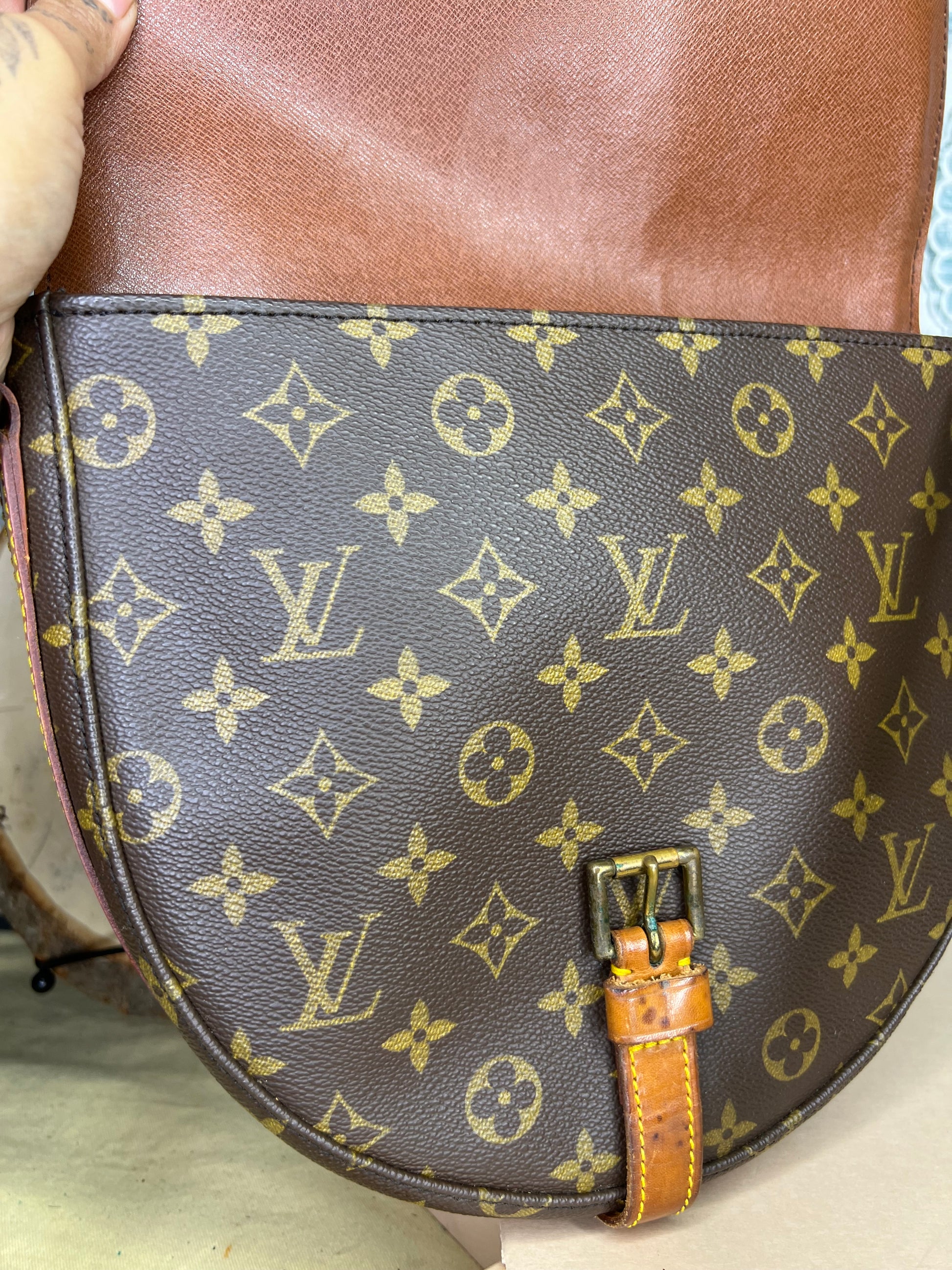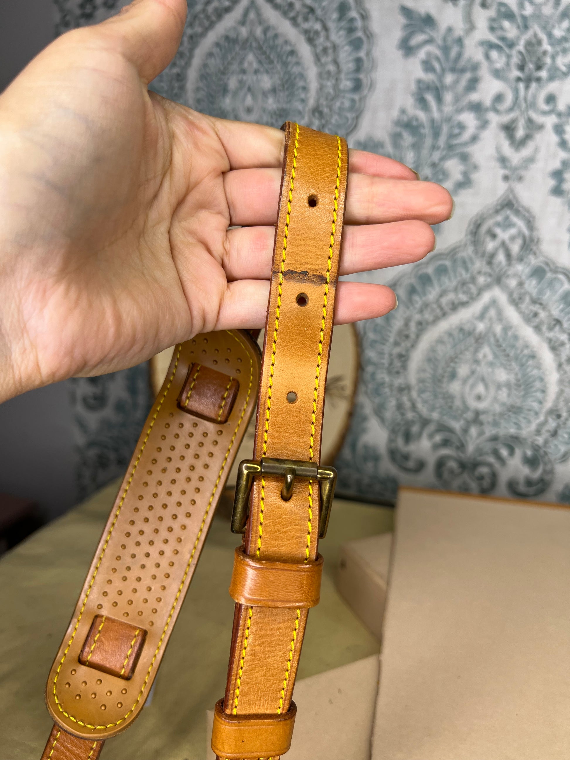 šø Strap and buckle piece have scuffs and wrinkles. No deep cracks present and leather is sturdy. Strap and chaps are strong. Darkening/staining present on buckle piece. Some staining present on shoulder strap. Overall, leather is in strong condition