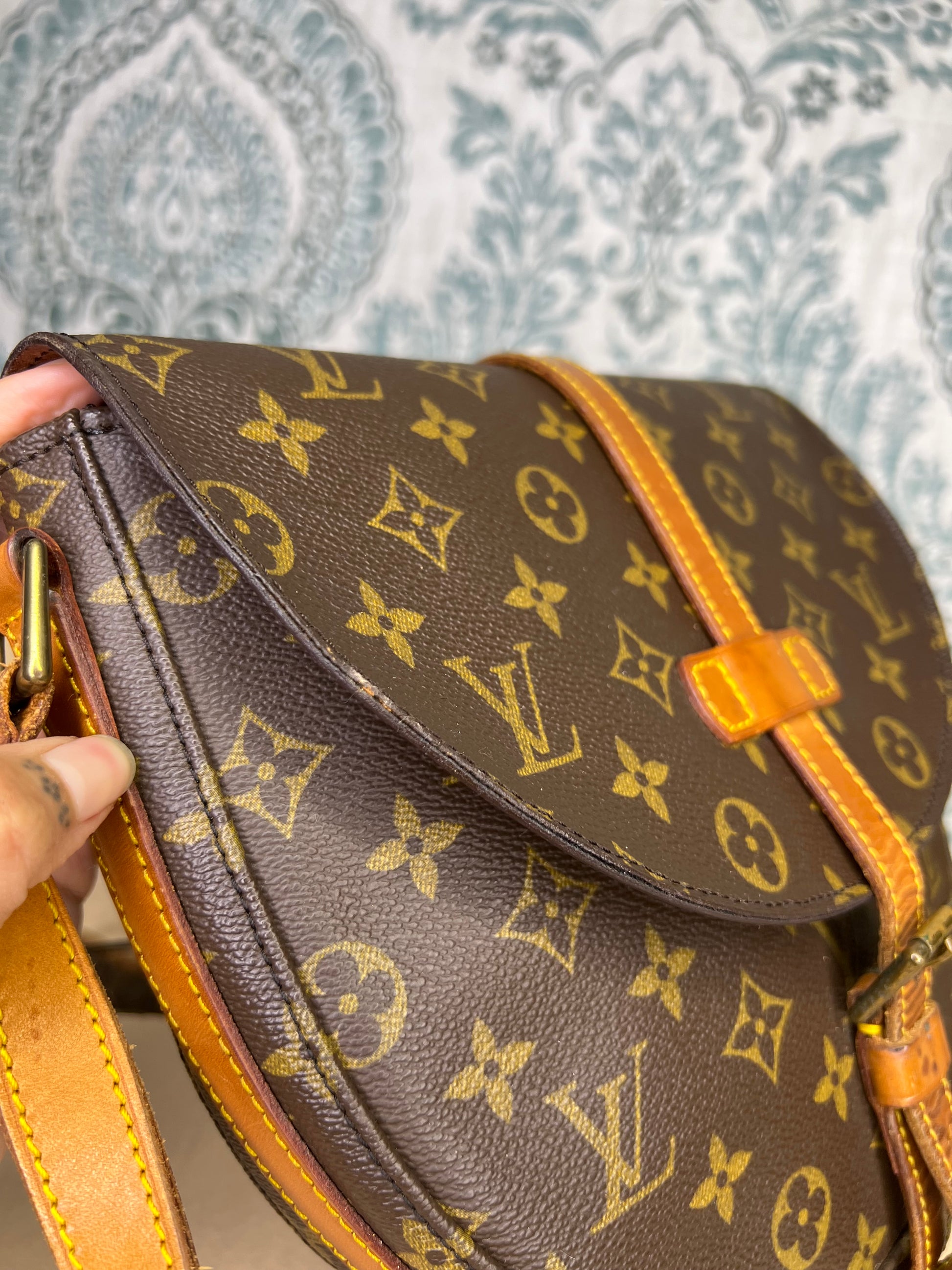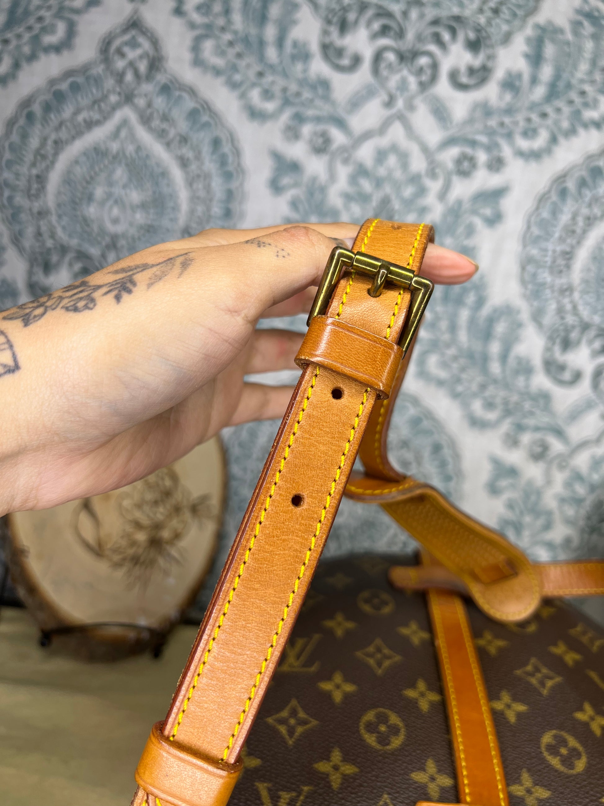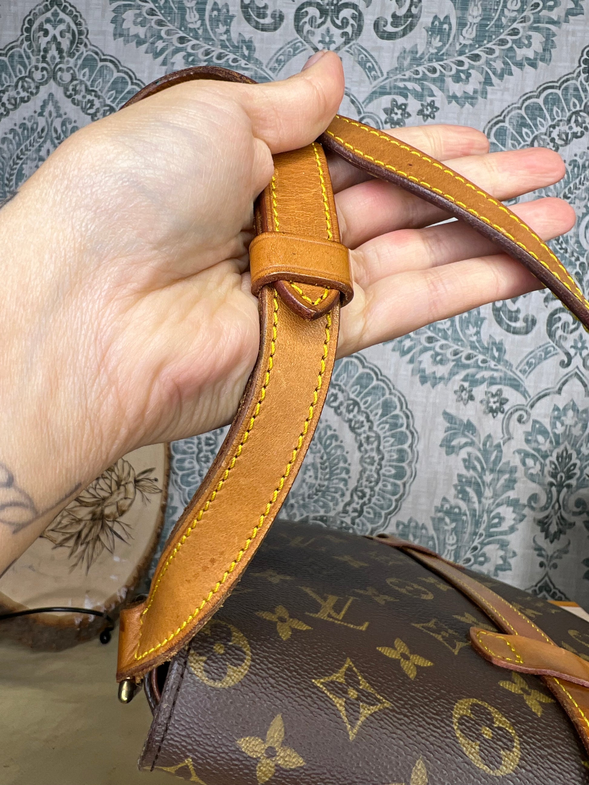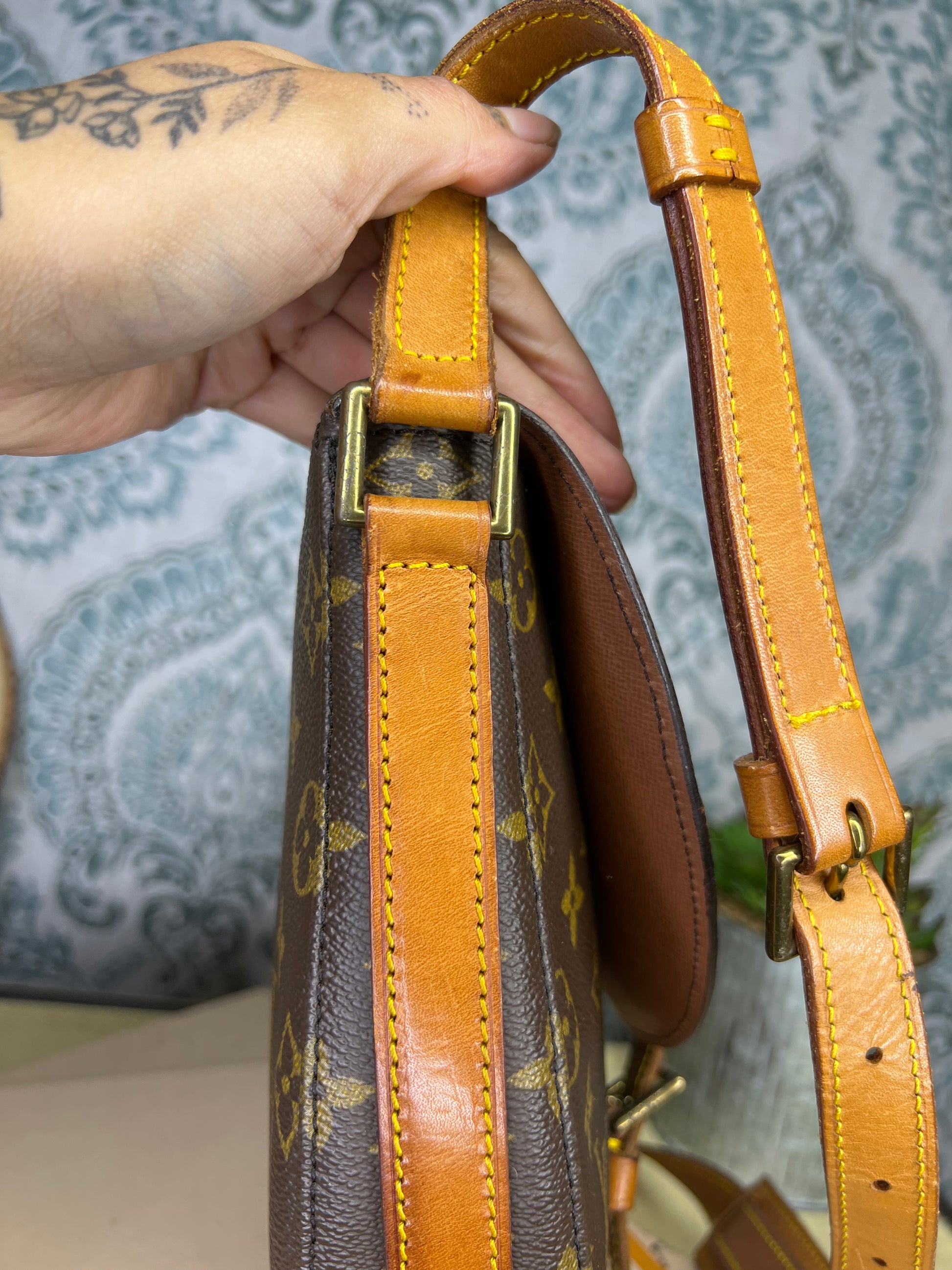 šø Strap and buckle piece have scuffs and wrinkles. No deep cracks present and leather is sturdy. Strap and chaps are strong. Darkening/staining present on buckle piece. Some staining present on shoulder strap. Overall, leather is in strong condition