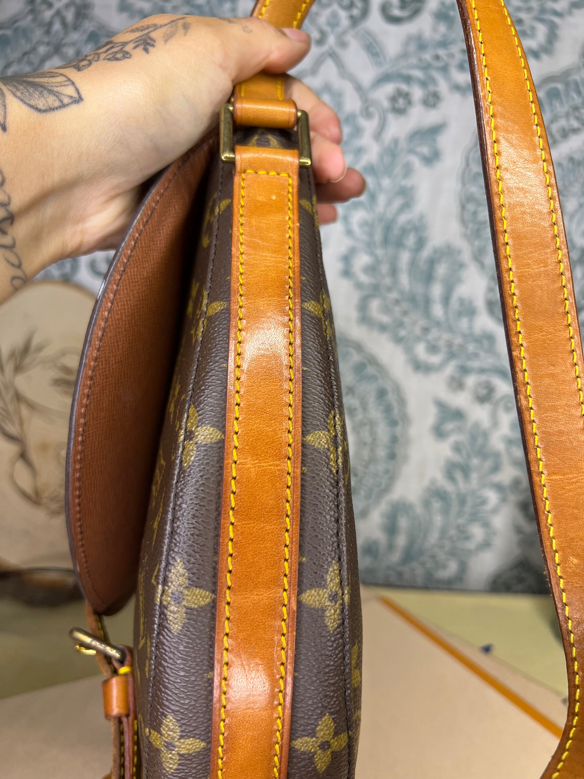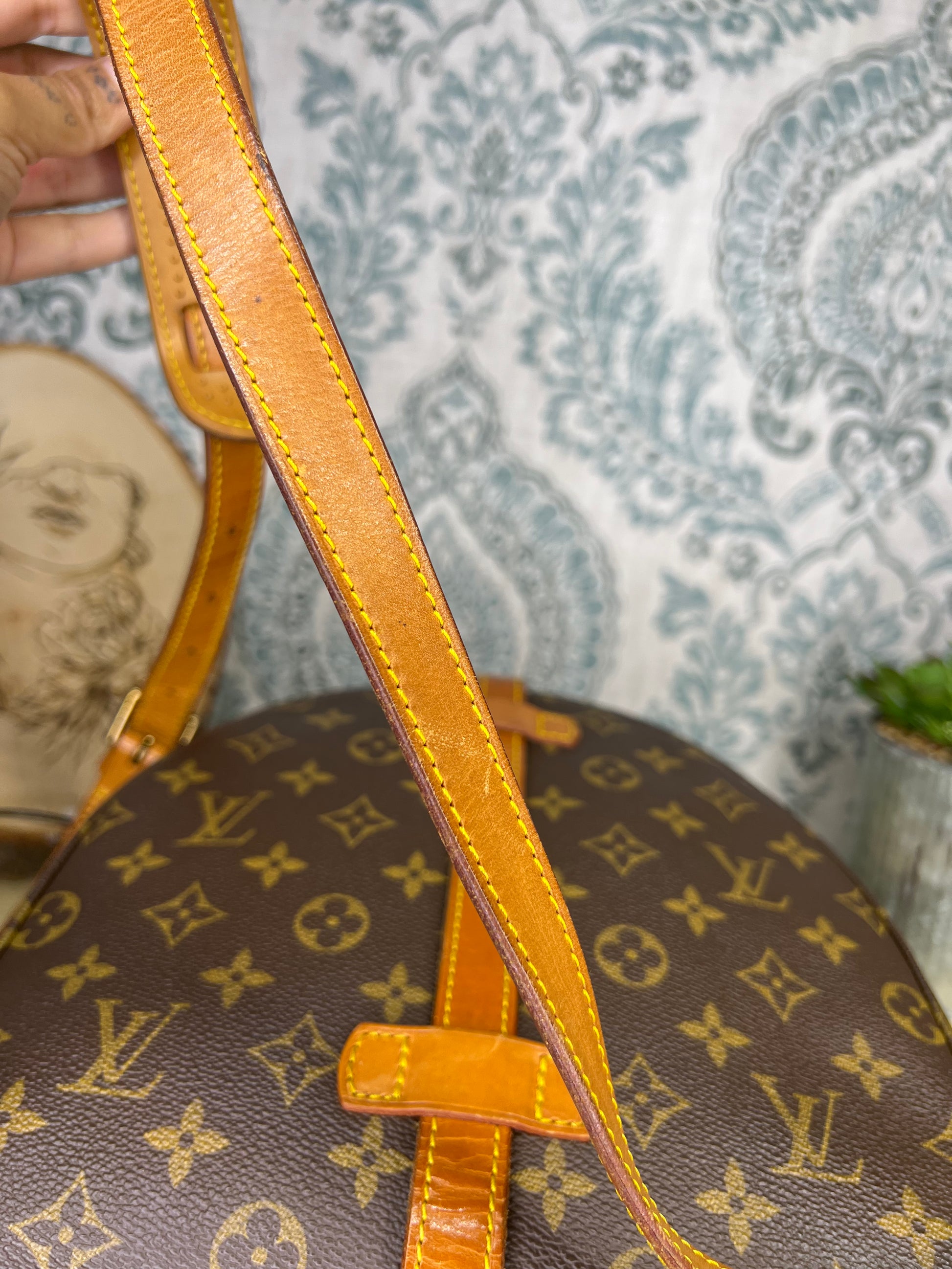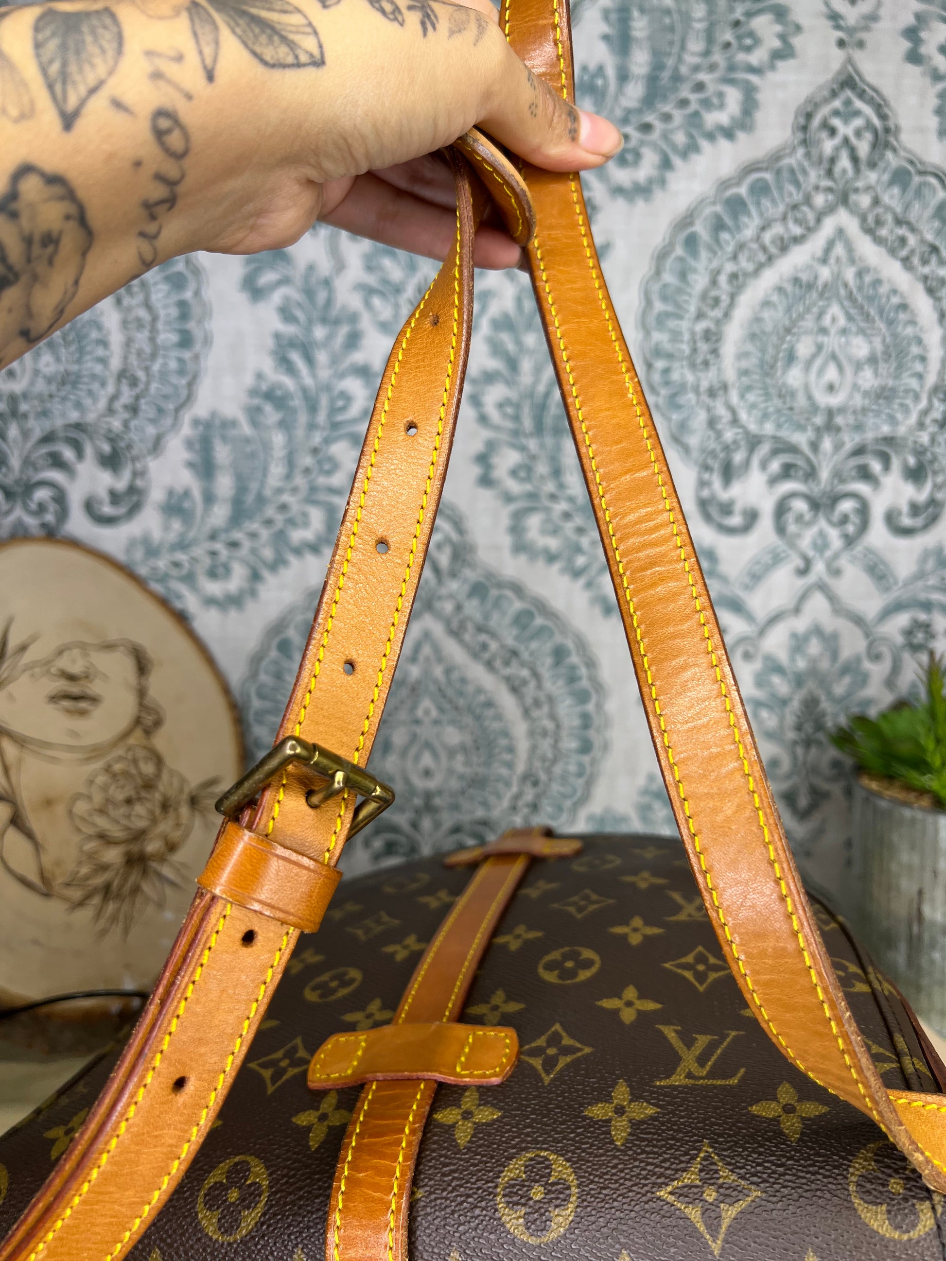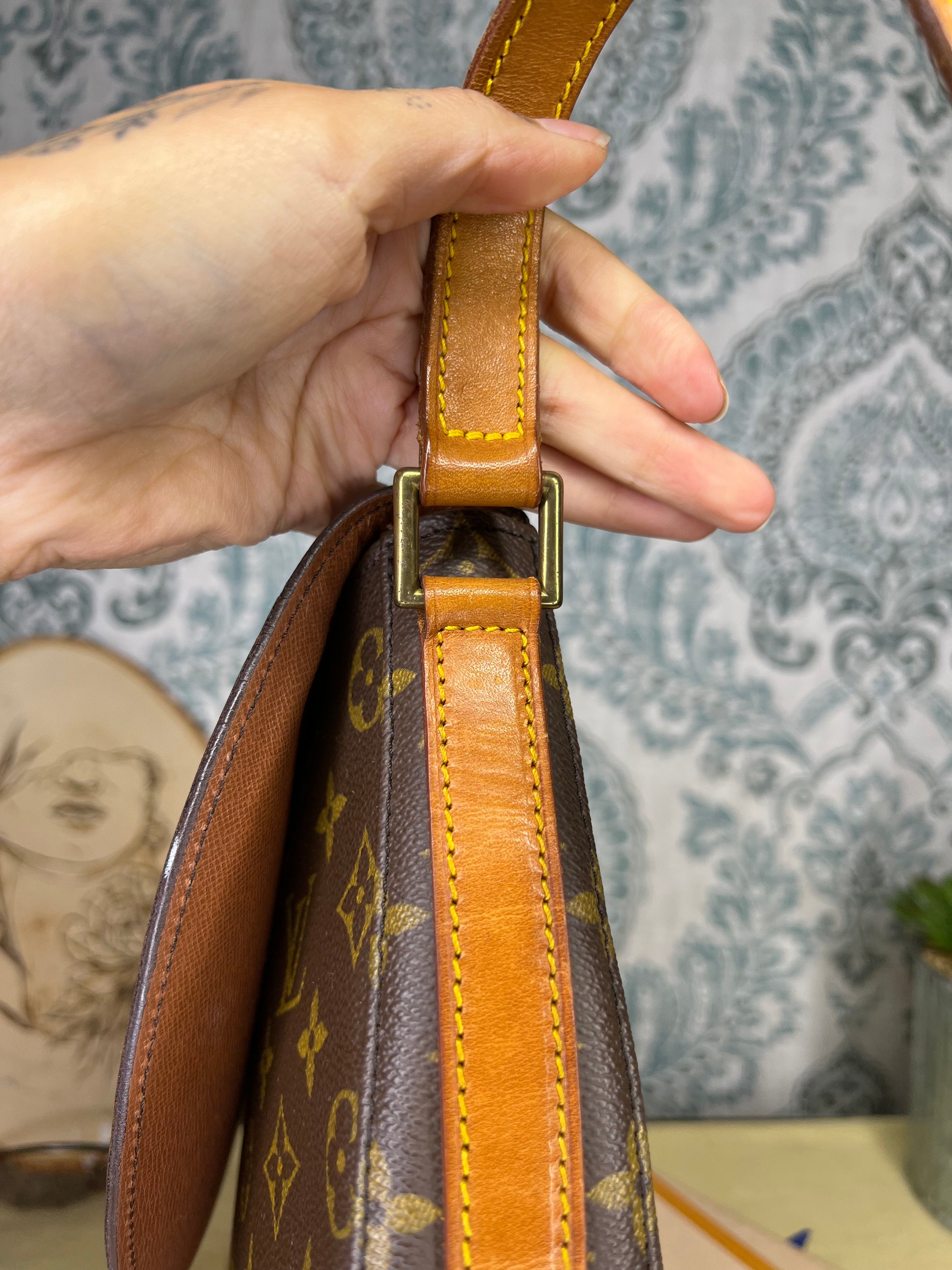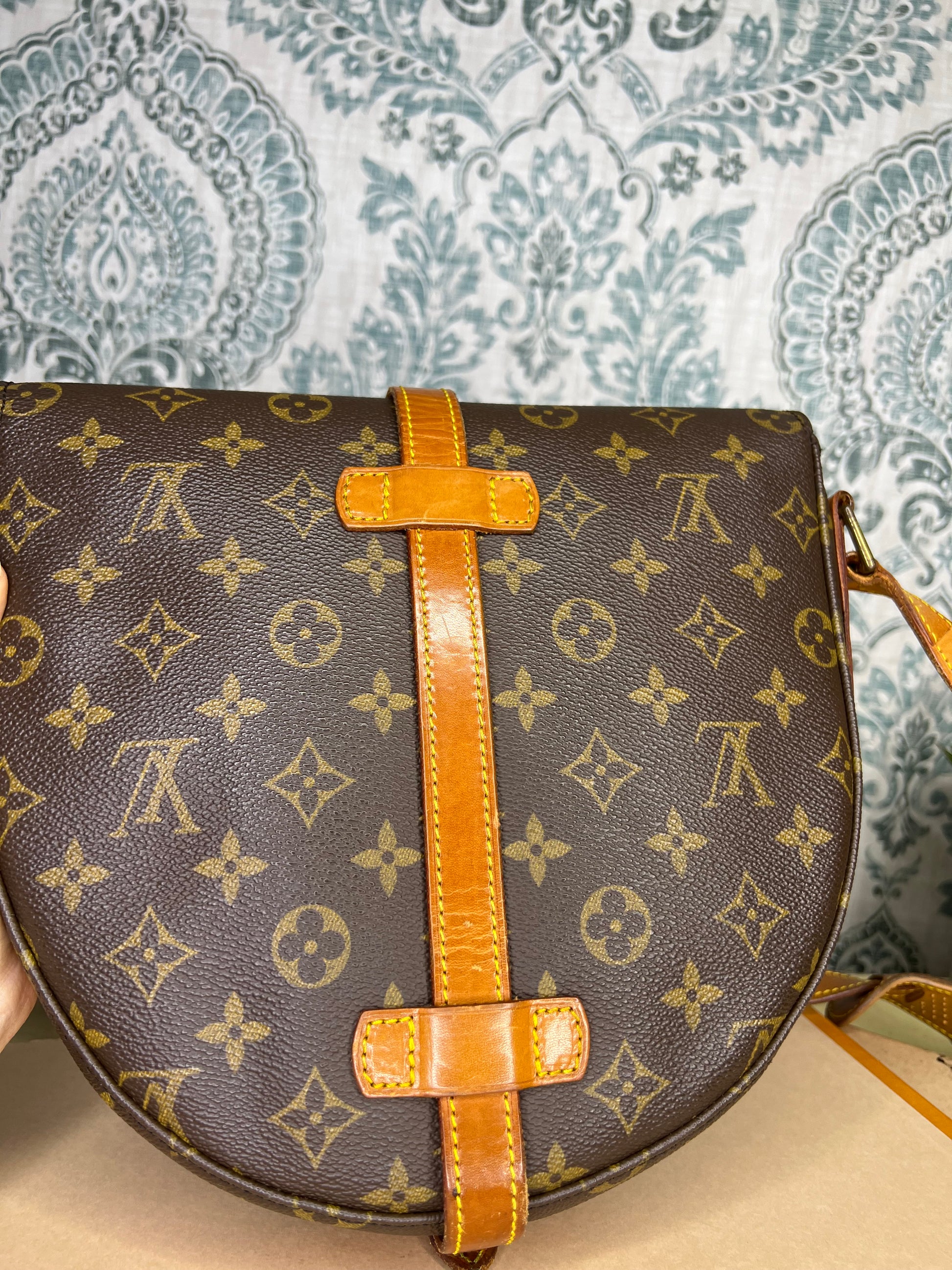 šø Strap and buckle piece have scuffs and wrinkles. No deep cracks present and leather is sturdy. Strap and chaps are strong. Darkening/staining present on buckle piece. Some staining present on shoulder strap. Overall, leather is in strong condition