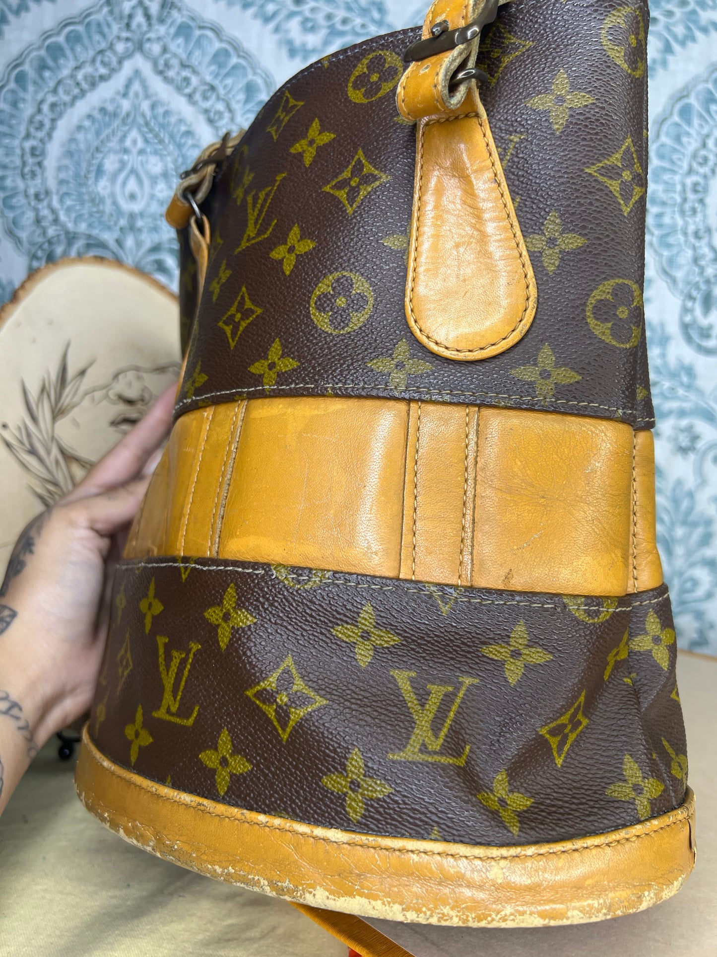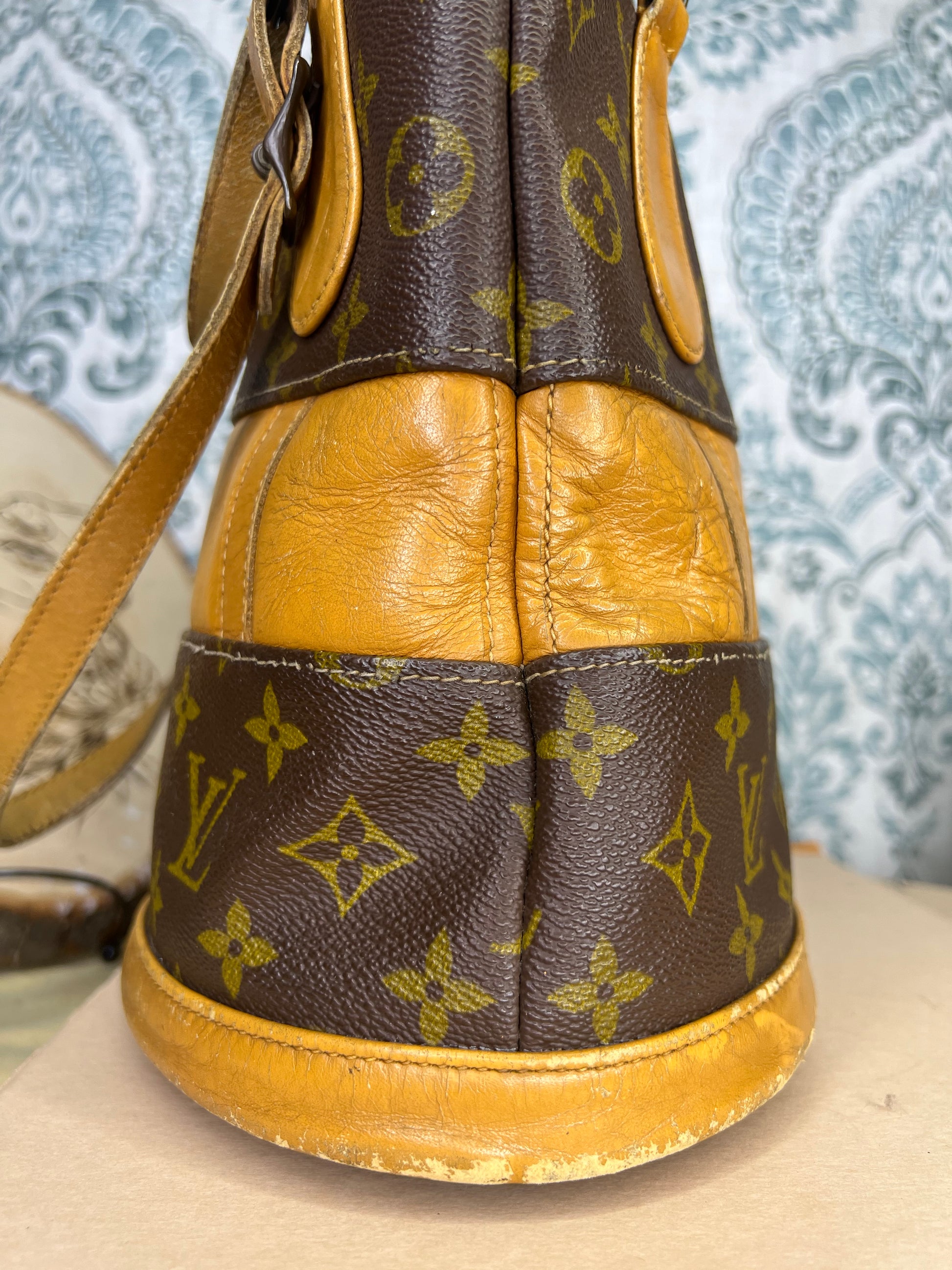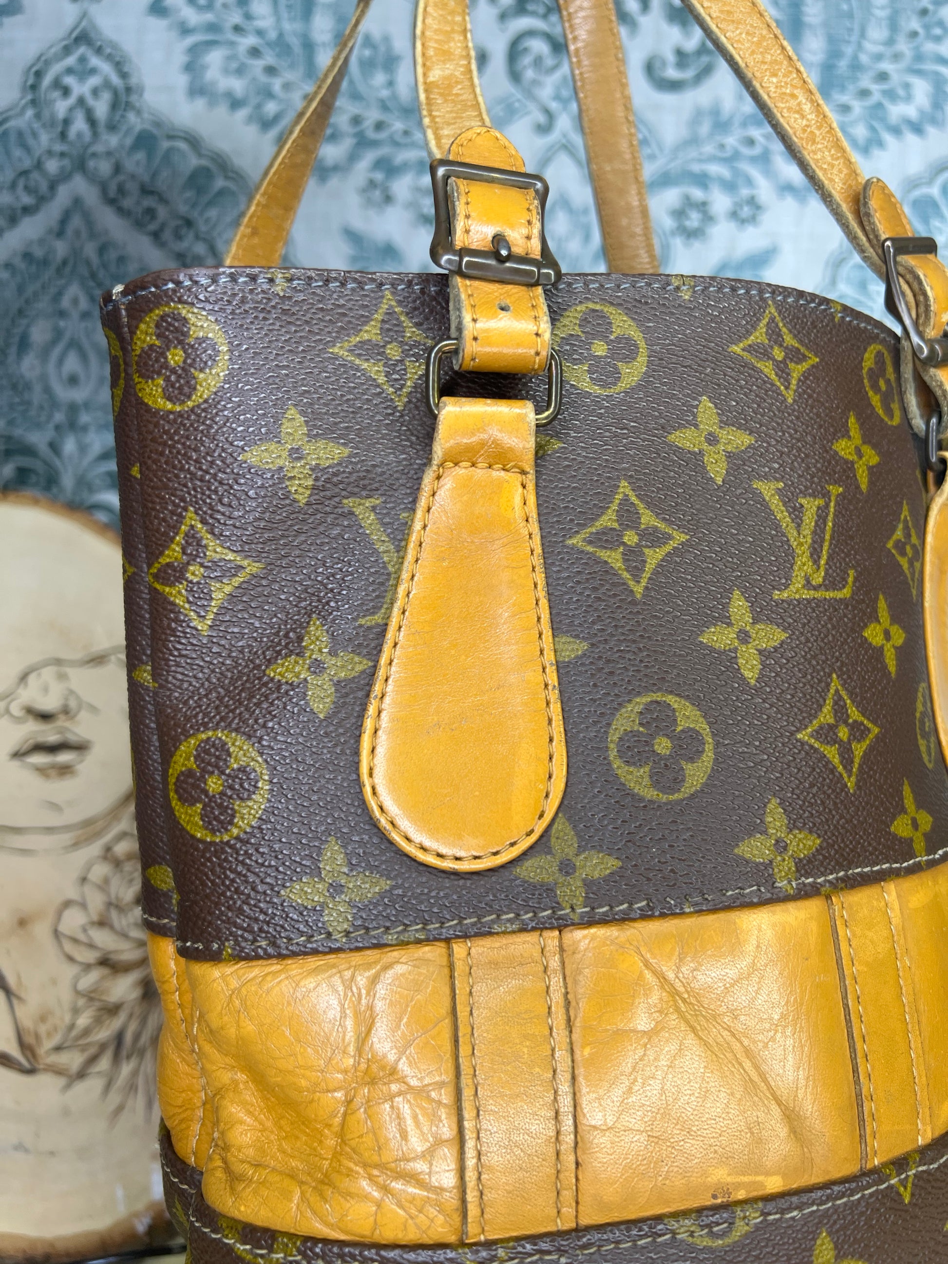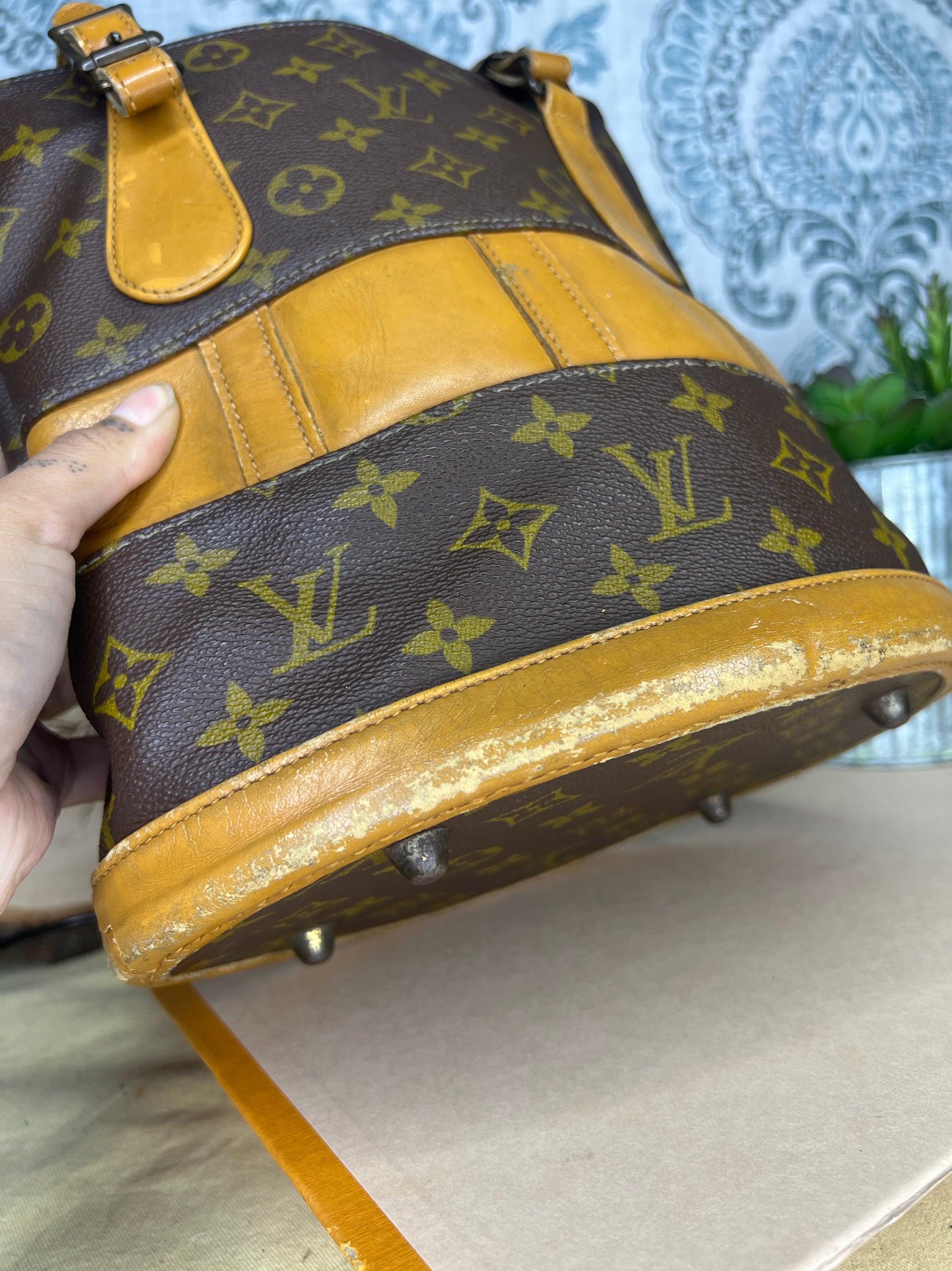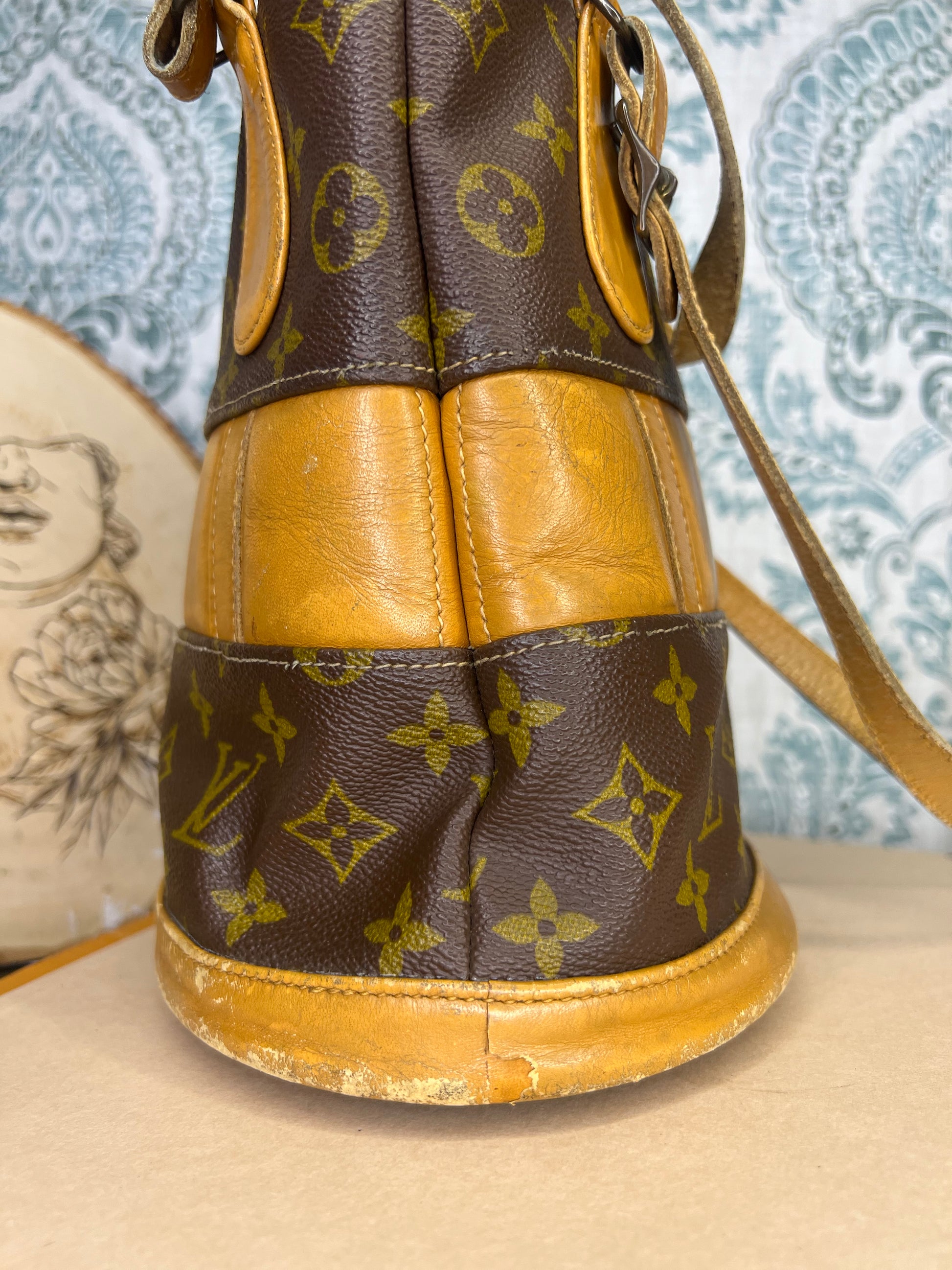 šø Handles have scuffs and surface cracking, but are sturdy overall. Chaps are strong. Dryness and scuffs present on leather. Base of the bag has scuffs and rubs. Some black staining on leather