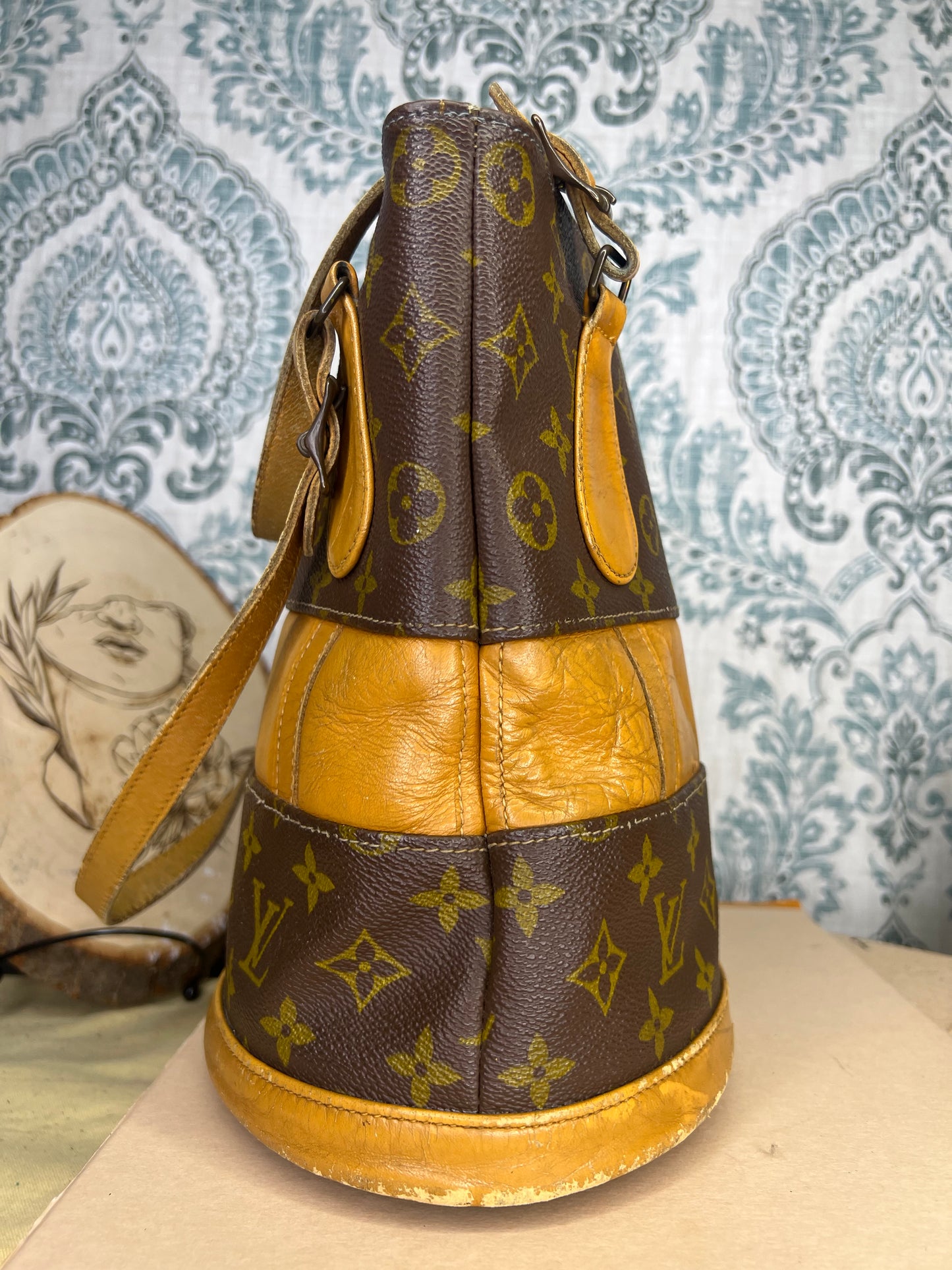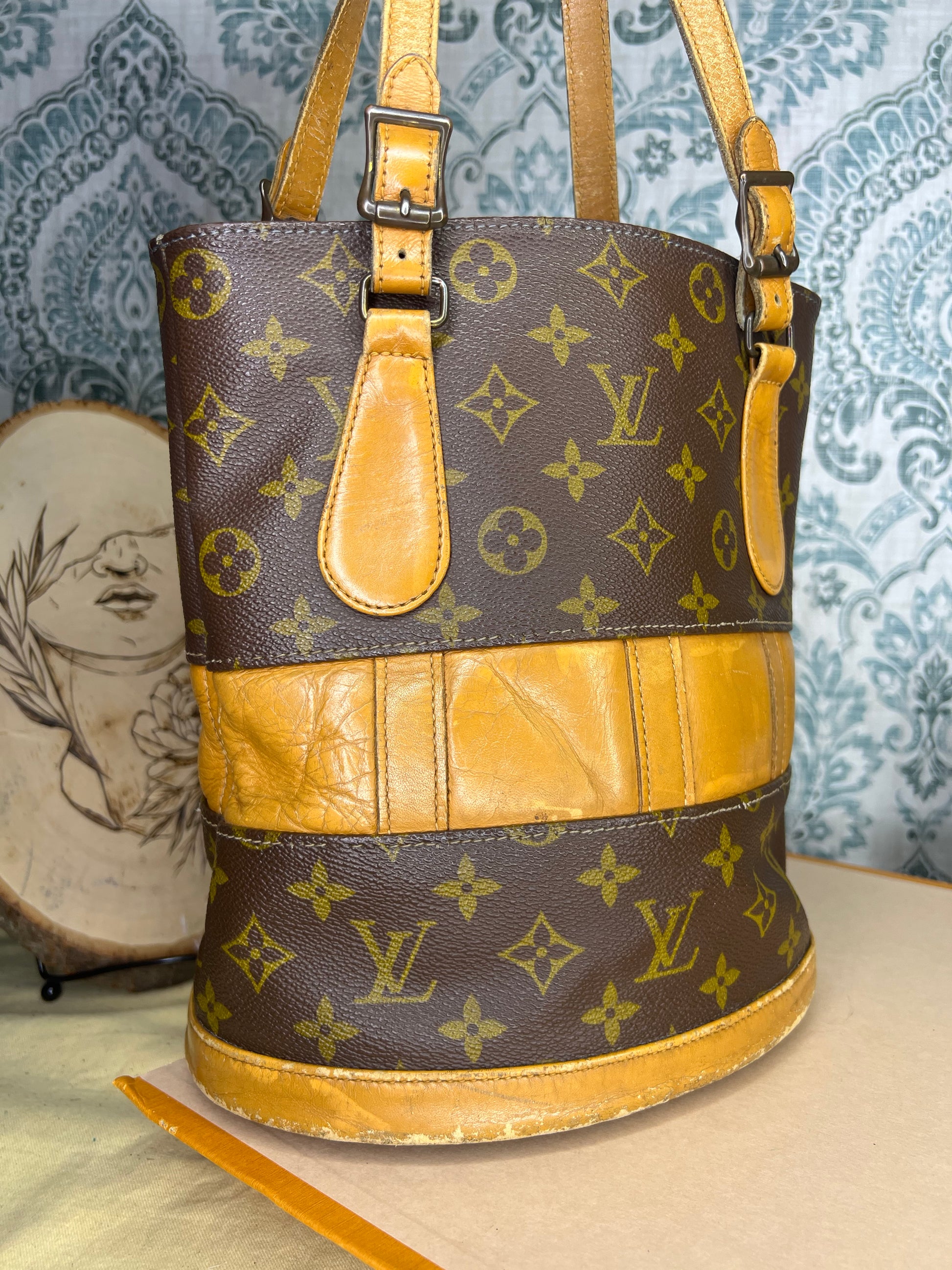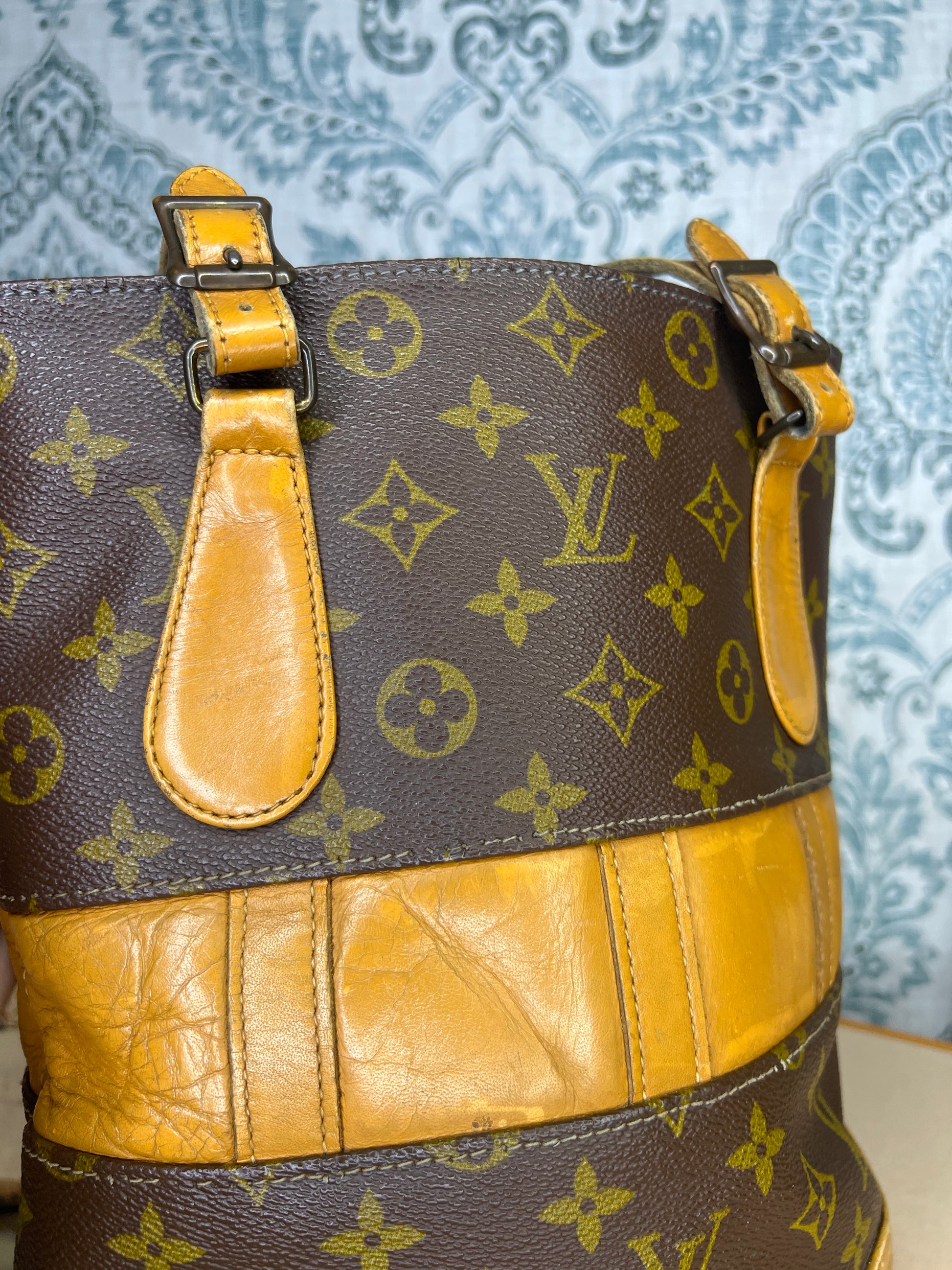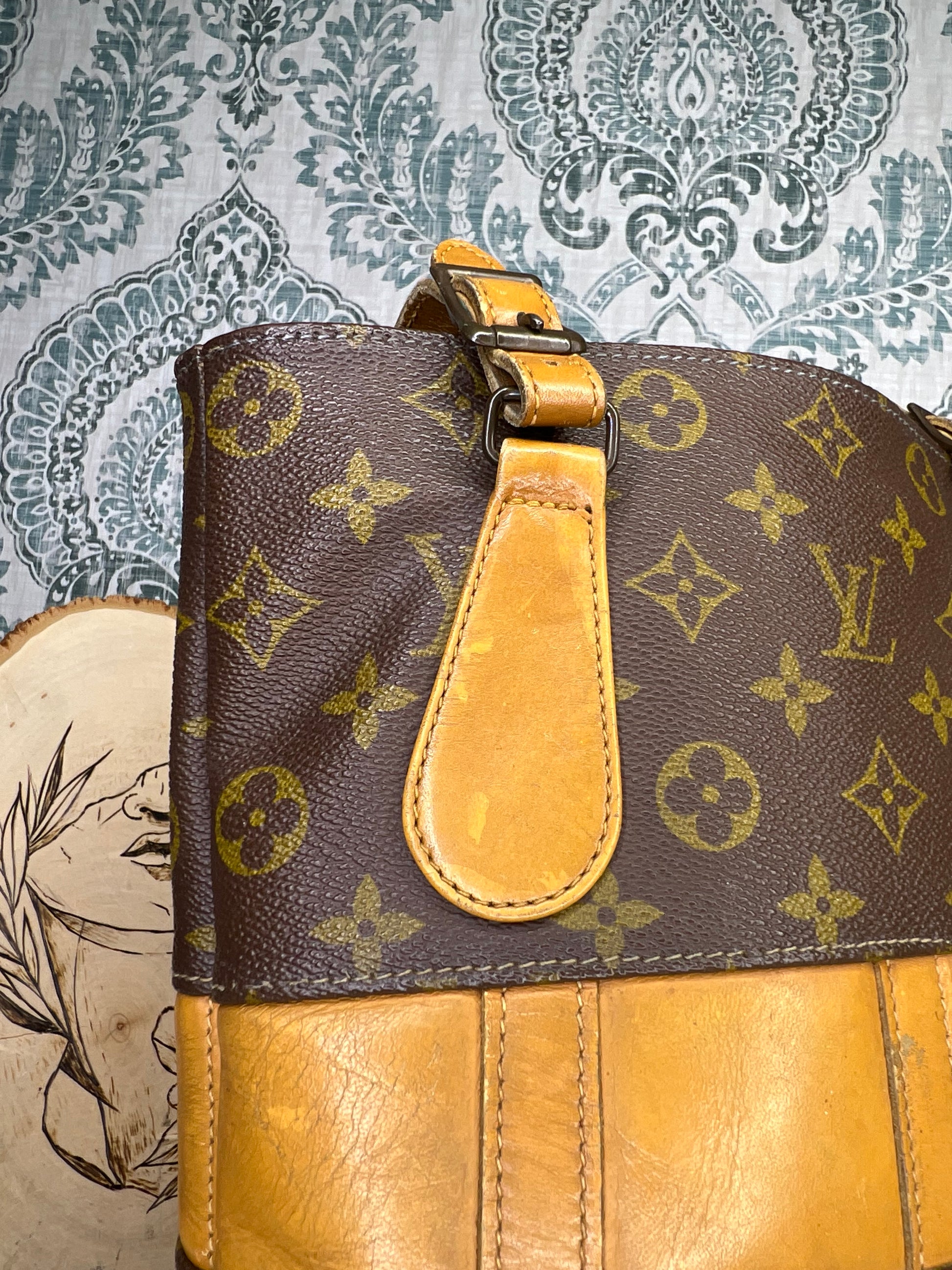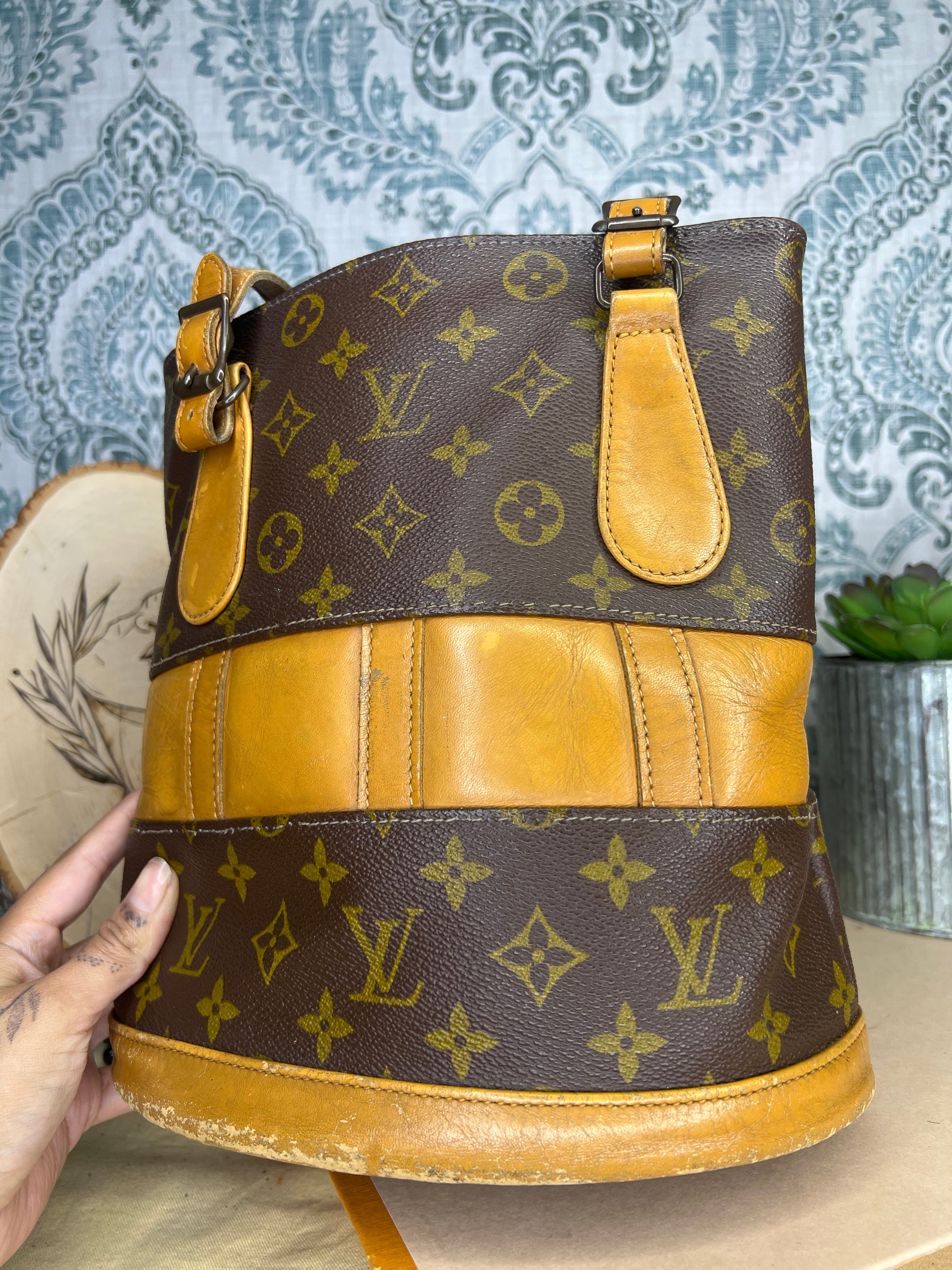 šø Handles have scuffs and surface cracking, but are sturdy overall. Chaps are strong. Dryness and scuffs present on leather. Base of the bag has scuffs and rubs. Some black staining on leather