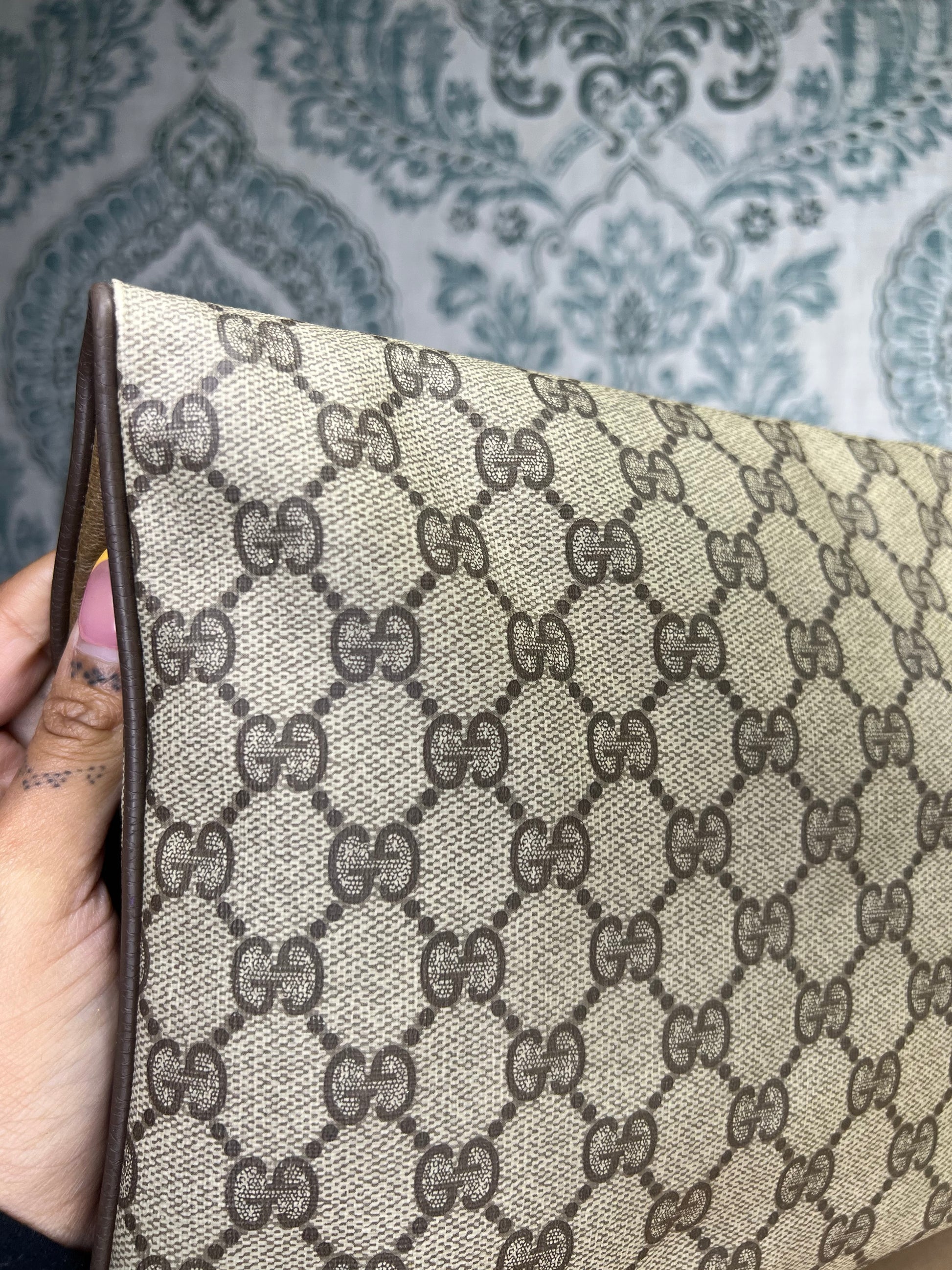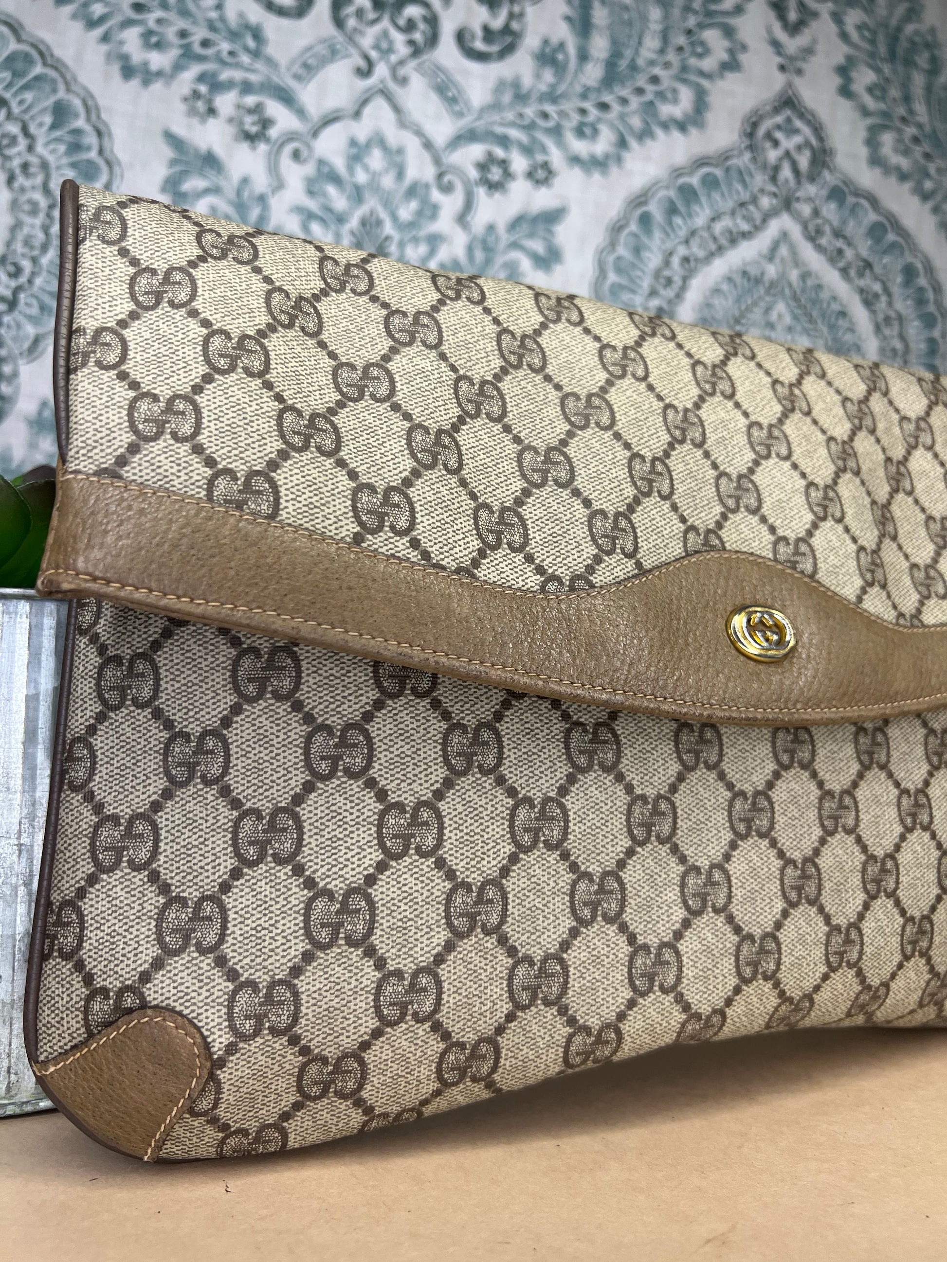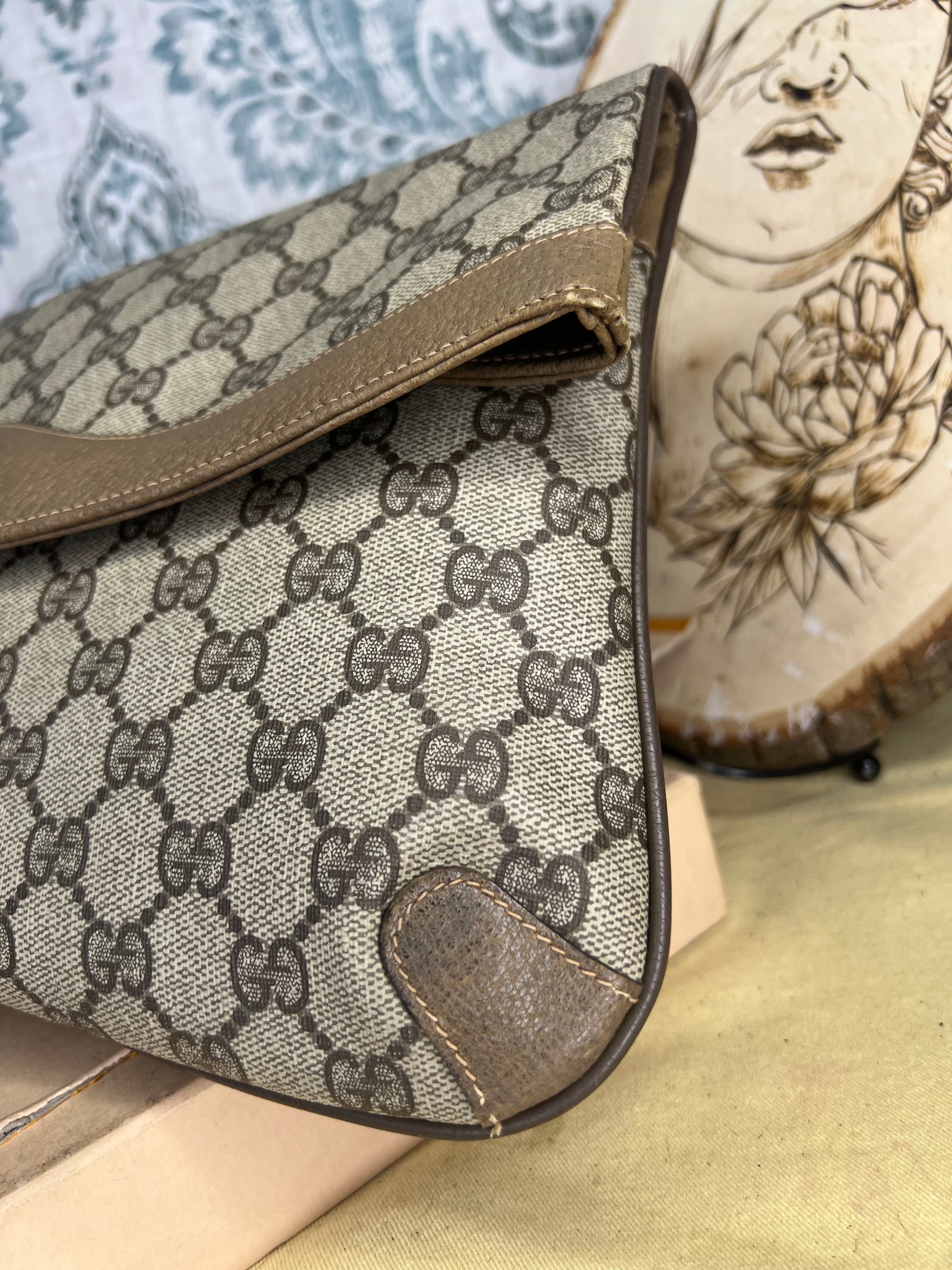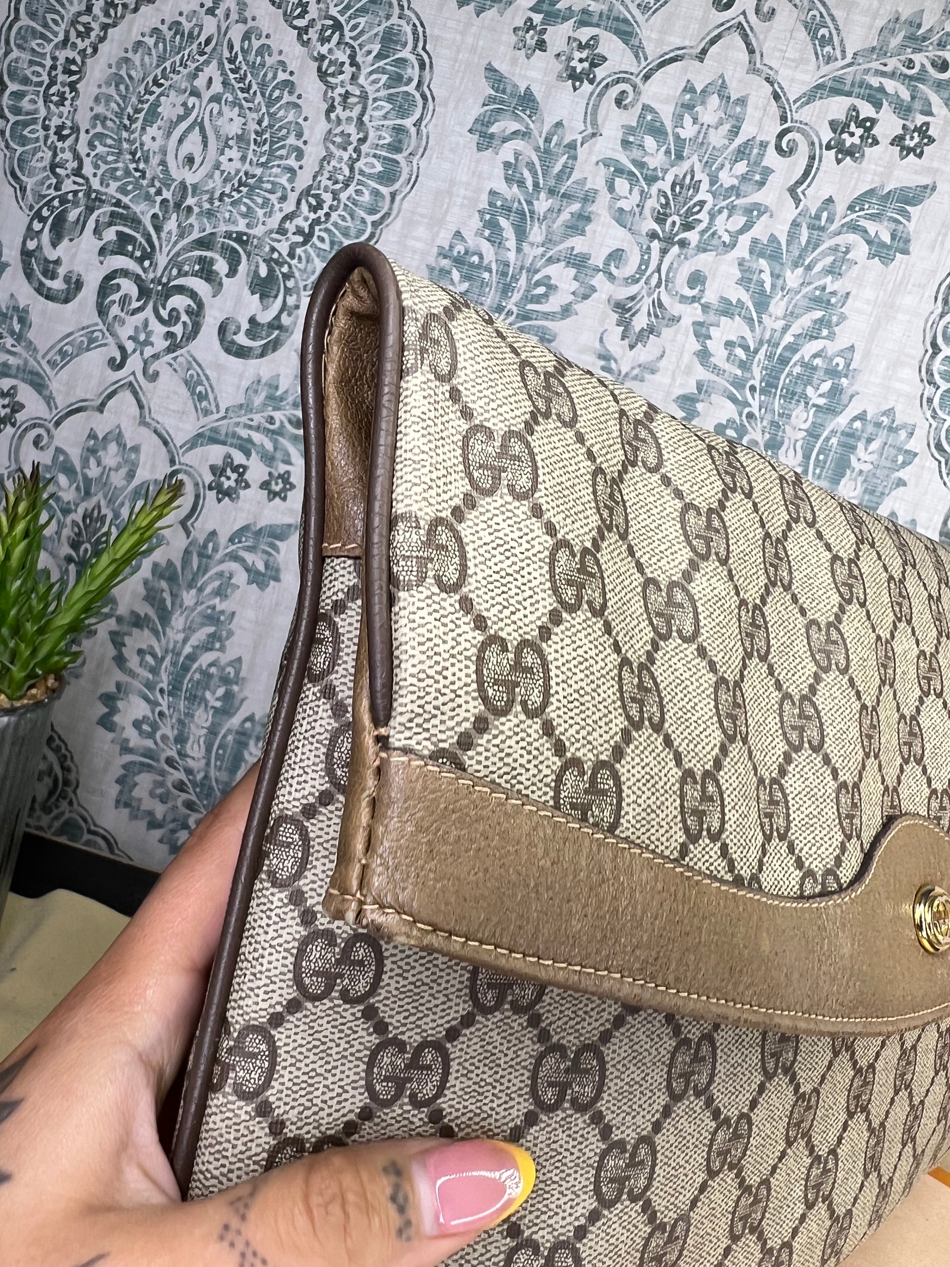 πΈ Piping has a small amount of cracking on the interior part where the clutch folds. Leather has a few rubs and scuffs, but no serious issues. There are water stains on the interior part of the leather