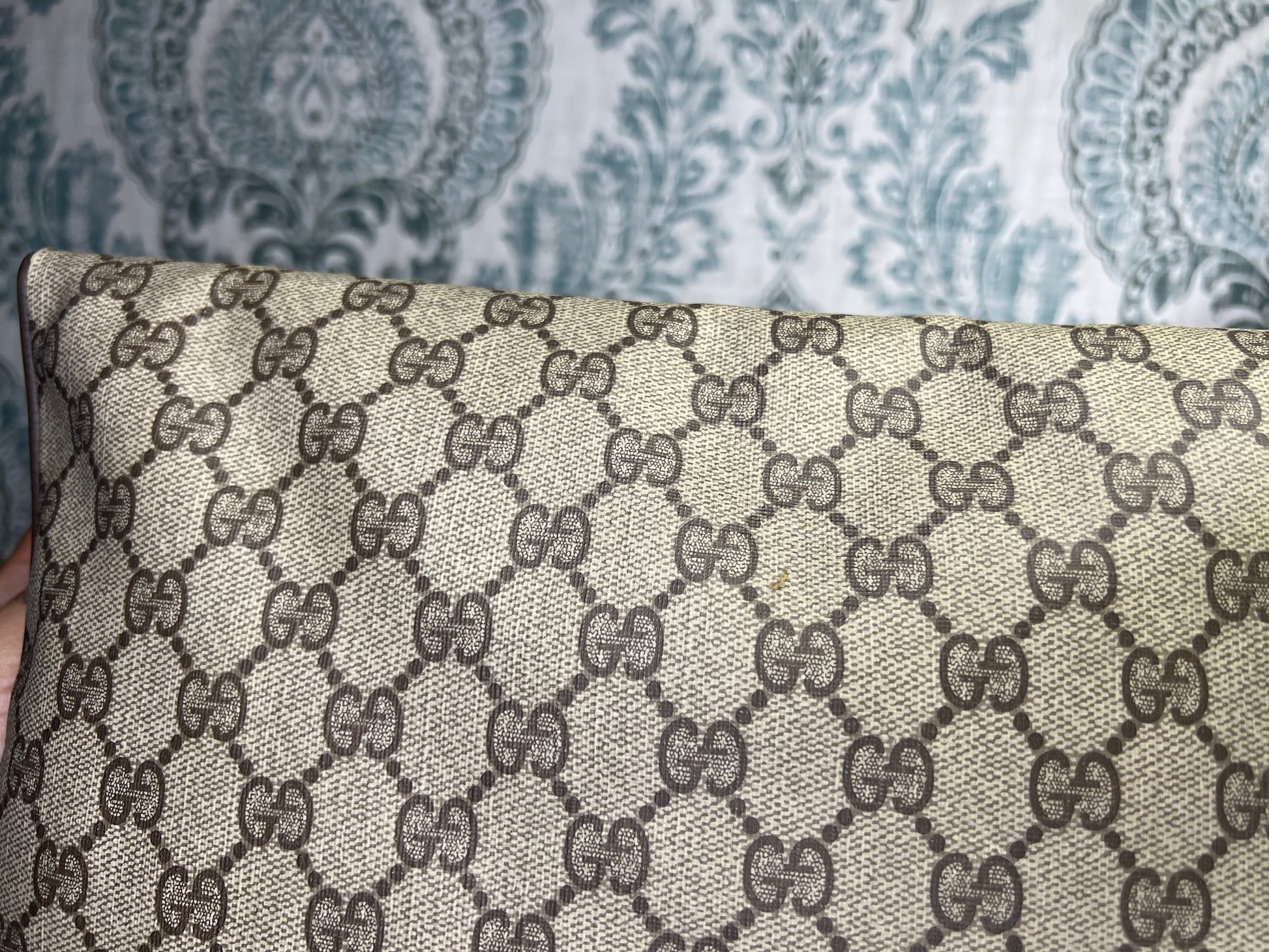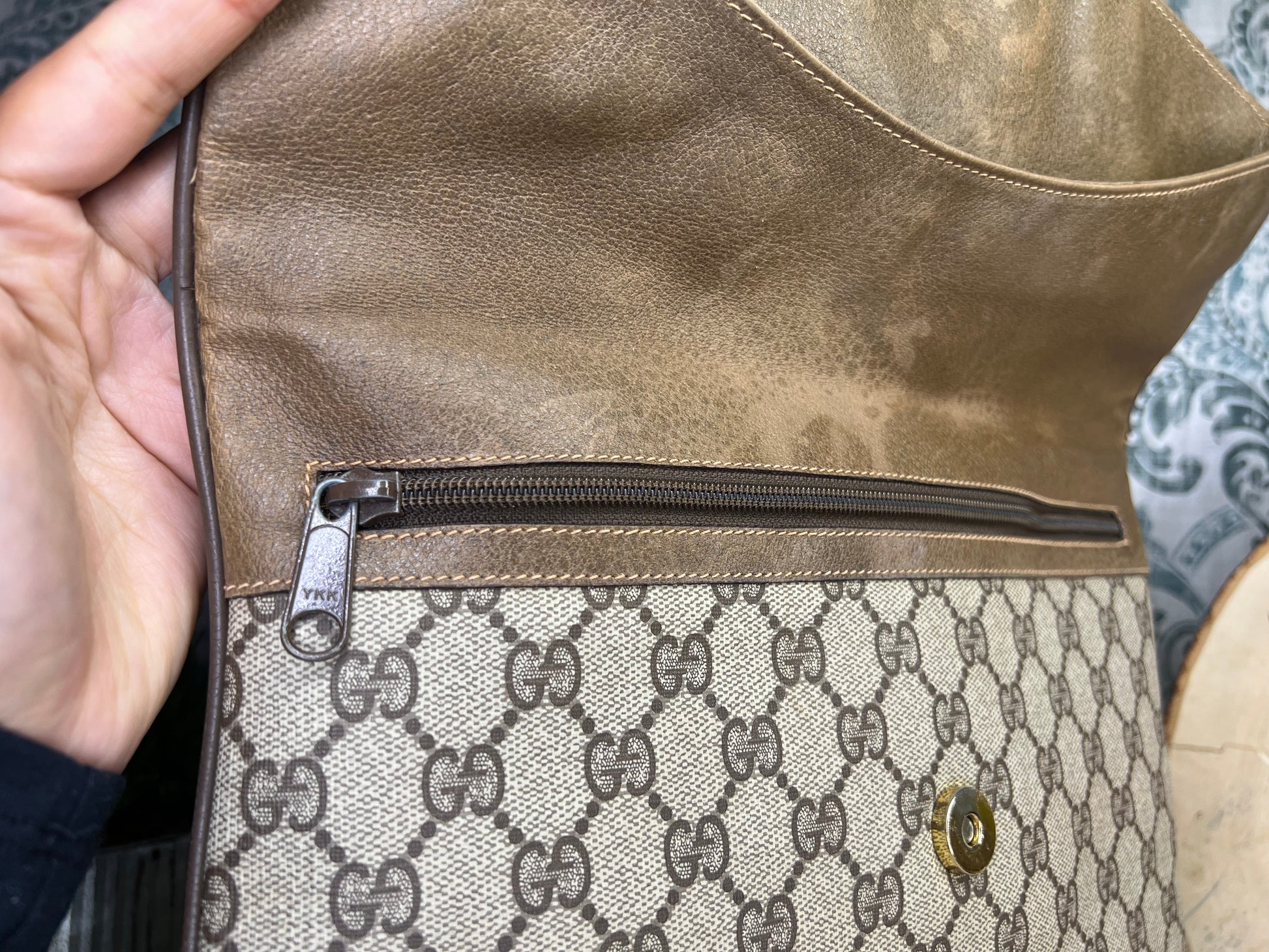 πΈ Coated canvas has one minor stain on the backside. Canvas has a bit of cracking at the backside of the clutch where it folds, shown in photo with green circles. No major or noticeable stains on canvas