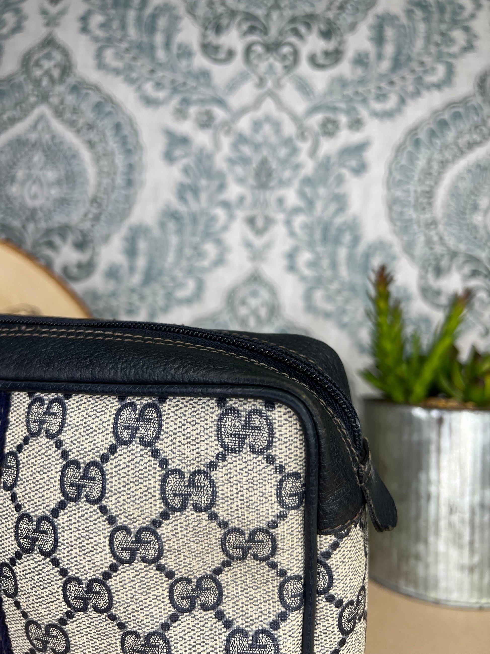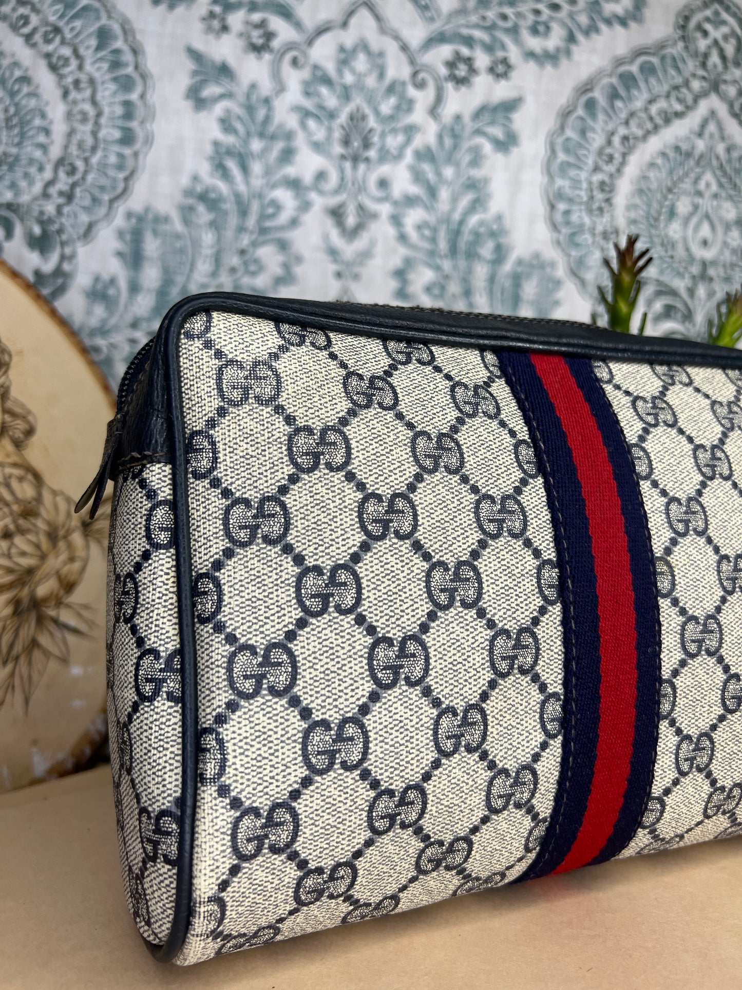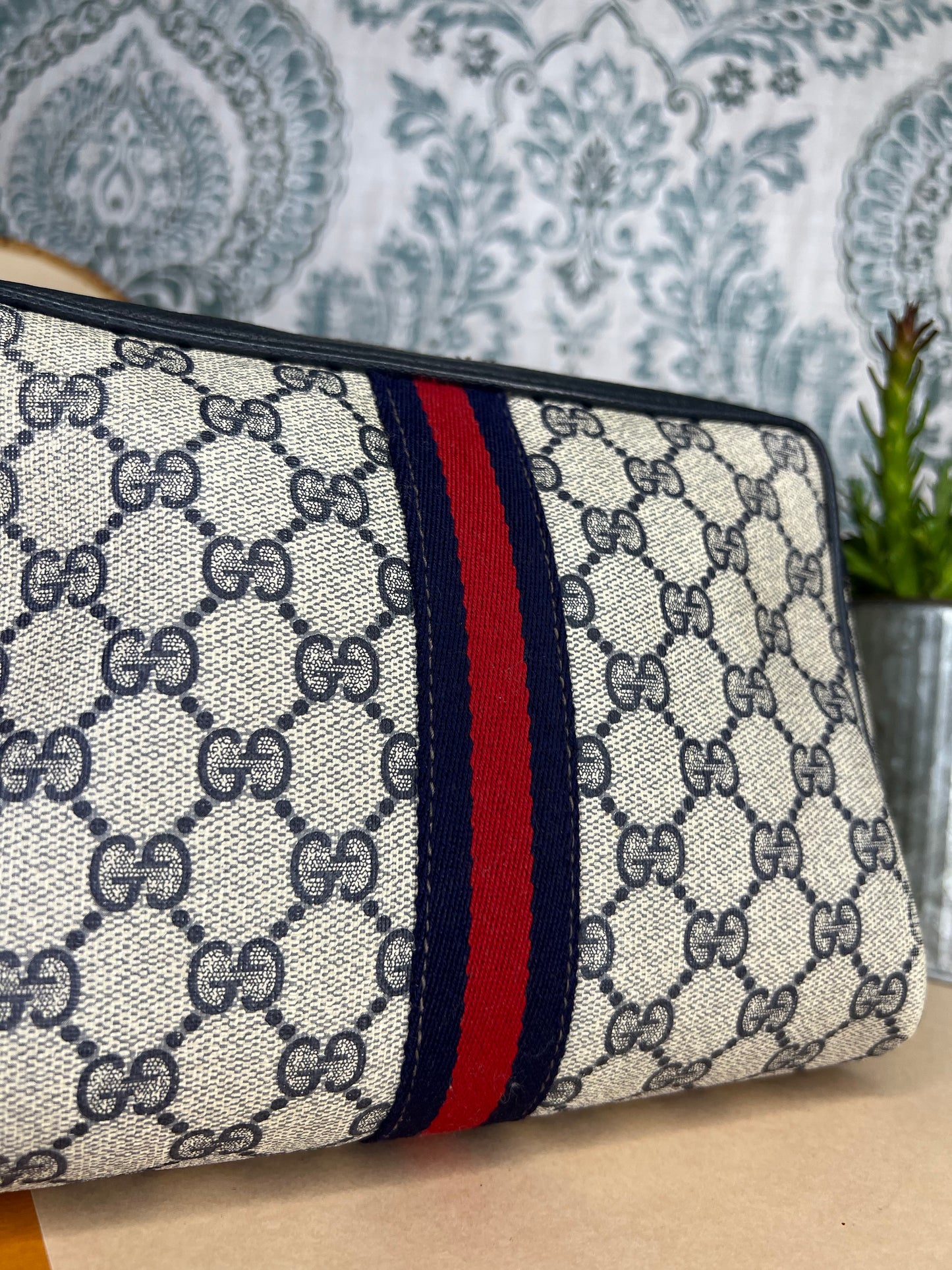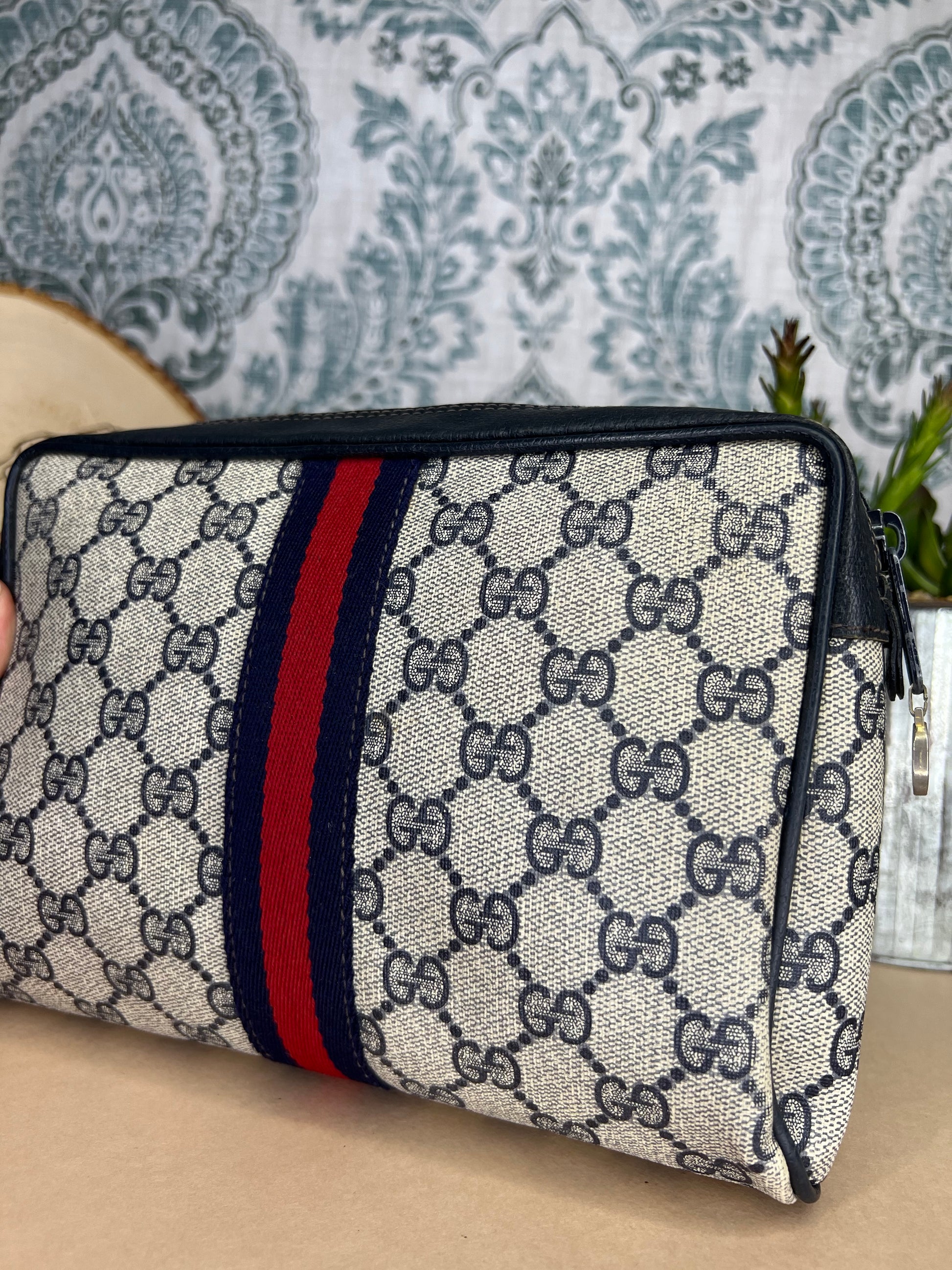 Gucci Navy Sherry Line Clutch / Cosmetic Pouch