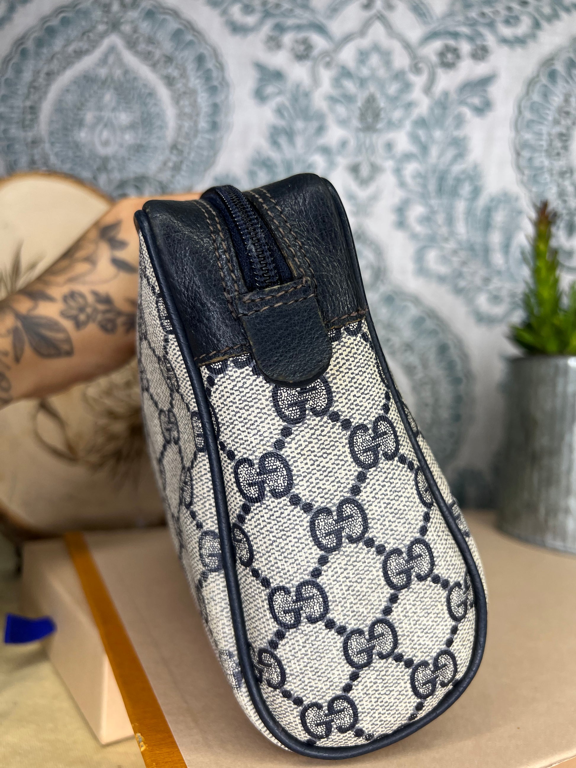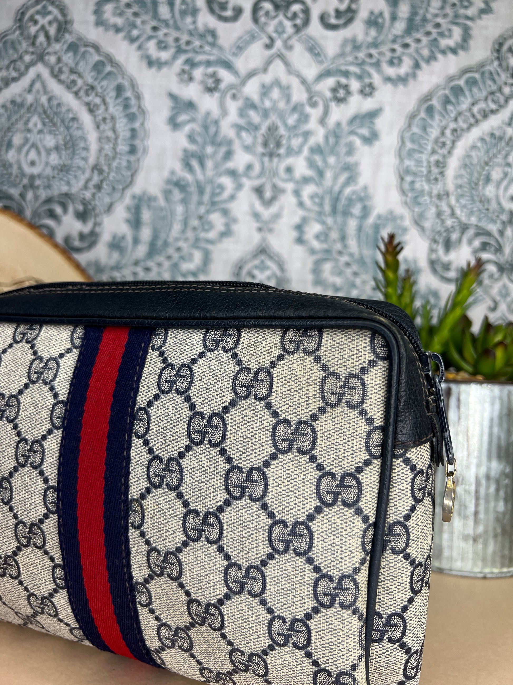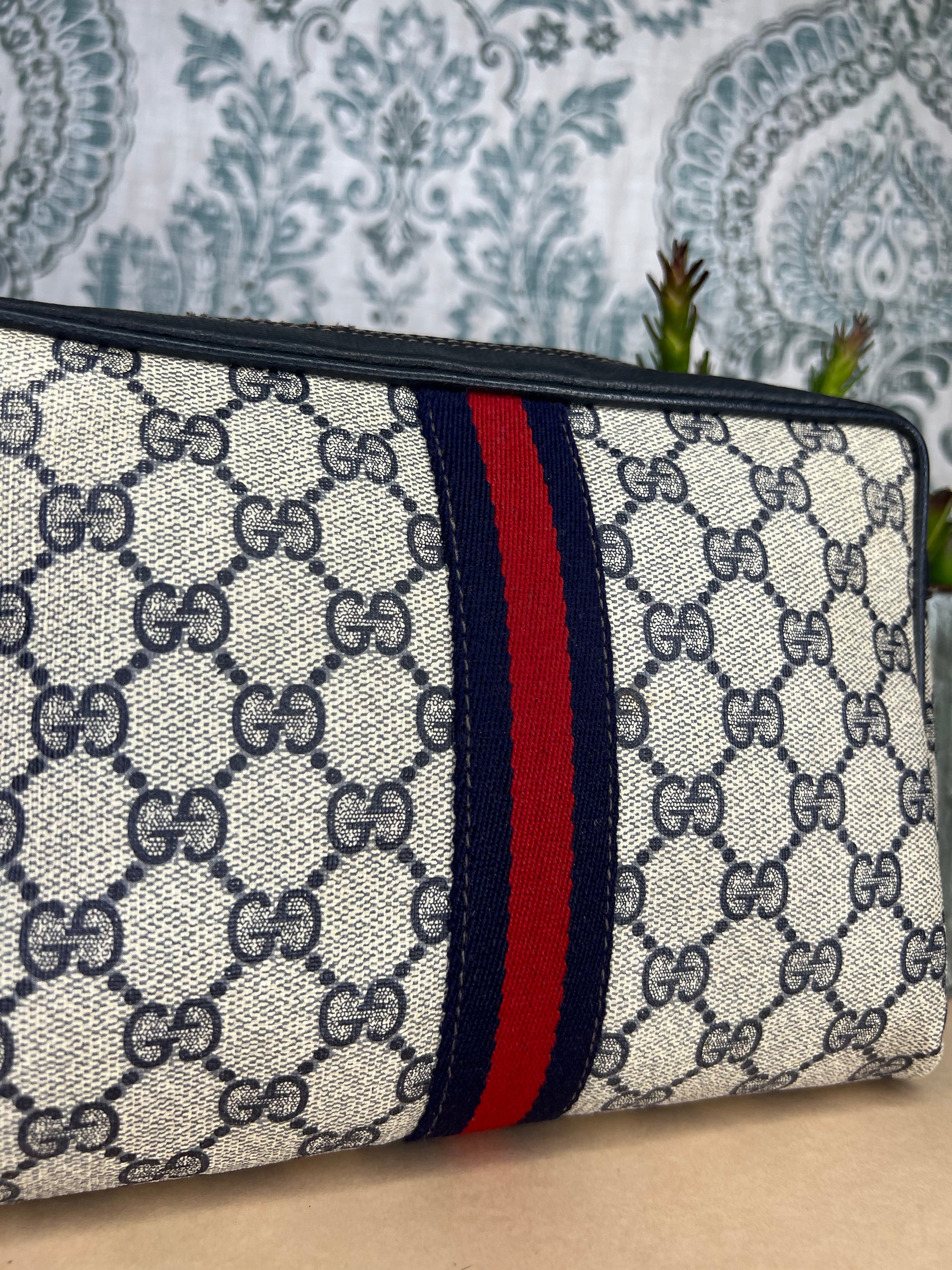 Gucci Navy Sherry Line Clutch / Cosmetic Pouch