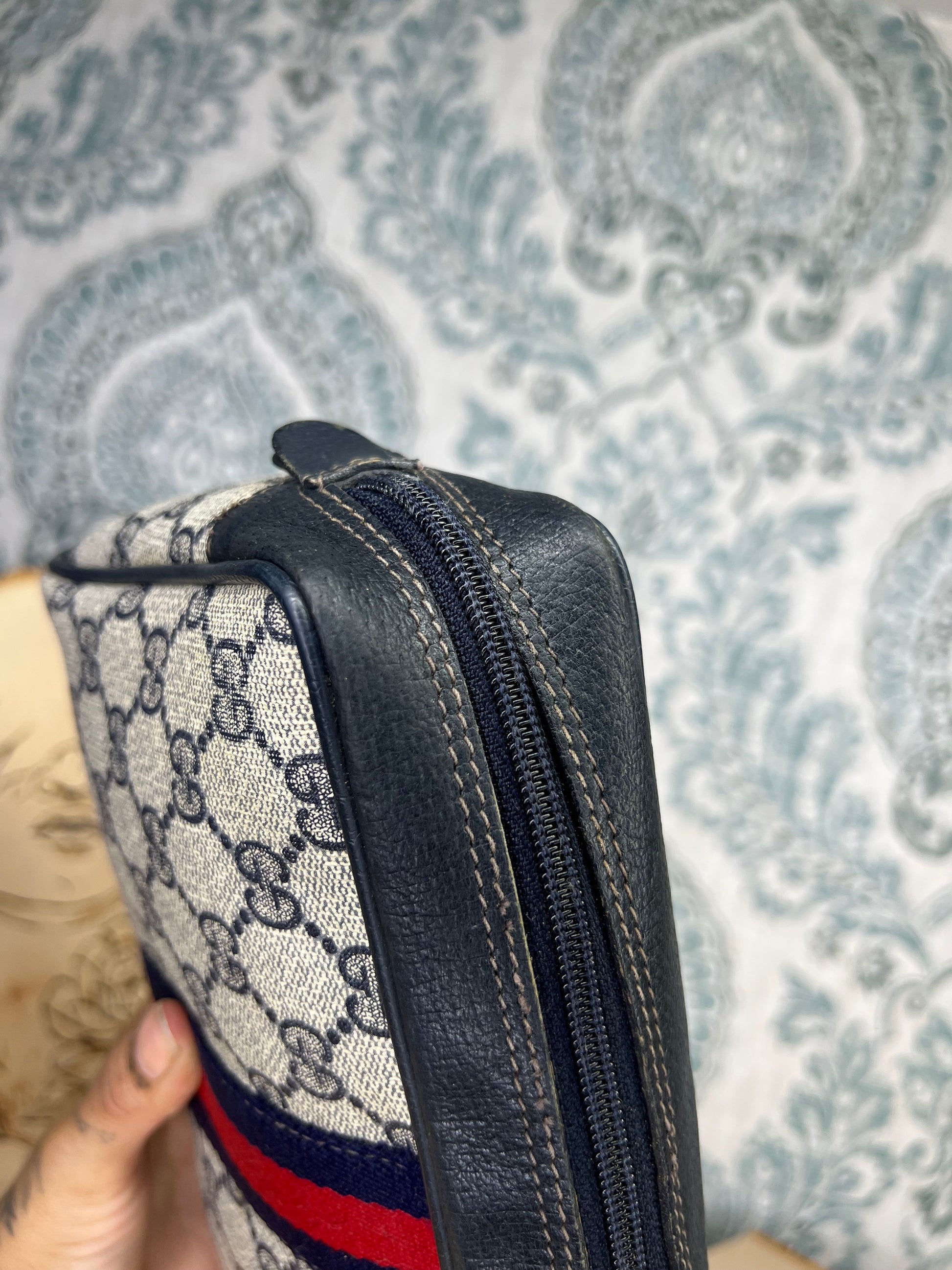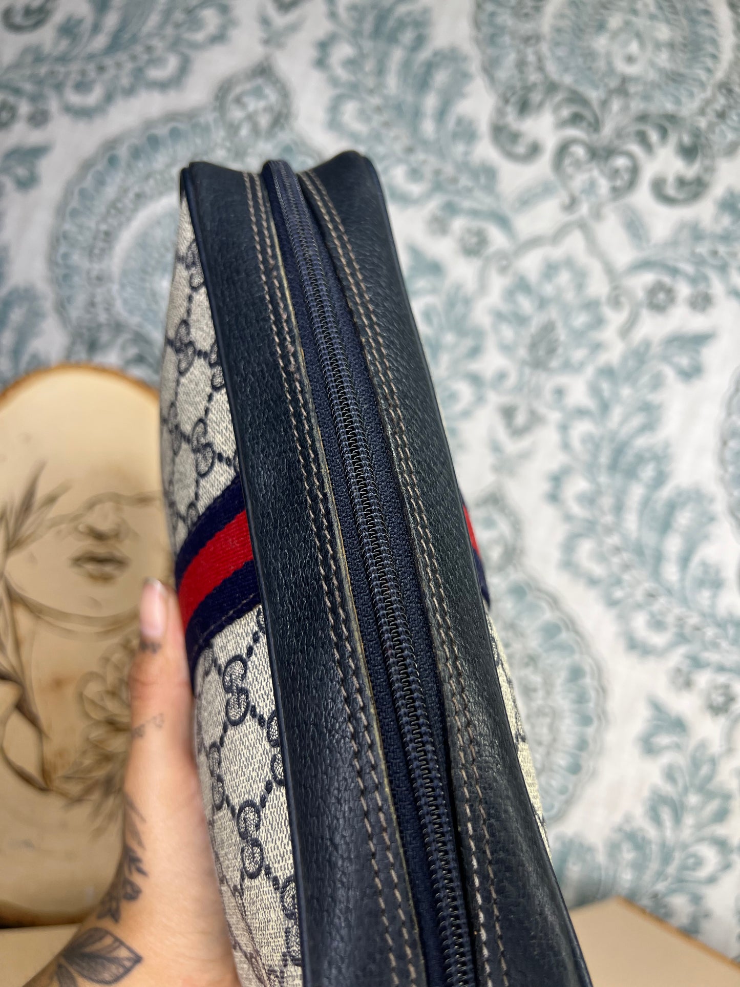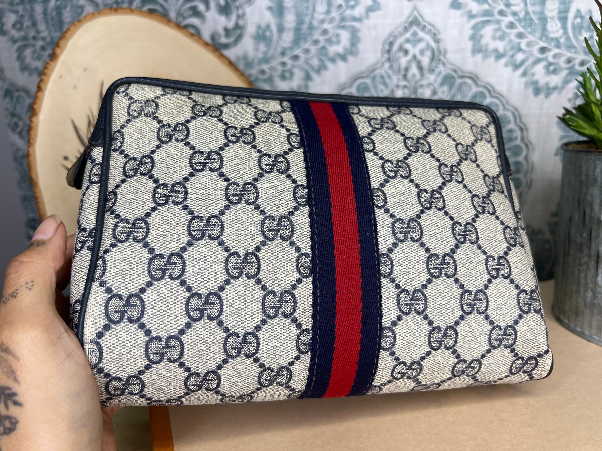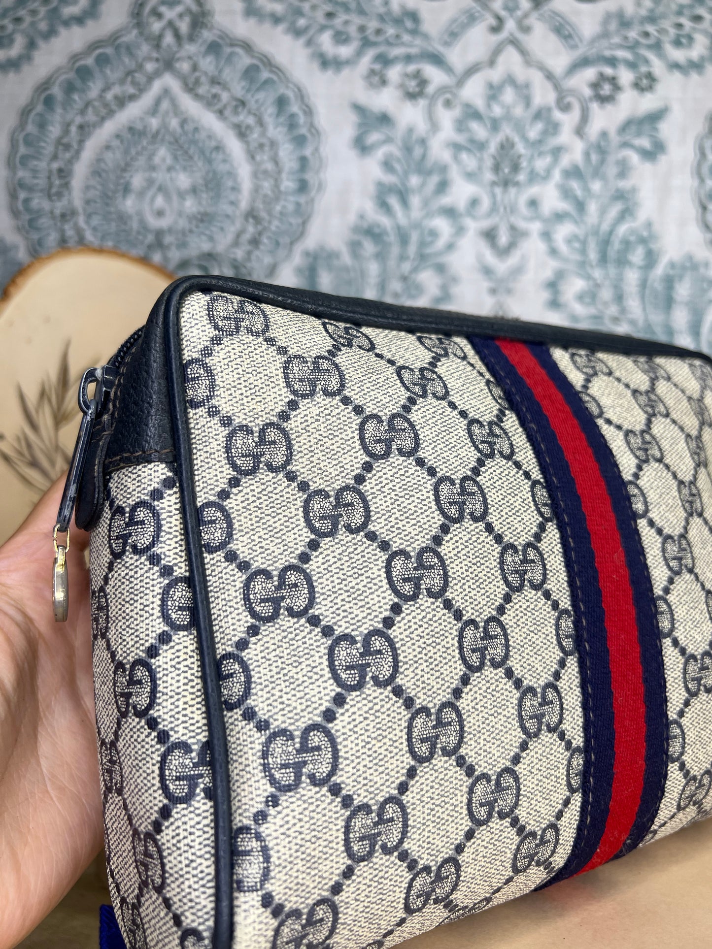 Gucci Navy Sherry Line Clutch / Cosmetic Pouch