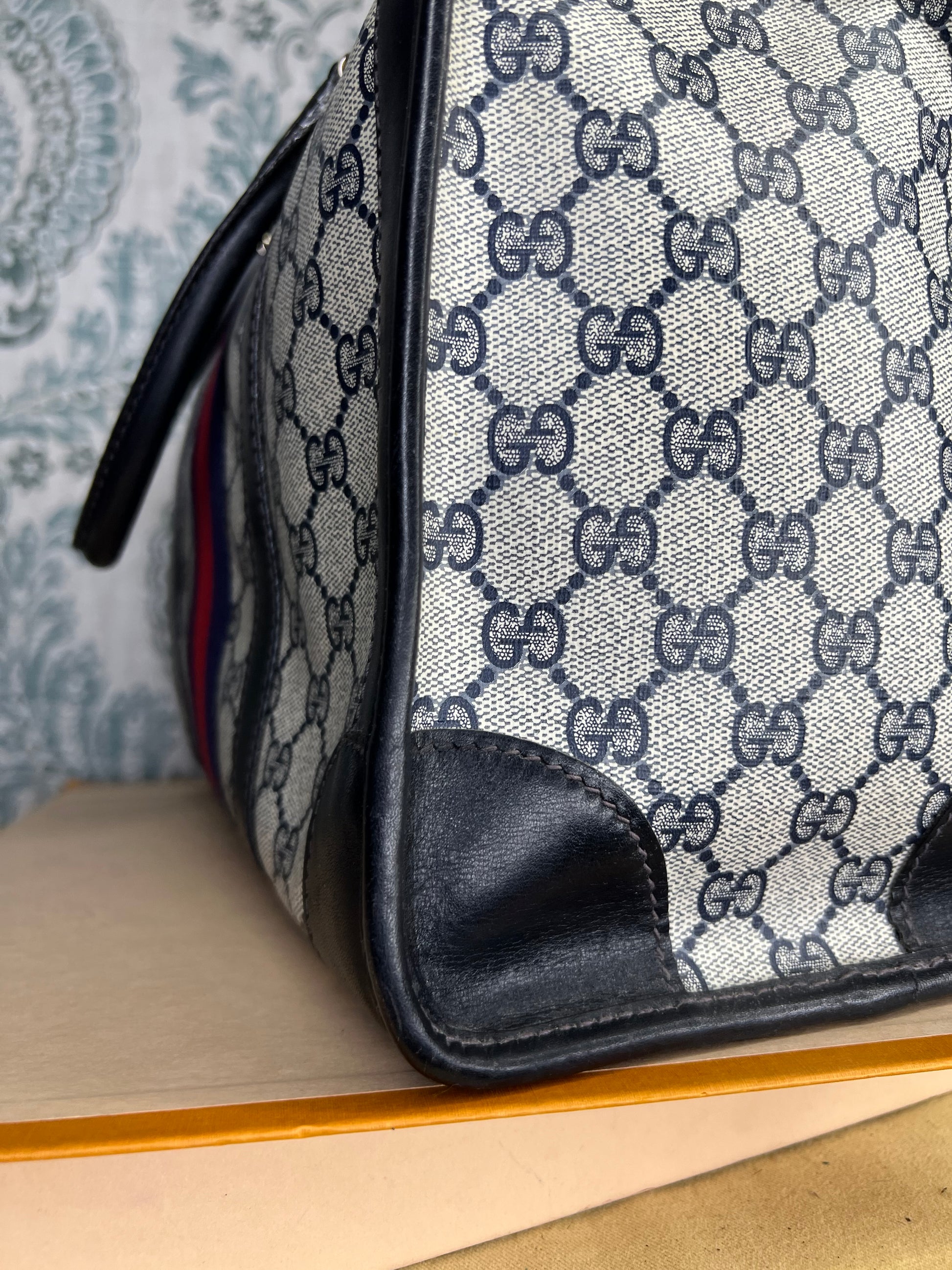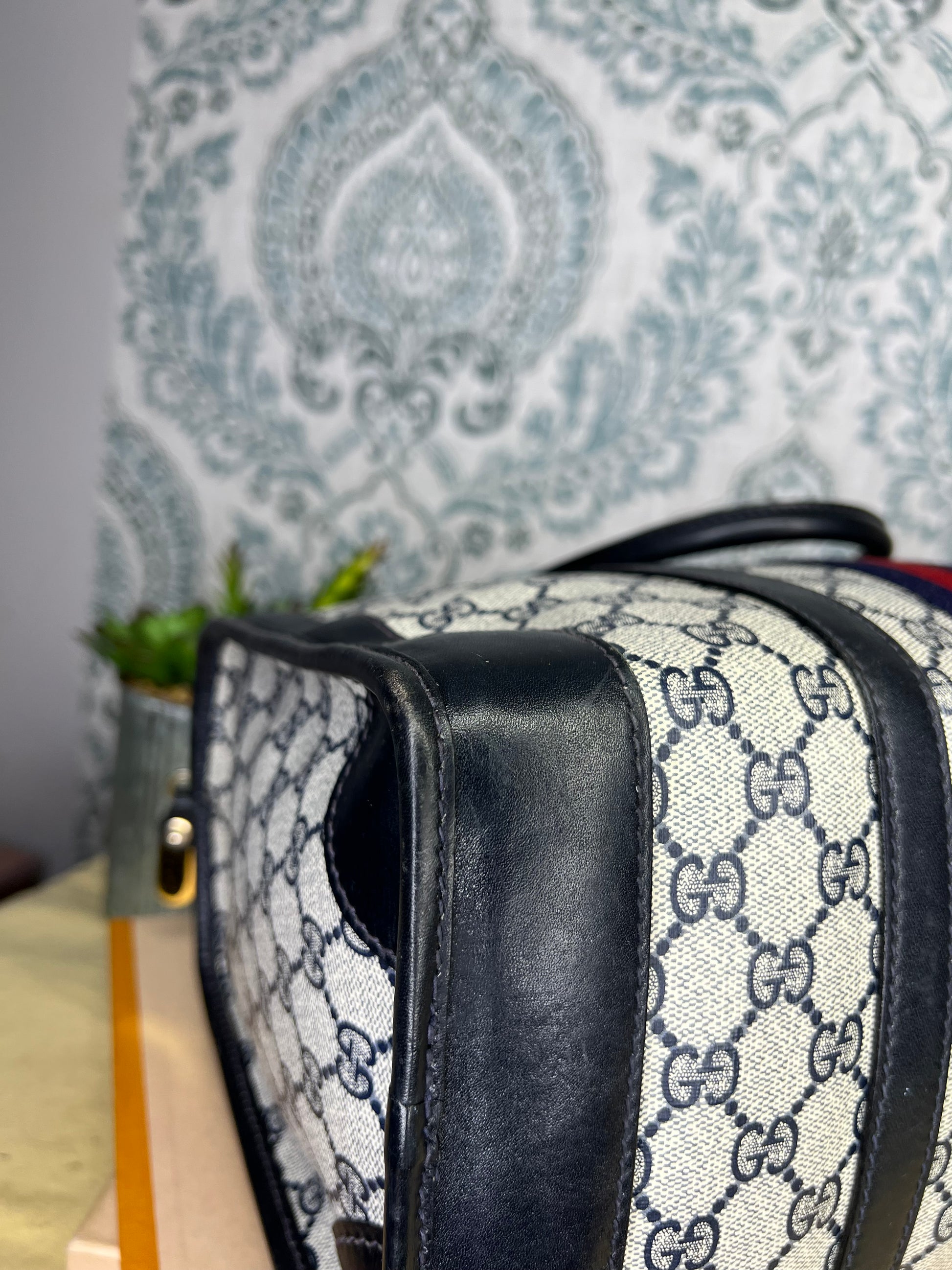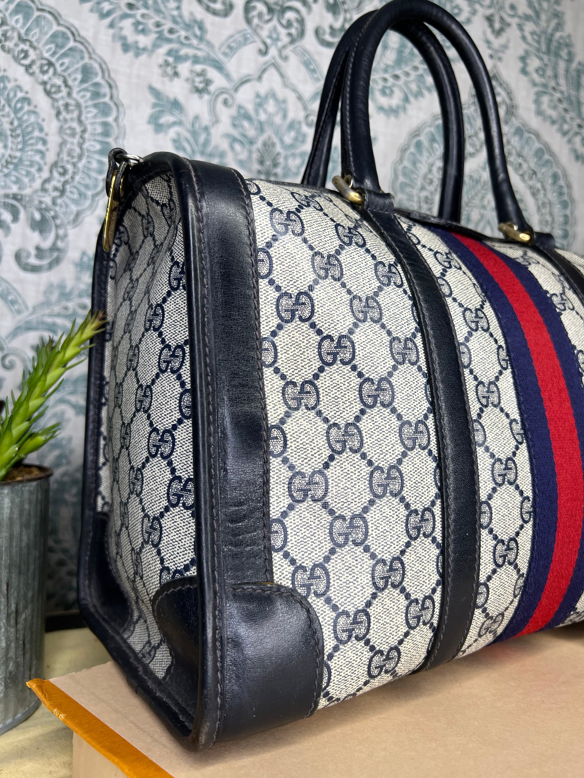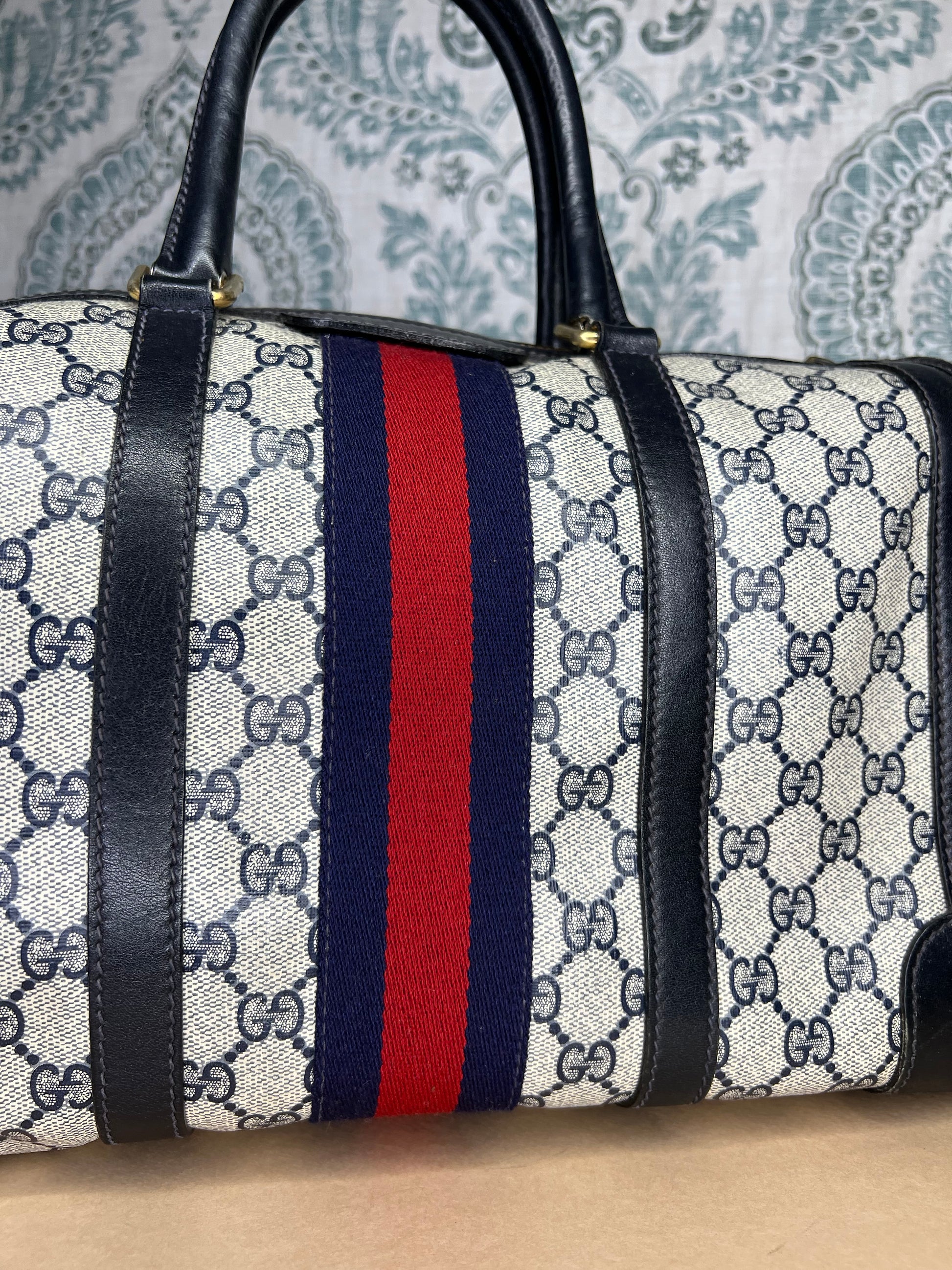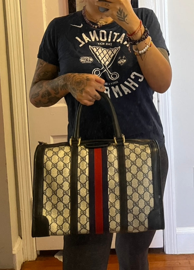 šø Gucci Navy Vintage Sherry Line Boston Bag