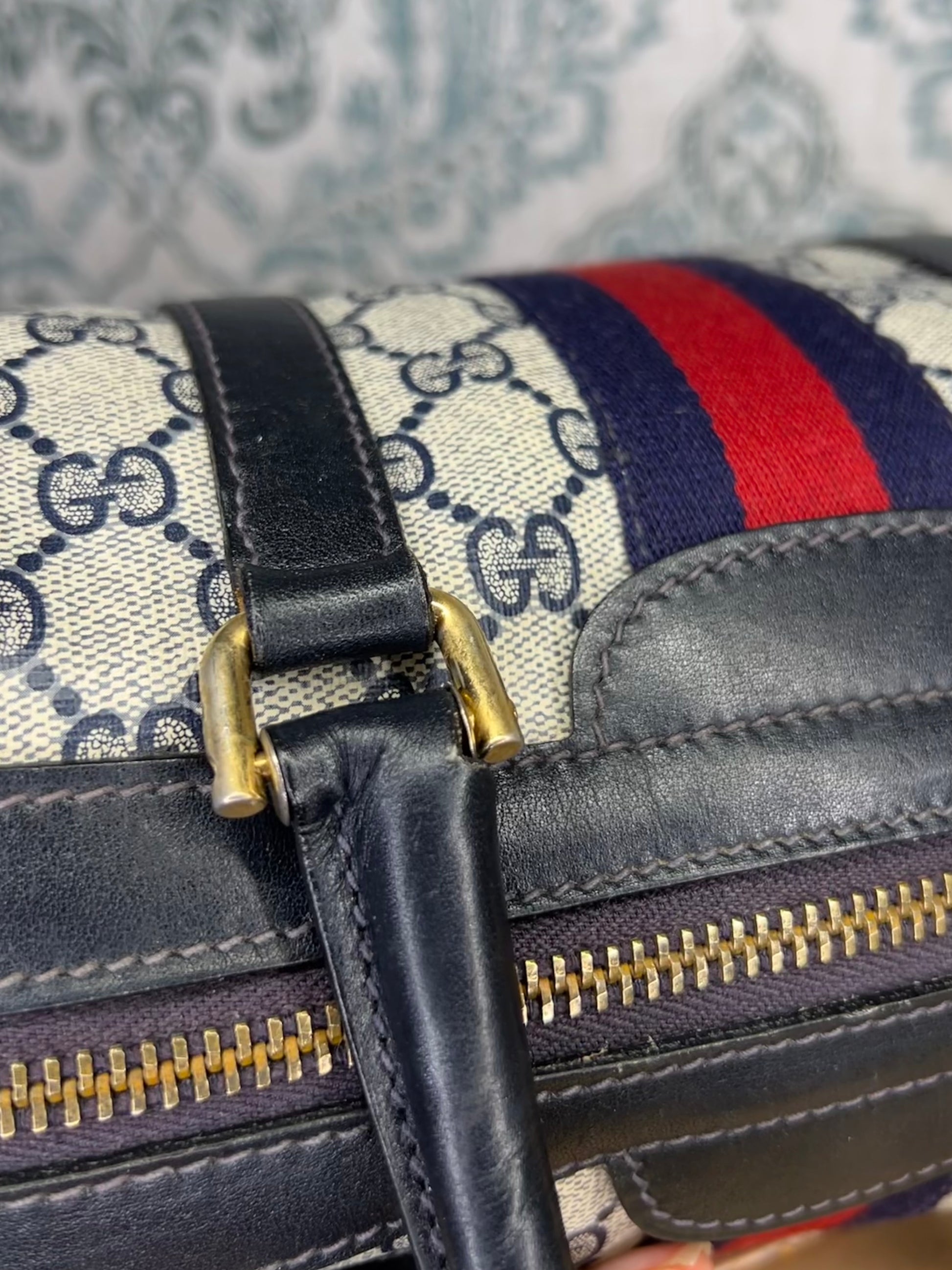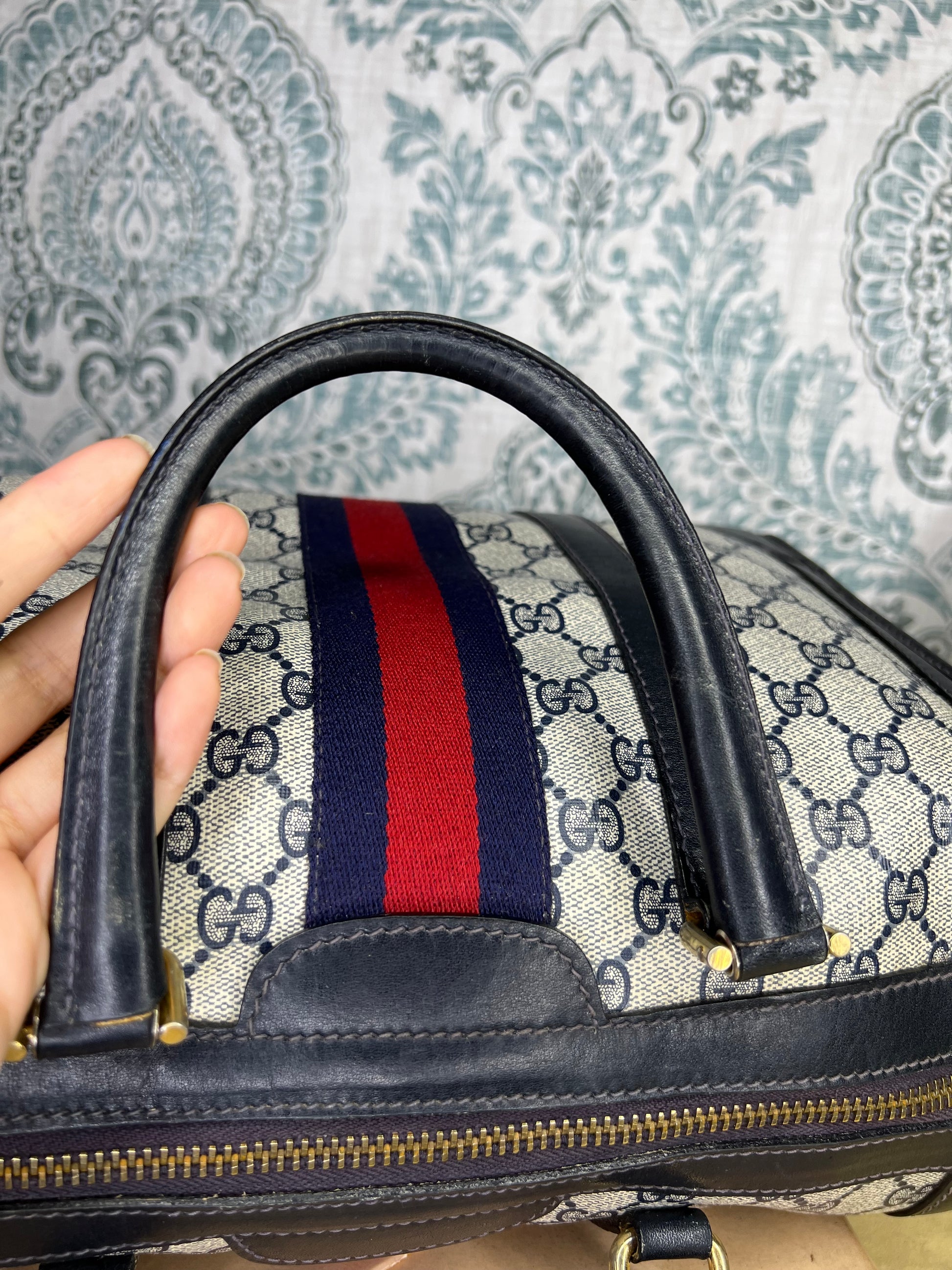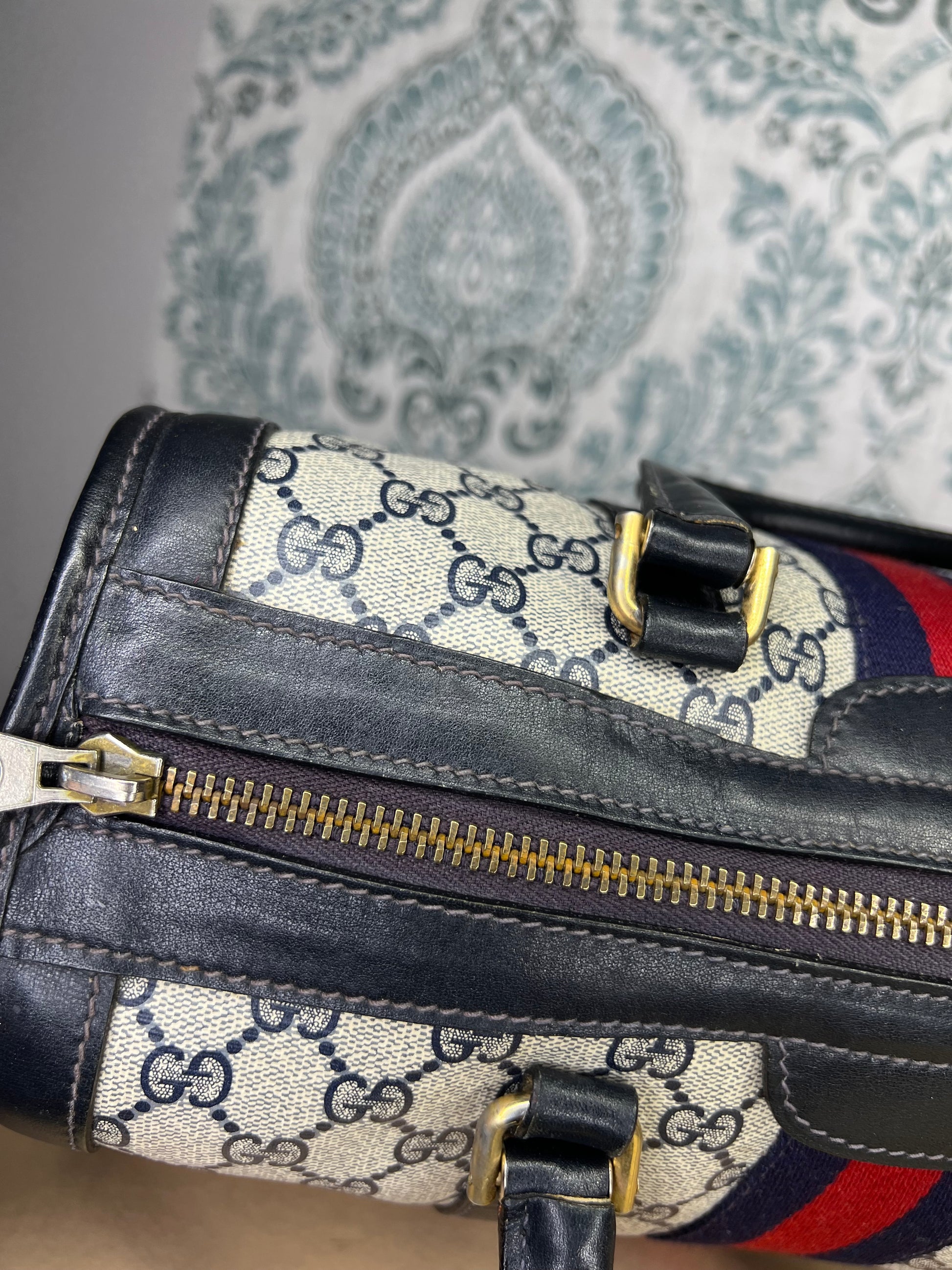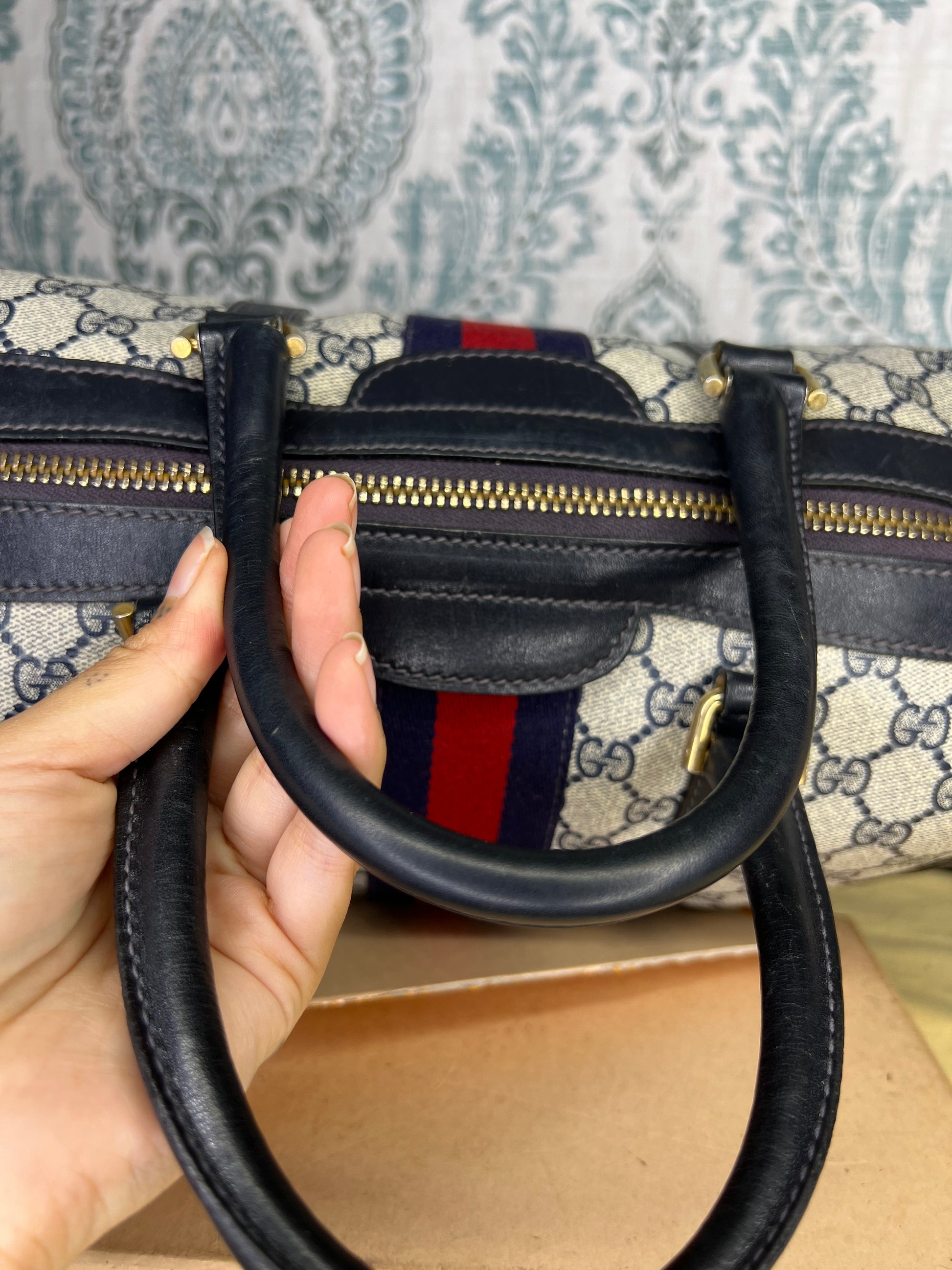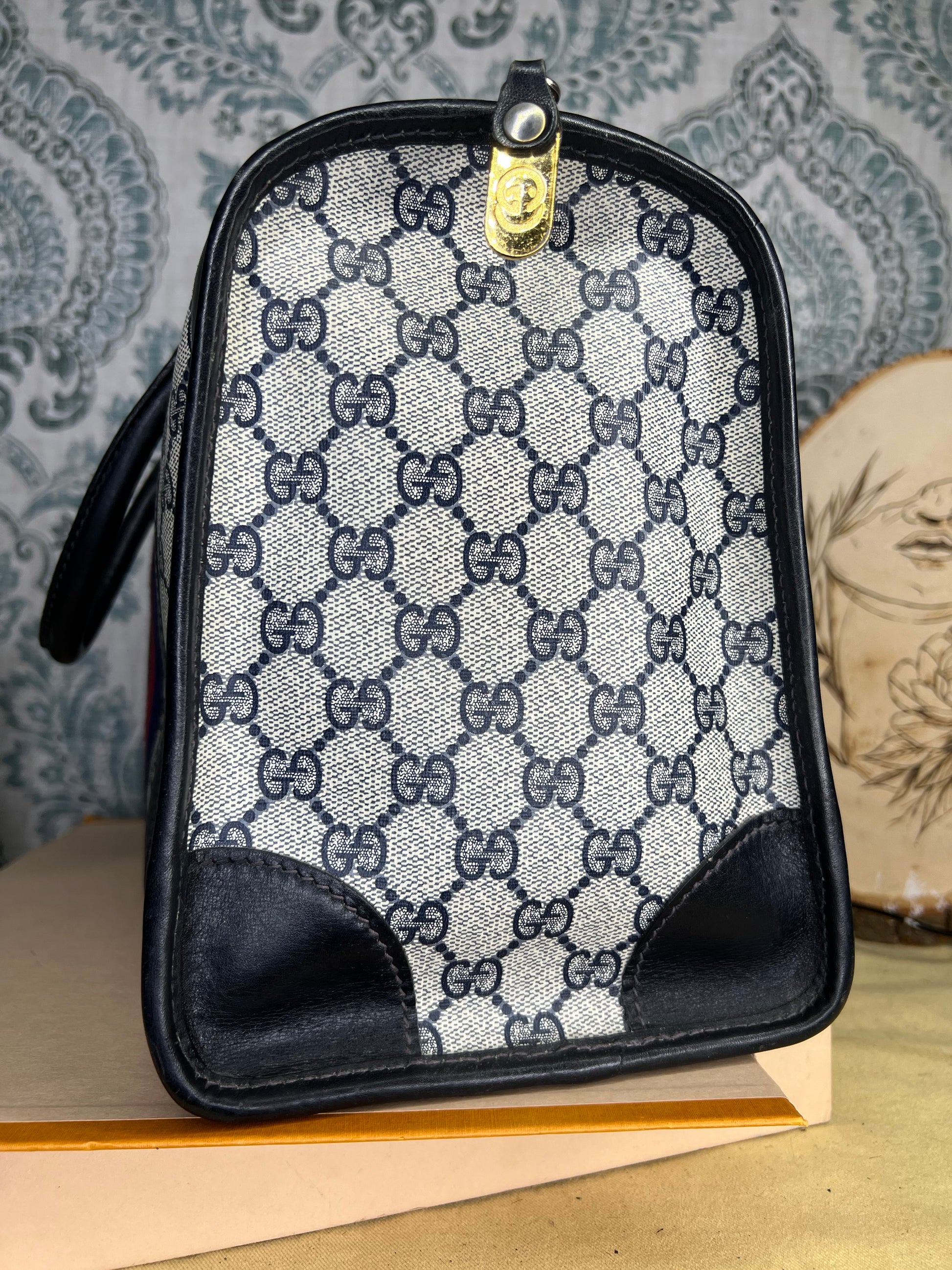 šø Gucci Navy Vintage Sherry Line Boston Bag