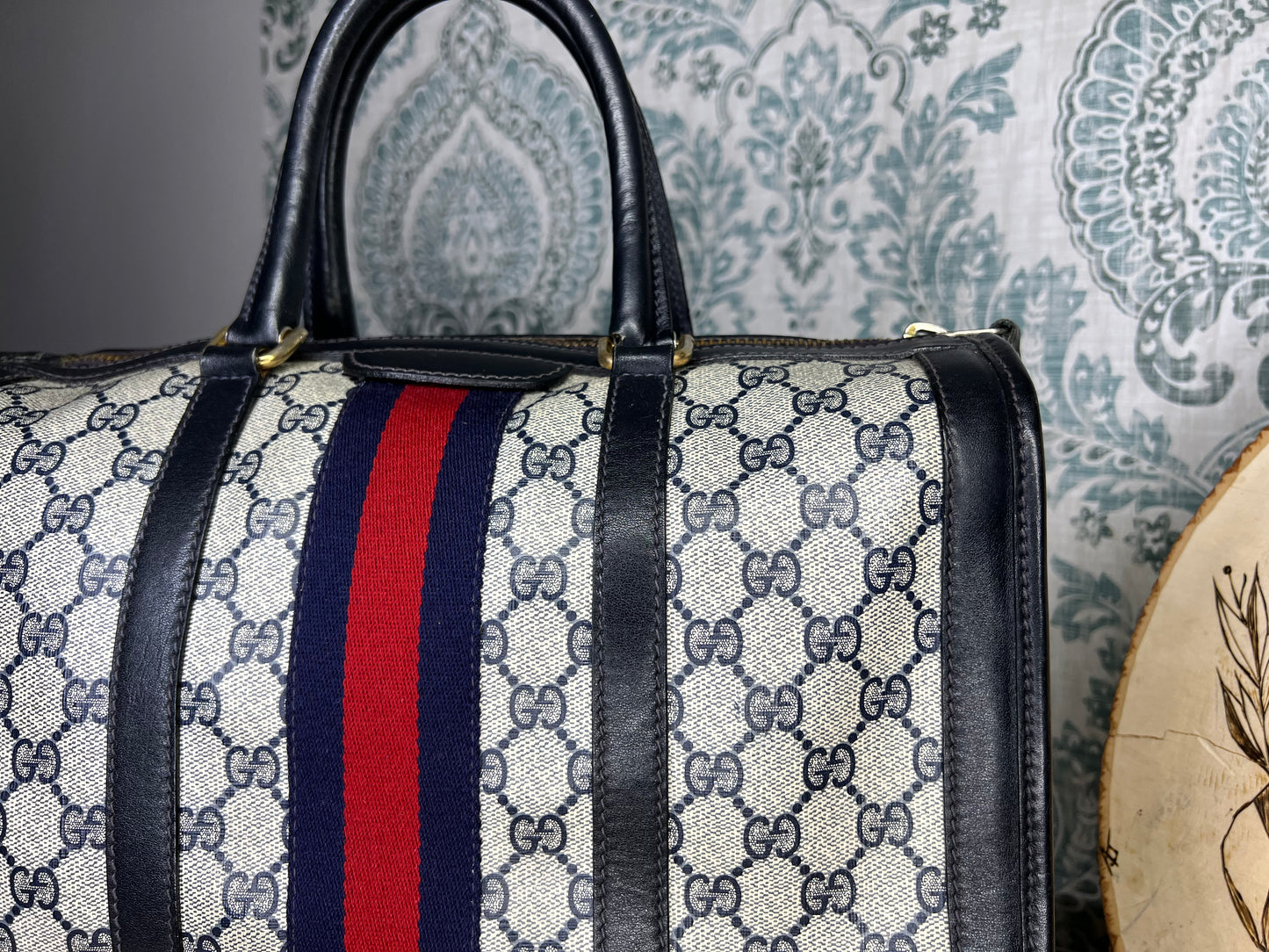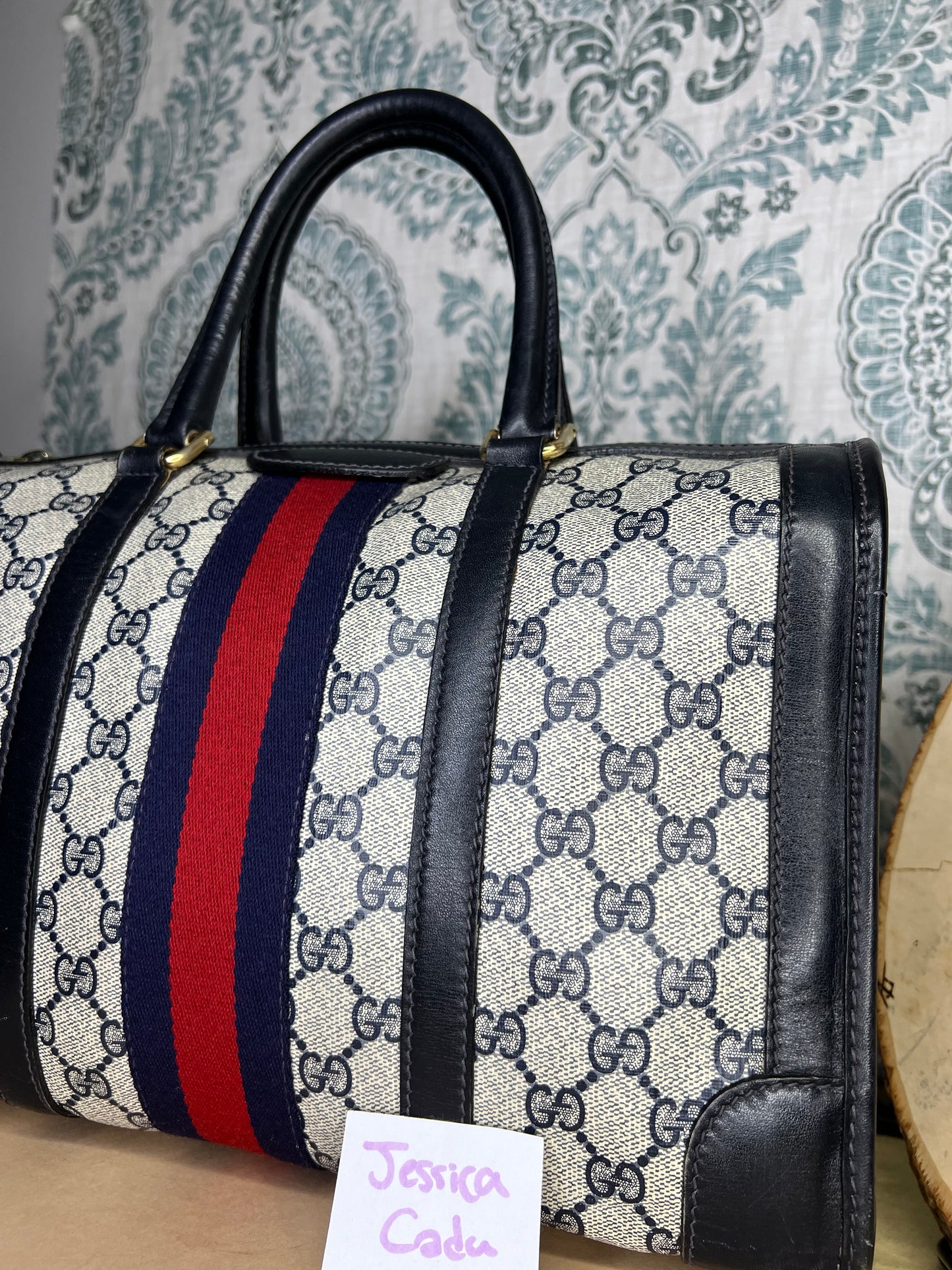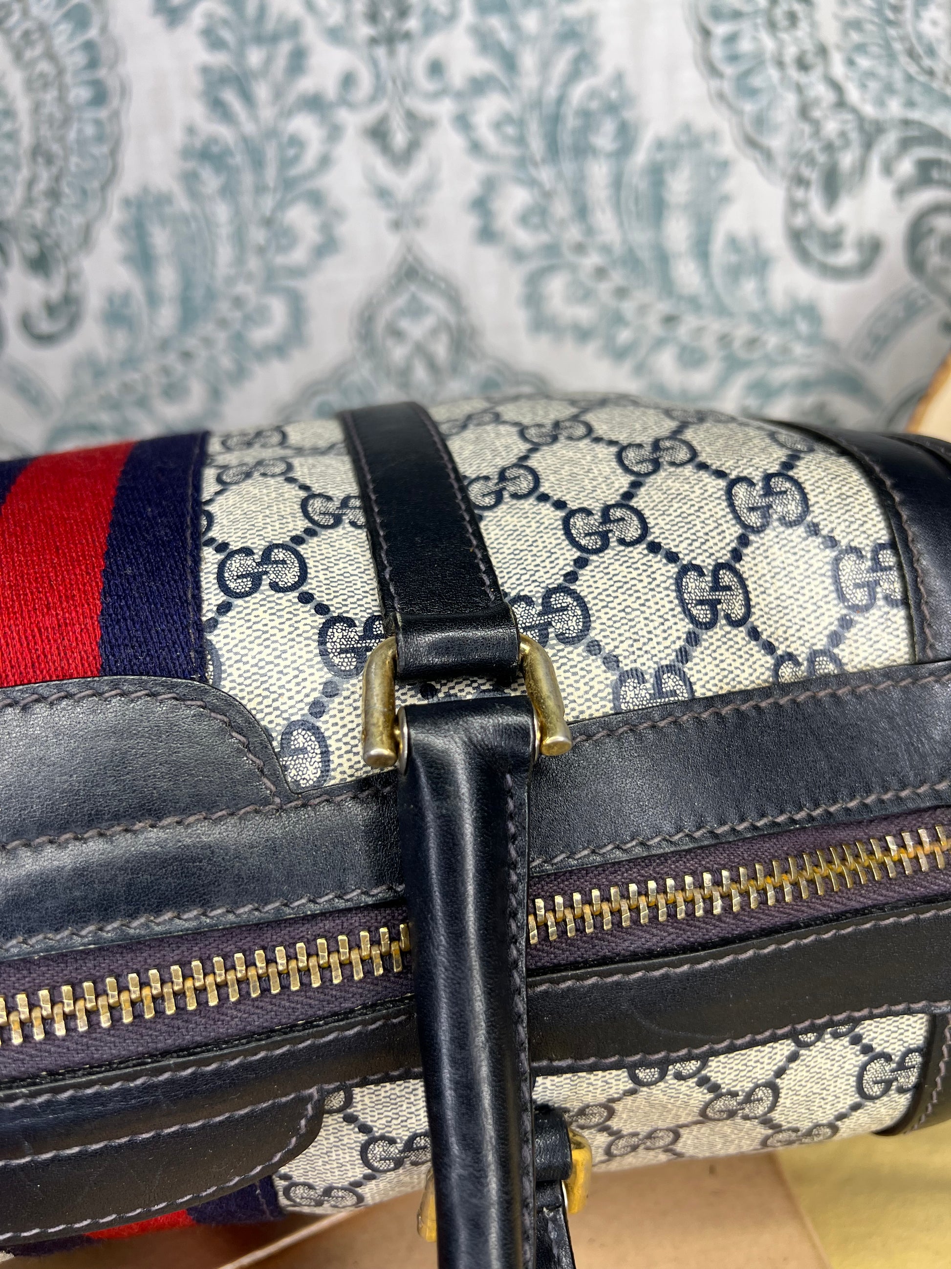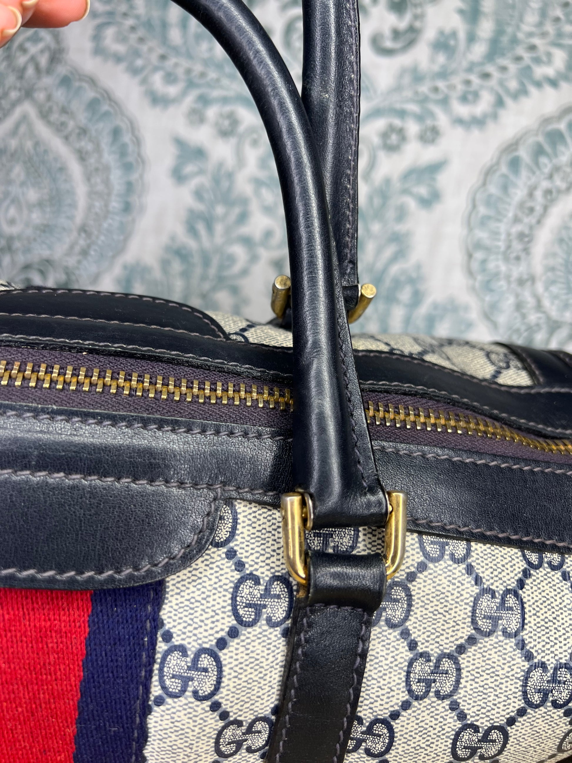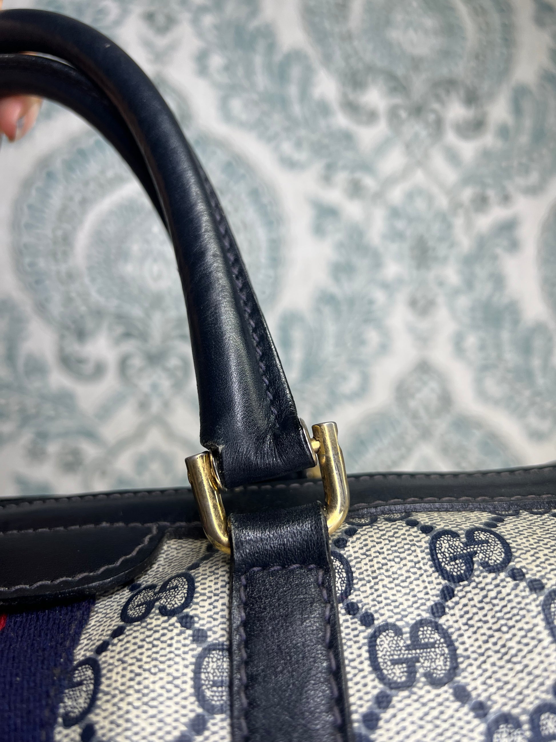 šø Gucci Navy Vintage Sherry Line Boston Bag