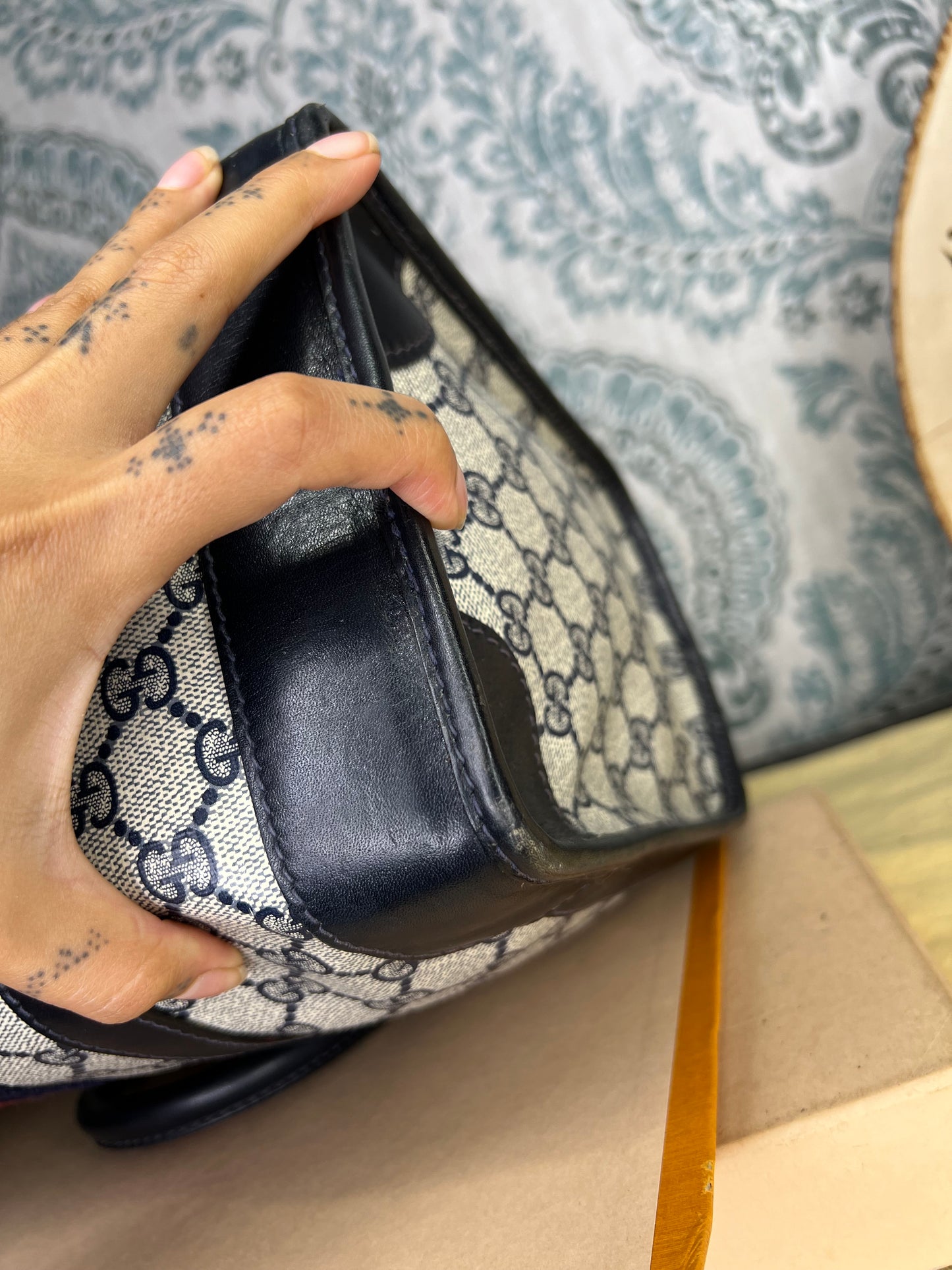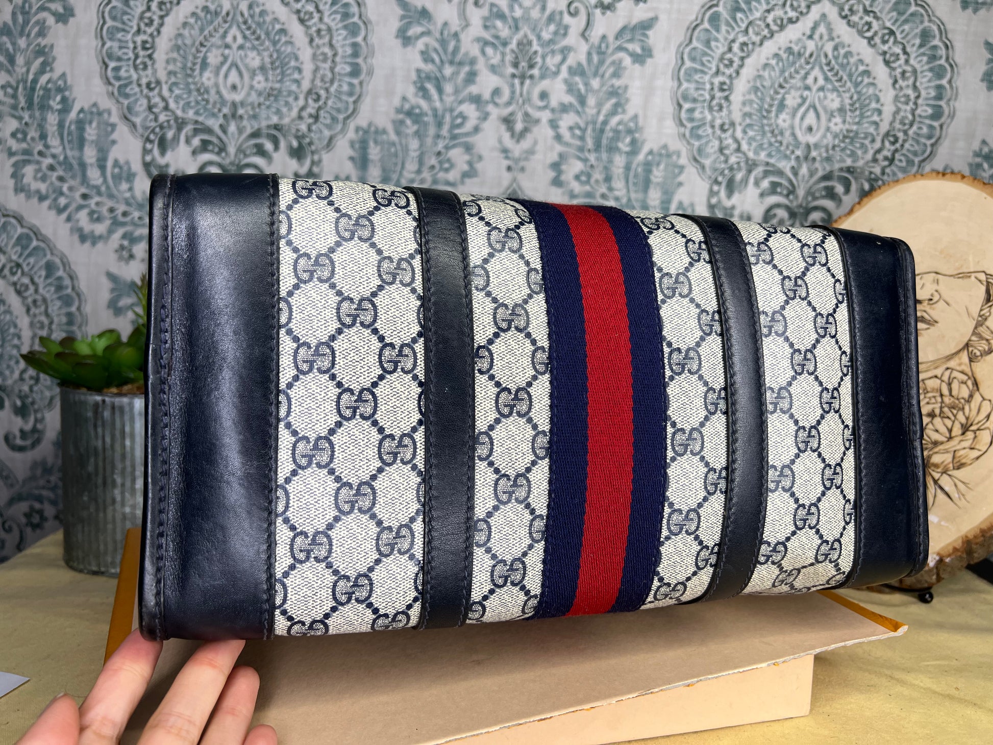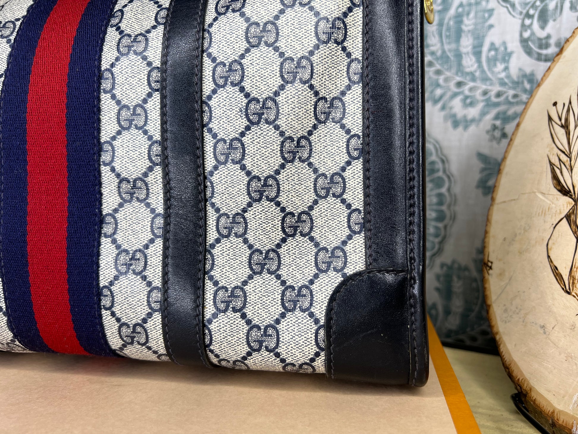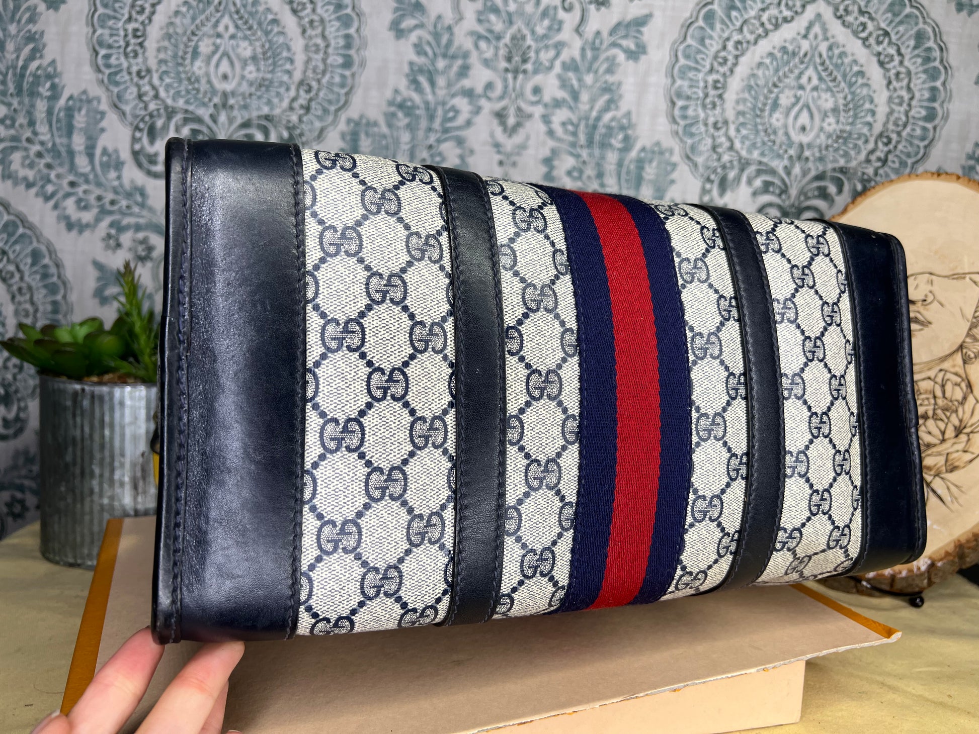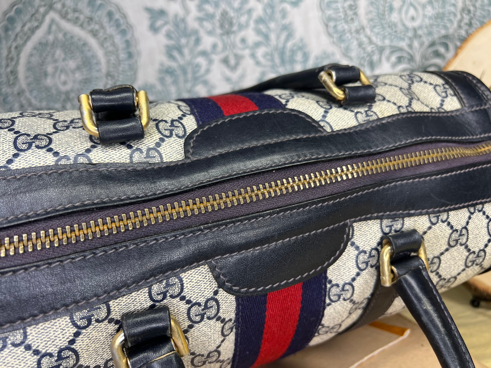 šø Gucci Navy Vintage Sherry Line Boston Bag
