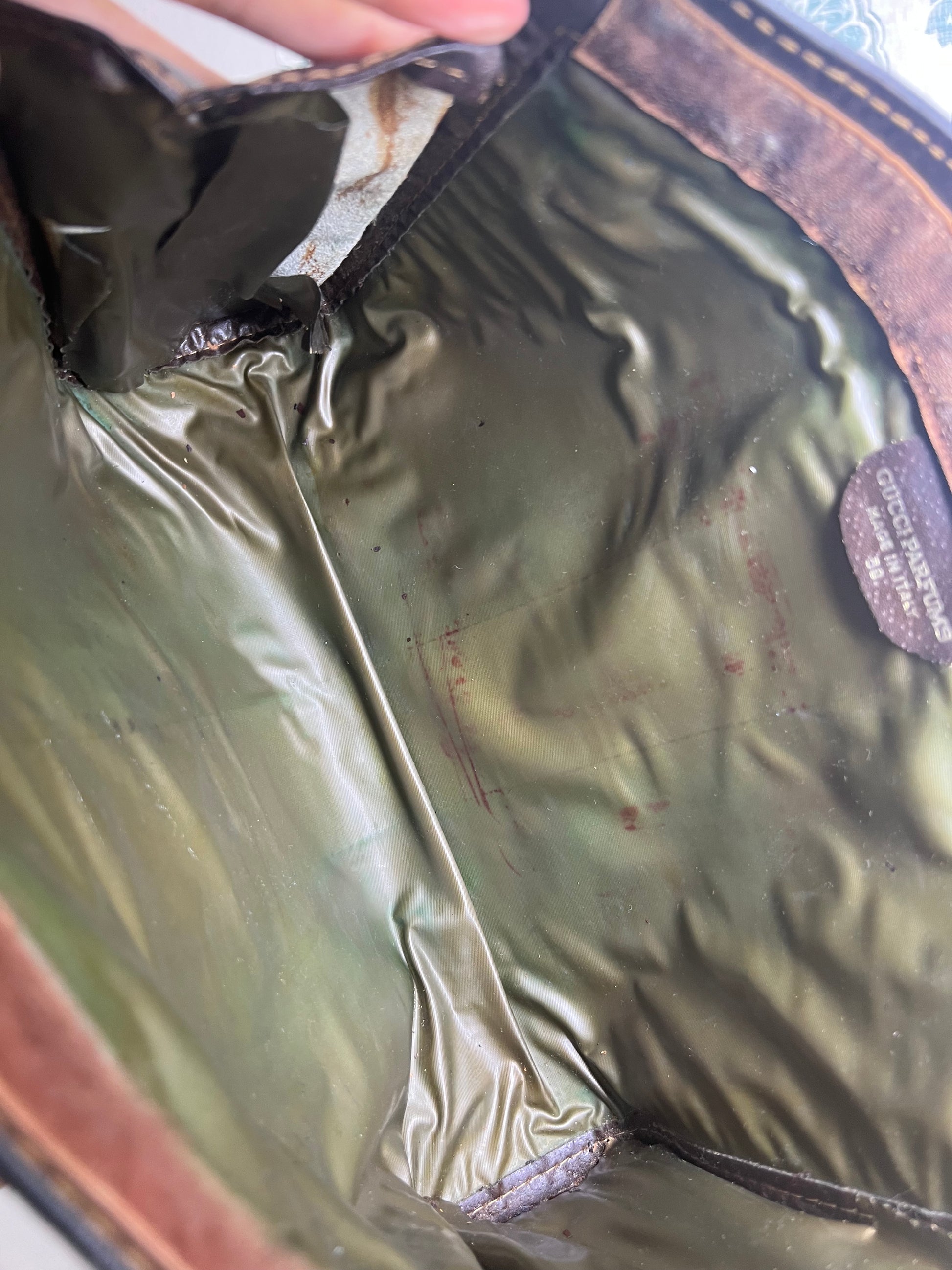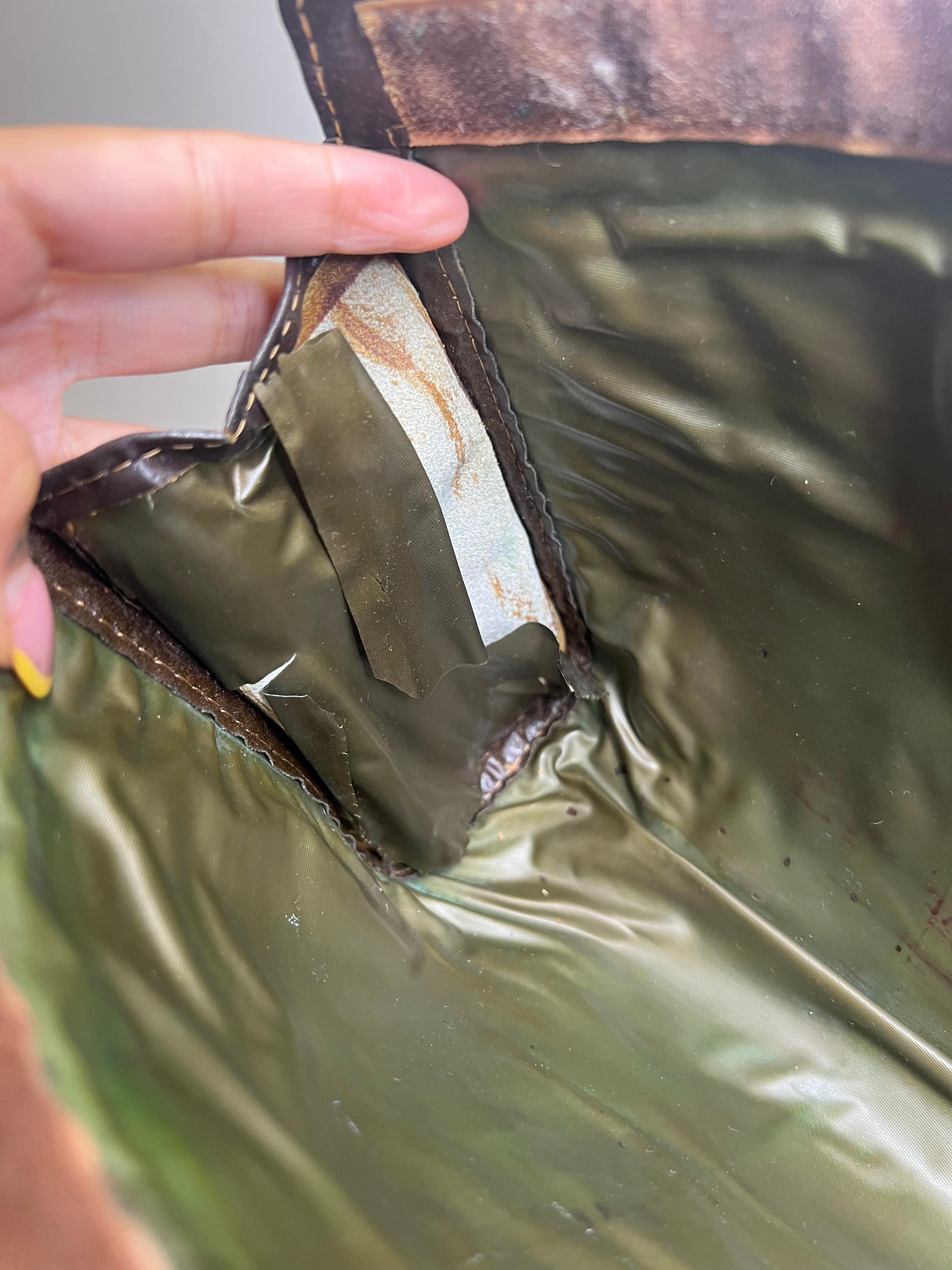 🌸 Interior lining has become undone on one side of the pouch. It is not sticky or flaky, so pouch can still be used as is