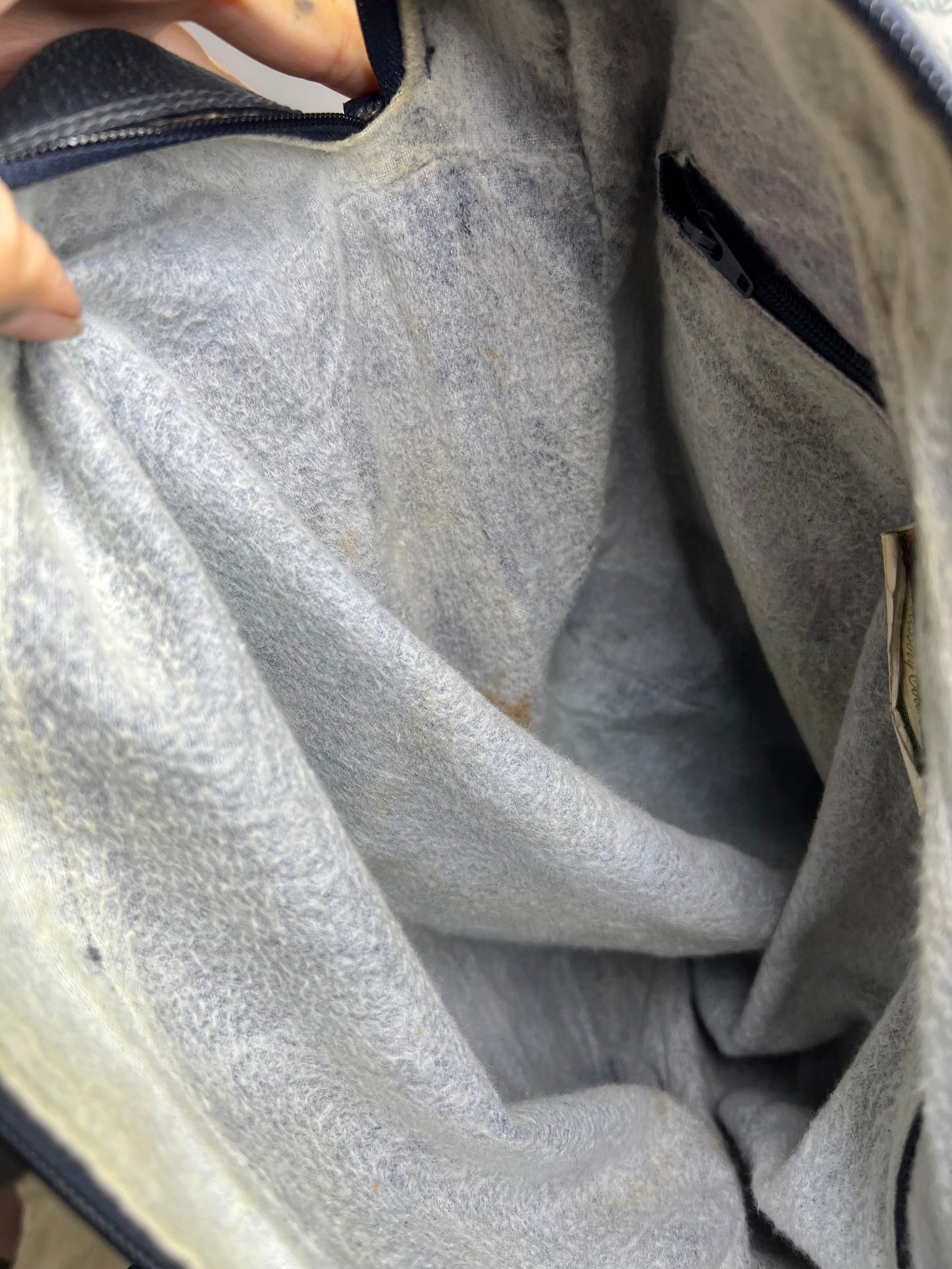 πΈ Interior was powdery/peeling, but it has been cleaned out and is now usable. Soft fabric lining. There is some staining on the interior. Front exterior pocket and zipped pocket are a nylon material and clean