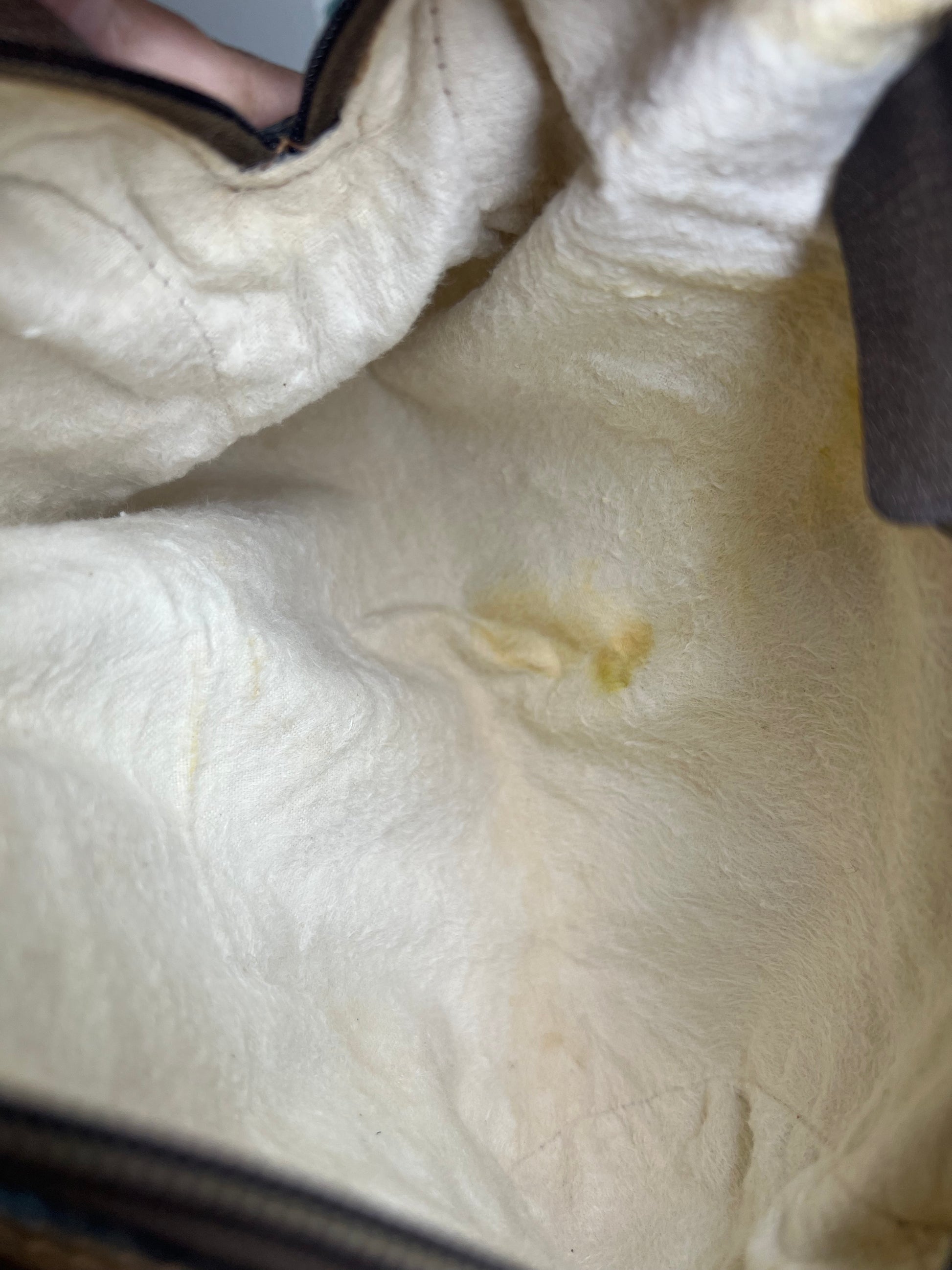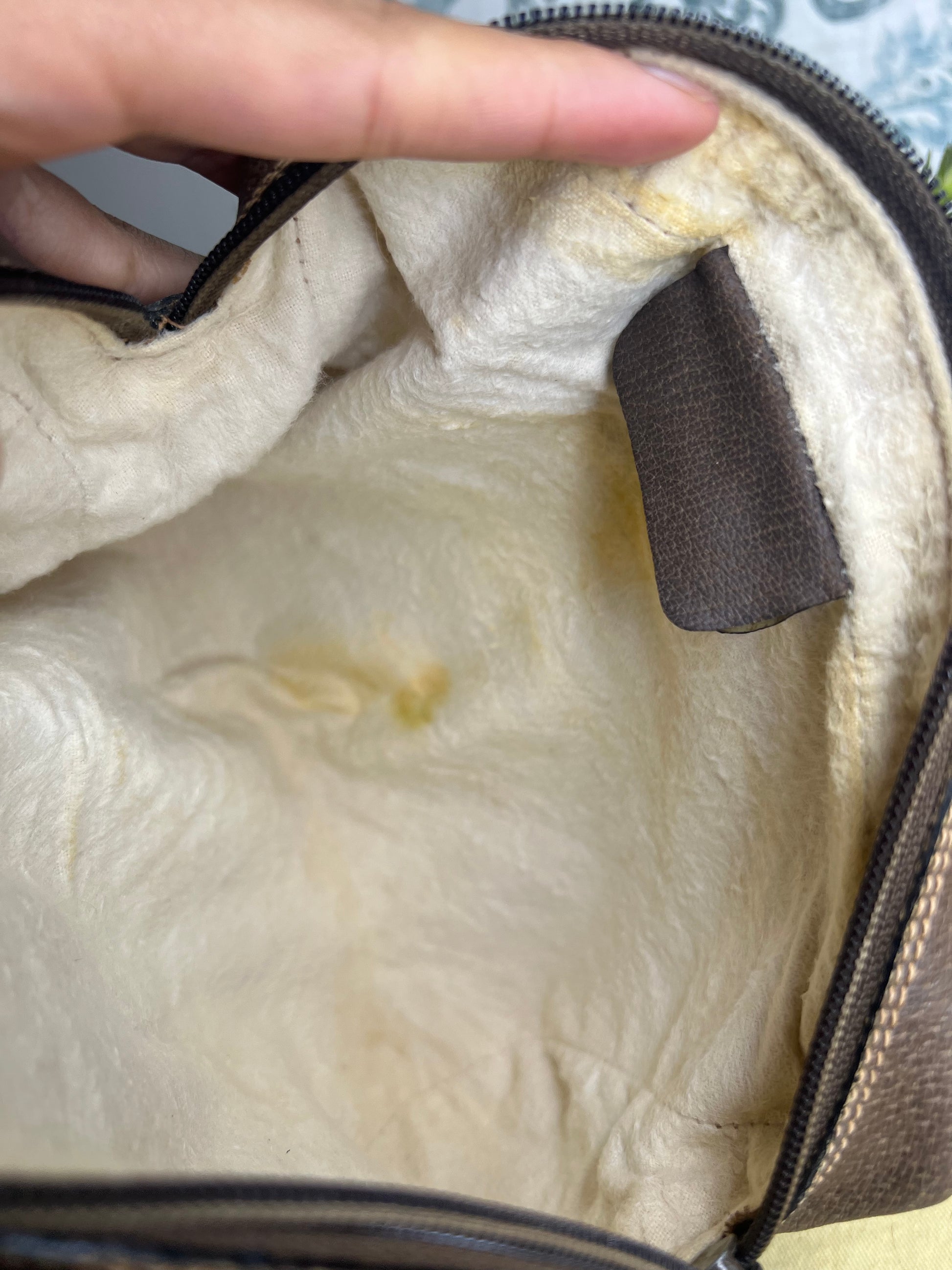 πΈ Leather has minor scuffs and wrinkles, but is intact. Faint stains on leather. There are faded areas on the sherry line stripe, but itβs overall in good shape