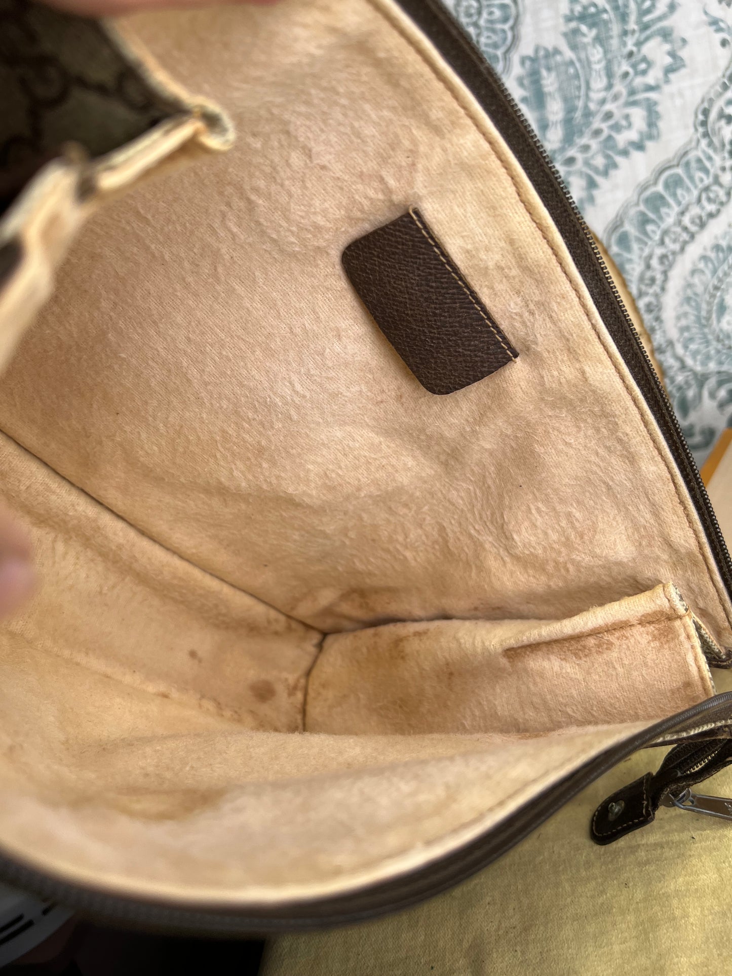 šø Leather trim is intact, but does have rubs/scuffs at each corner. No torn areas. No staining