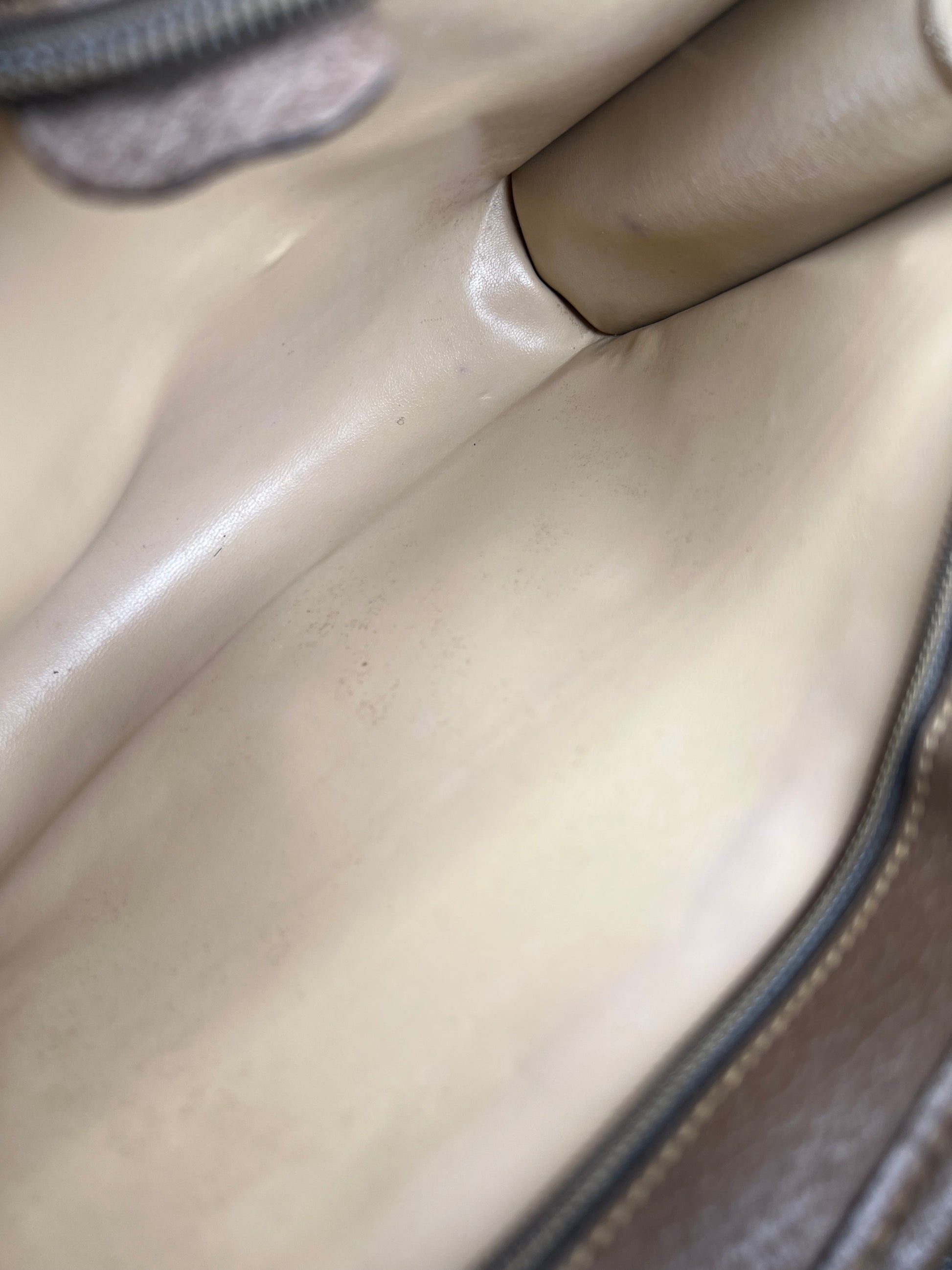 🌸 Leather trim is intact, but does have rubs and some cracking. Scuffs and minor stains present on leather