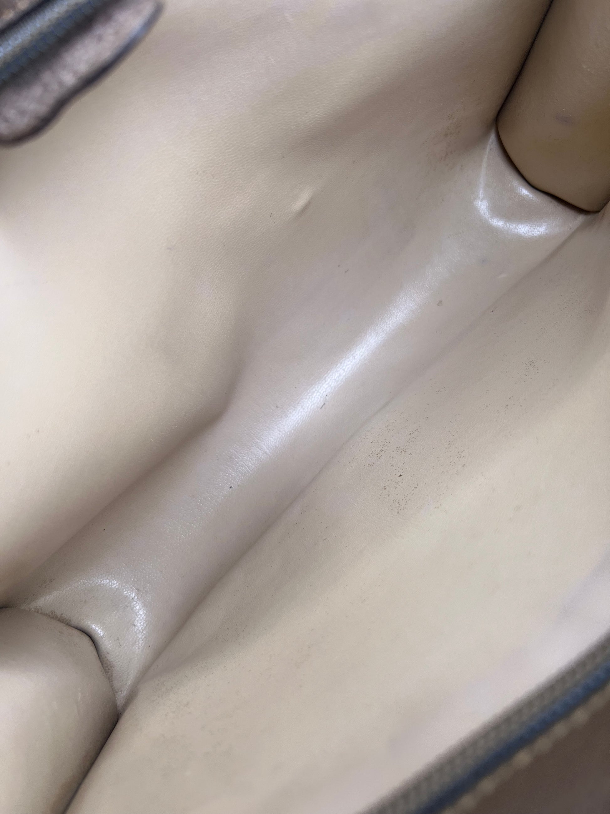 🌸 Coated canvas is in good shape. No stains. There is minor hidden cracks at top edge folds of the clutch