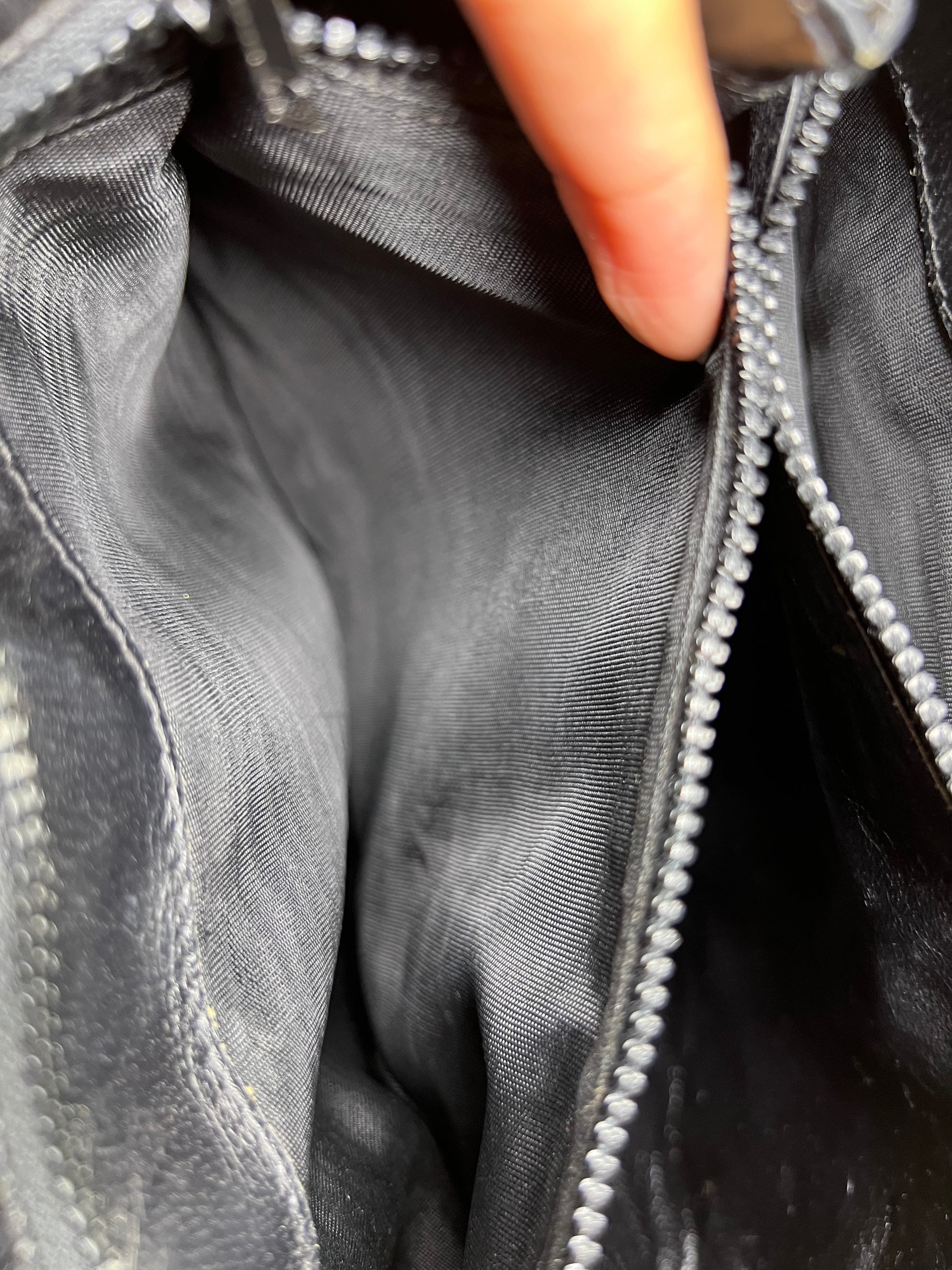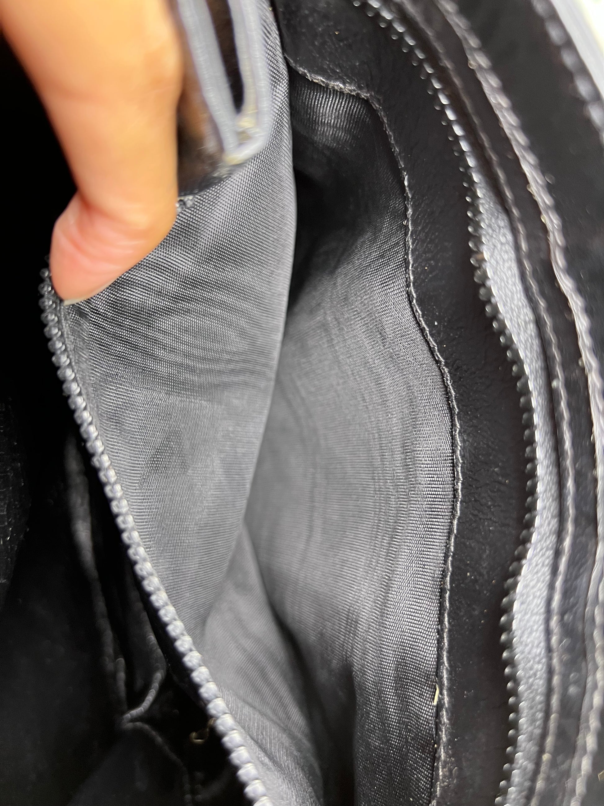 šø Interior lining is wrinkled and scuffed through out, but no peeling or stickiness. It is 100% usable. Zippers are working properly