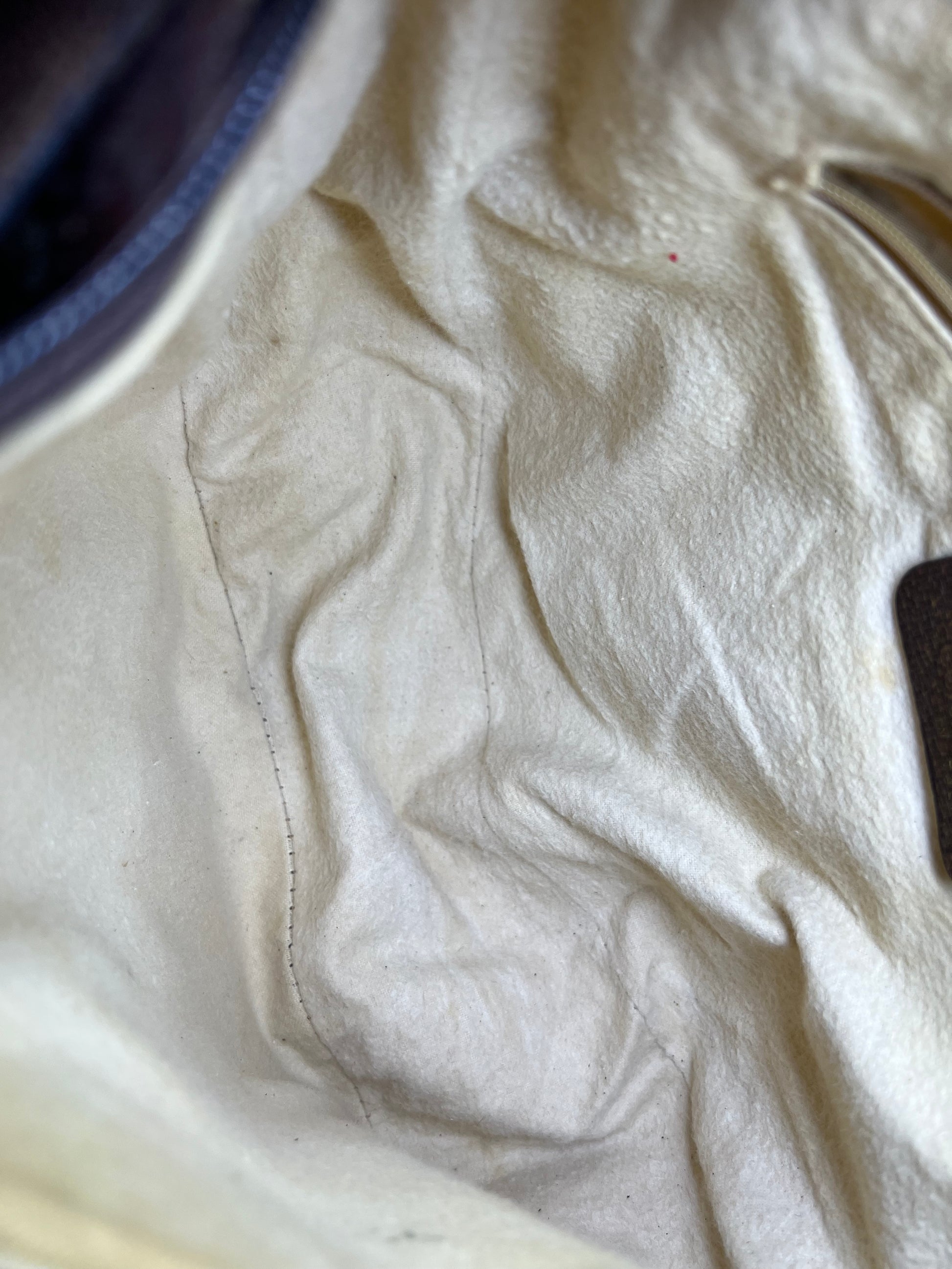 🌸 Interior lining was peeling, but the peeling has been removed. Underneath the peeling is a soft fabric material and the interior is 100% usable. Minor stains present from, but no major issues