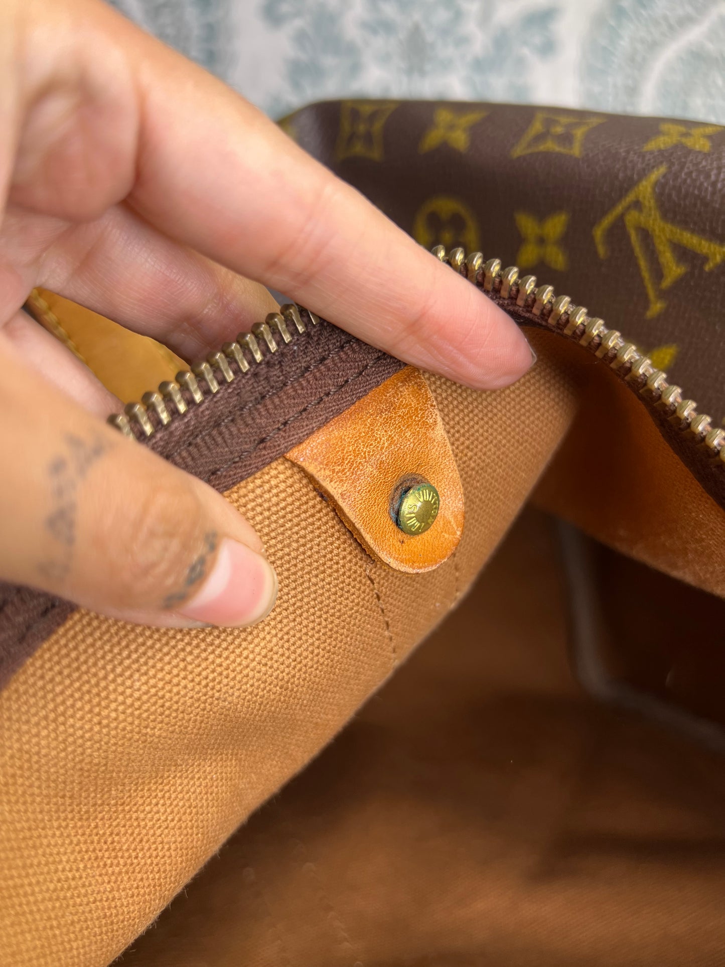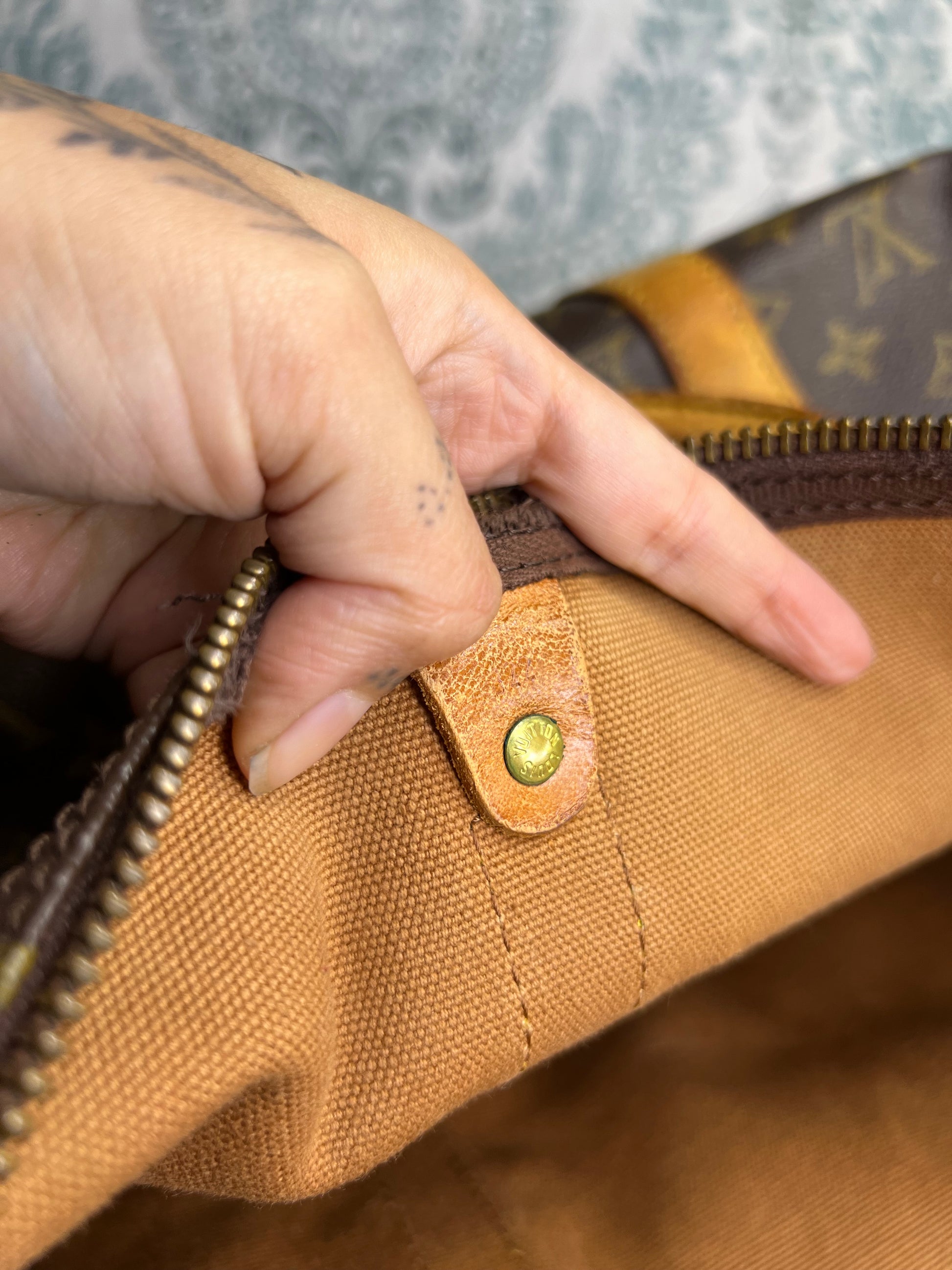 πΈ Bag has heavier wear and price reflects that. Not for picky buyers. Overall leather is in sturdy shape and can be used as is, all the duffle needs is a new zipper and rivet which can be replaced by a cobbler