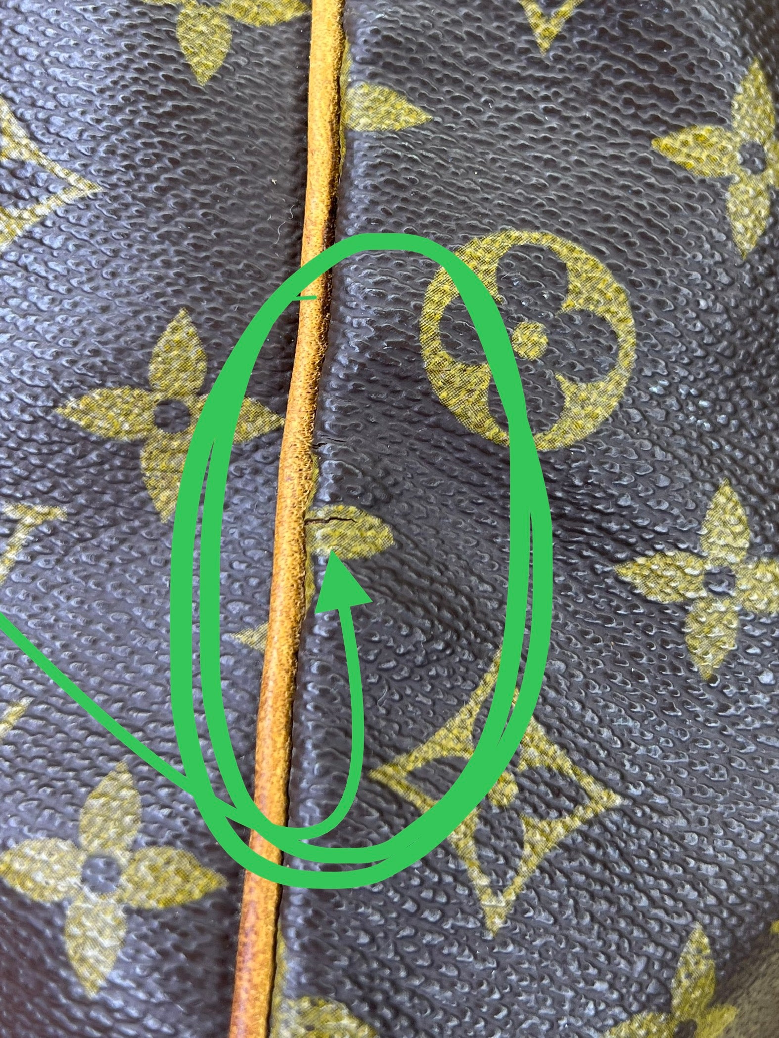 πΈ Canvas has scuffing, but no major damage. There is small amount of hidden hairline cracking near the edge of the bag at piping. No large cracks