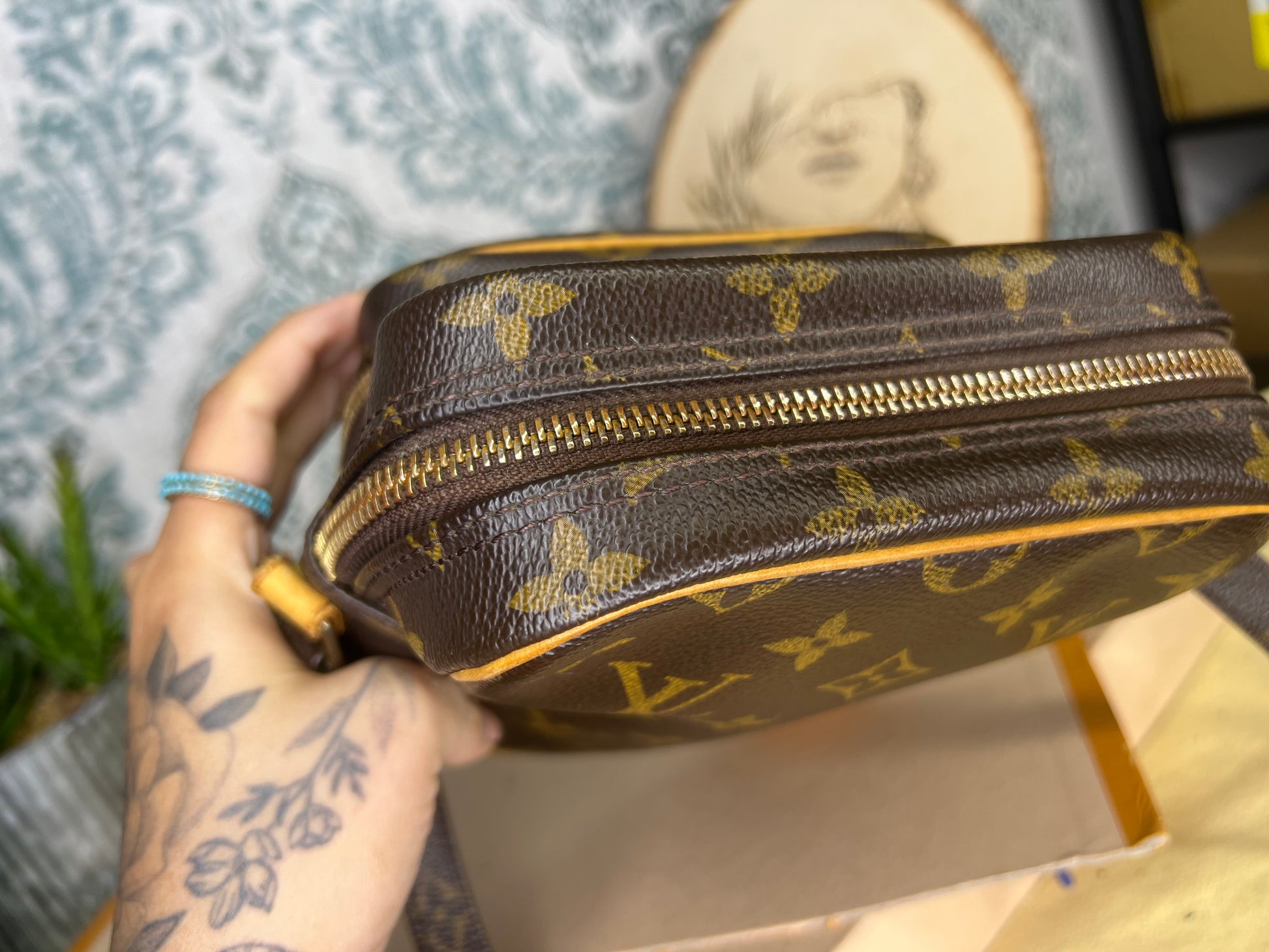 🌸 Canvas is crack-free and in great shape. Monogram is bright and clear throughout