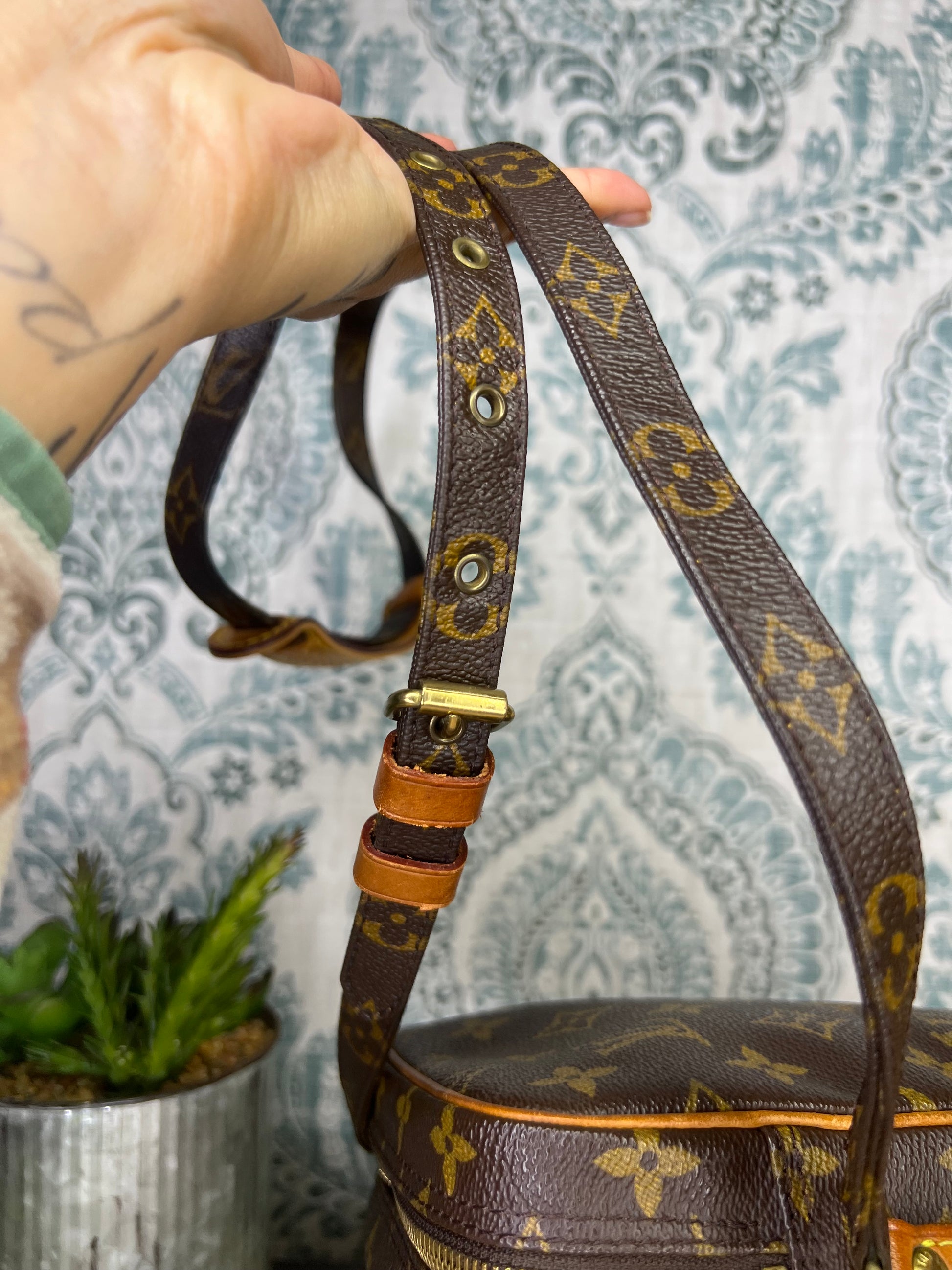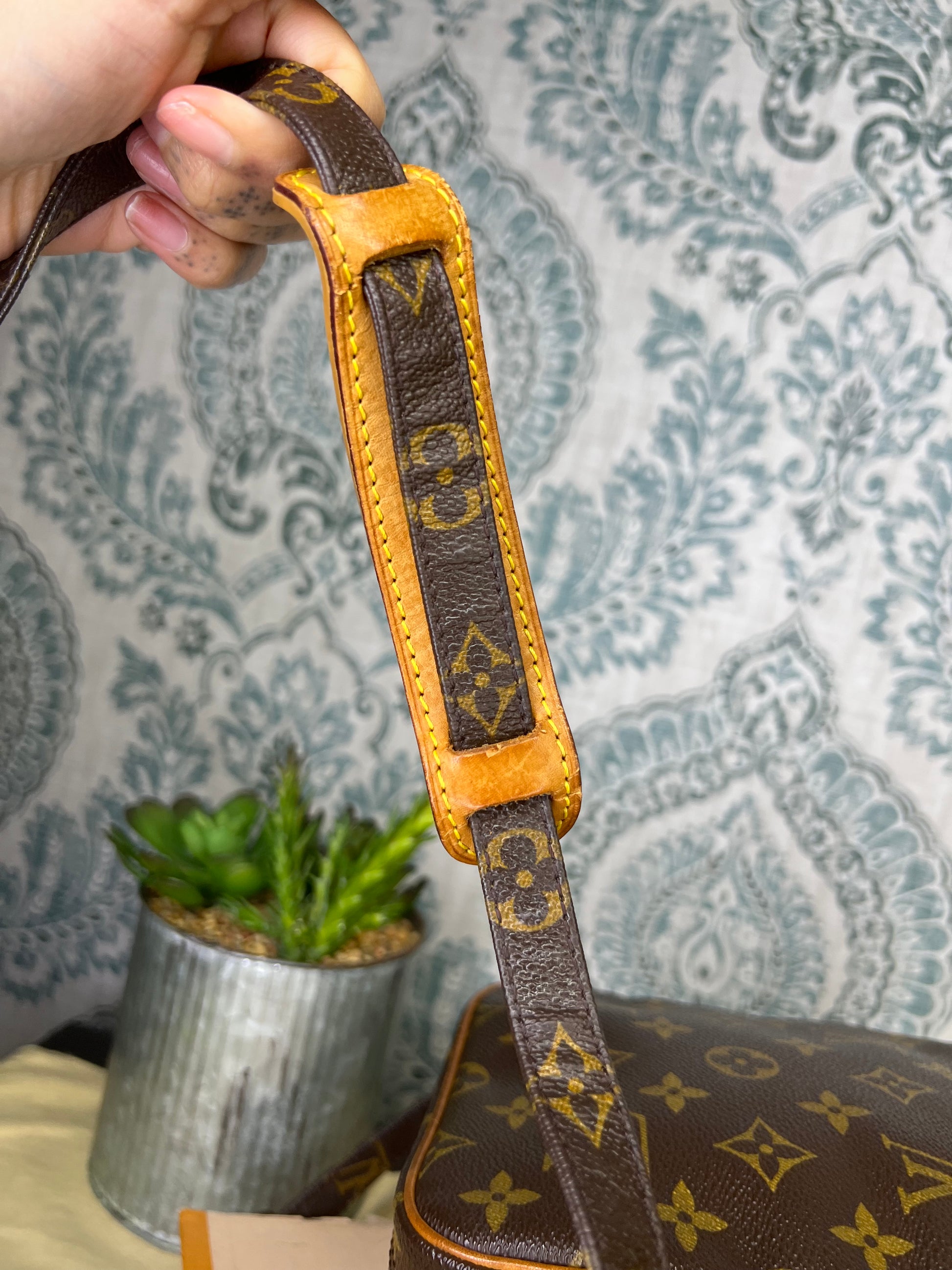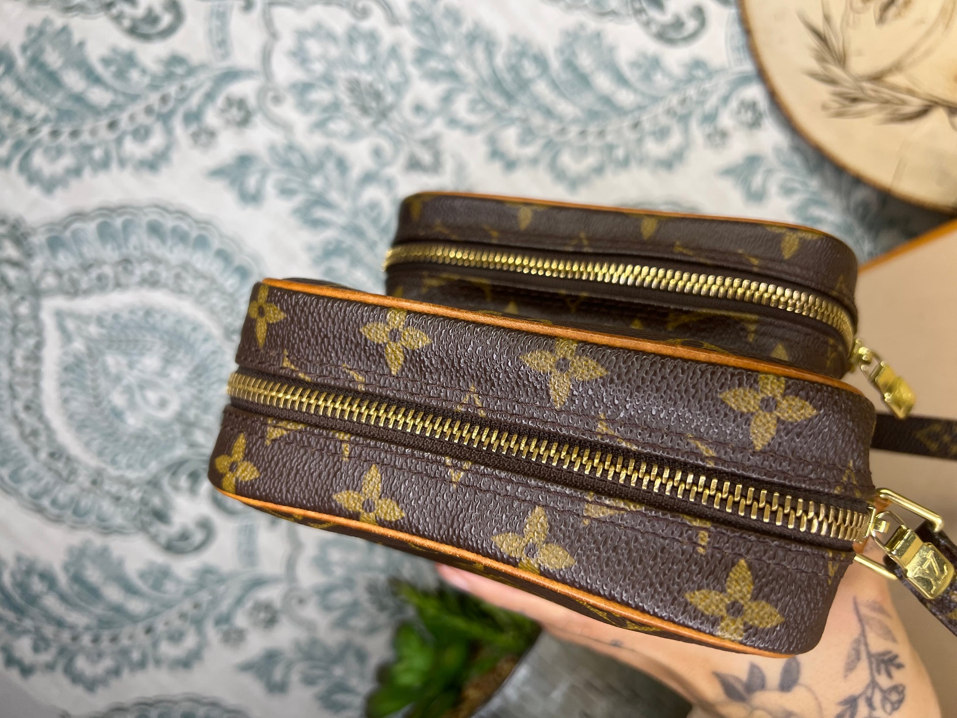🌸 Canvas is crack-free and in great shape. Monogram is bright and clear throughout