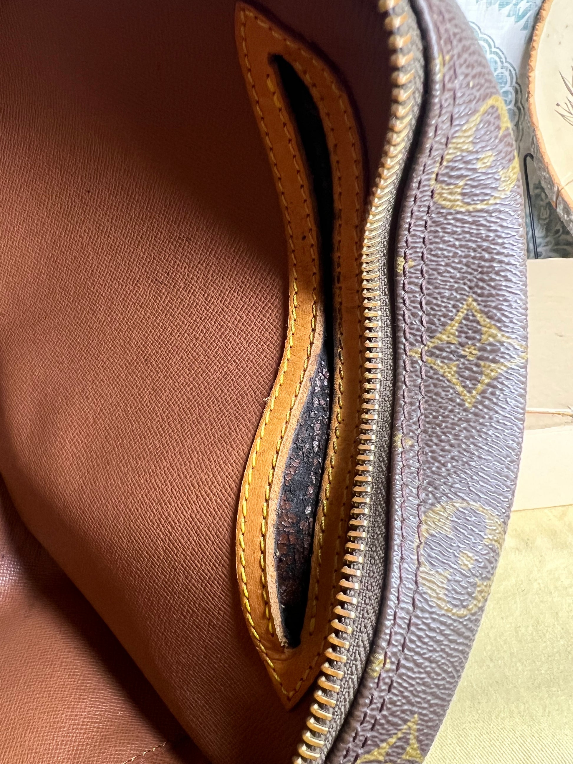 🌸 Exterior/interior slip pocket do have peeling. This can be cleaned out or relined. Main compartment has some black staining, but is overall clean and usable
