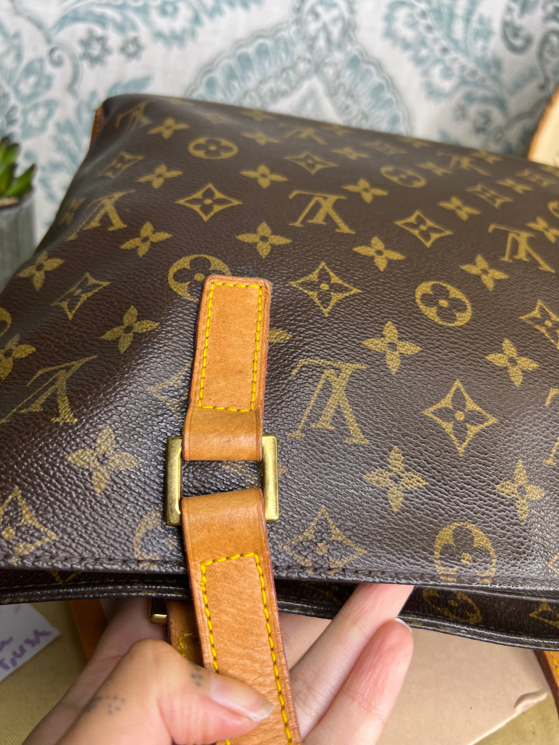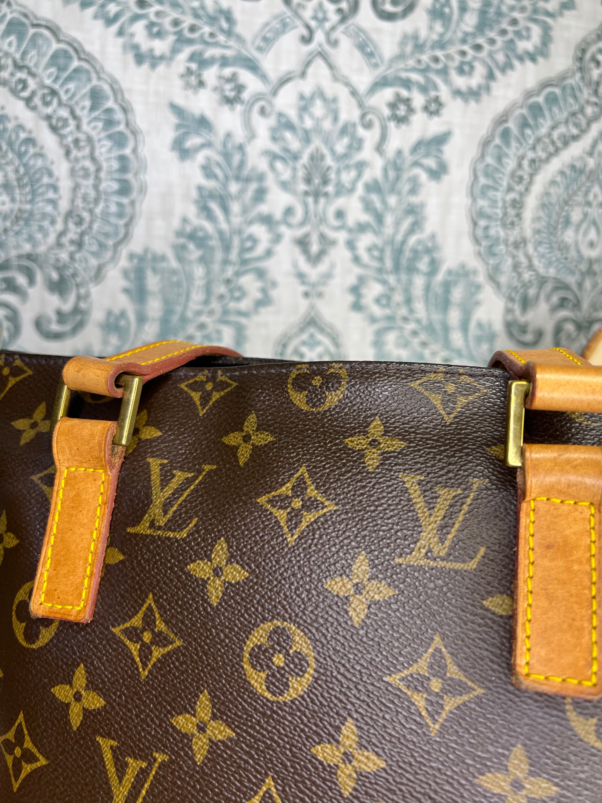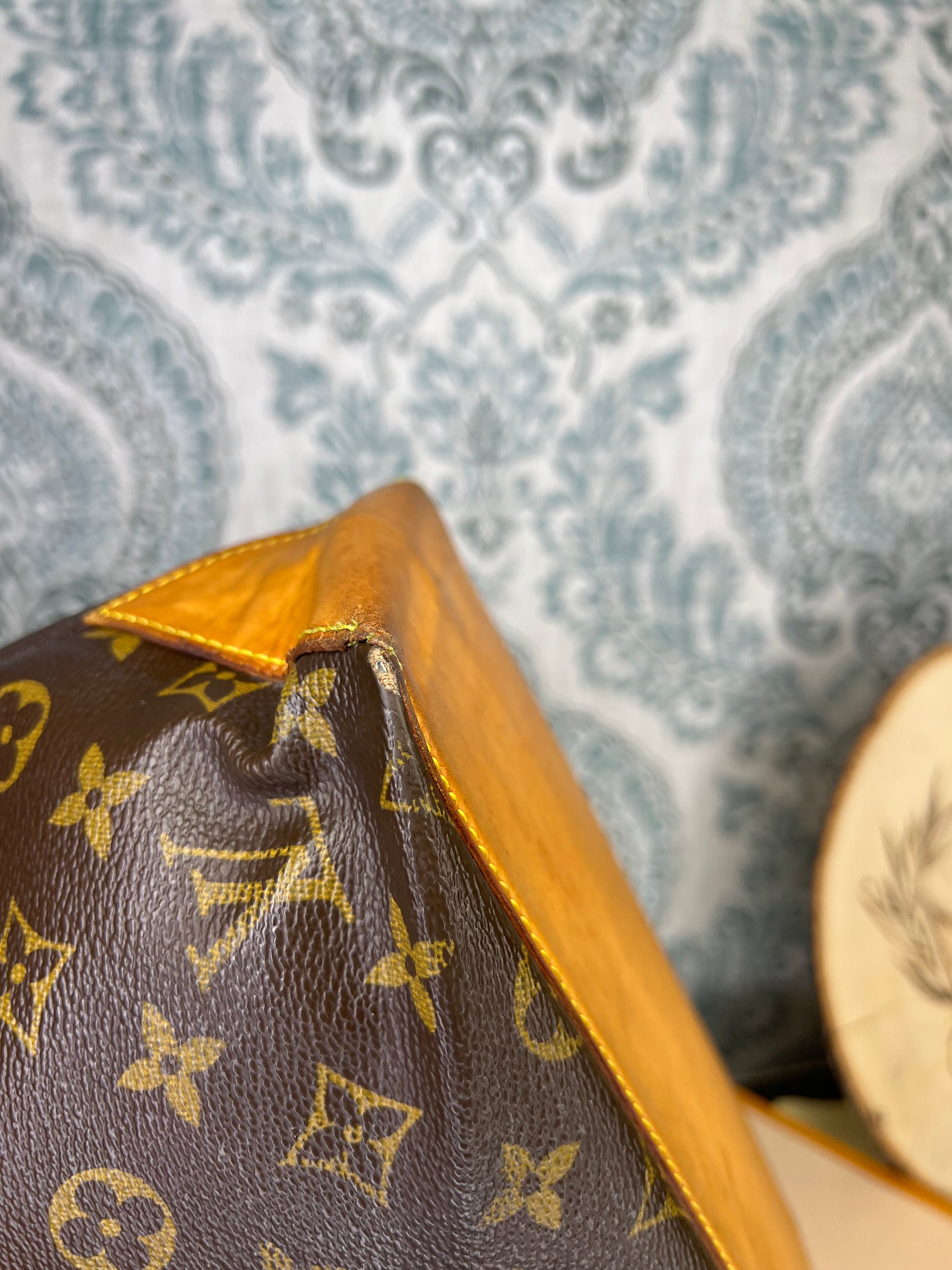 🌸 Base has stains and scuffing. Leather rubbing at corners. Handles have wrinkles, but are crack free and strong. There are waterstains on the straps and darkening towards the top. Chaps are sturdy.