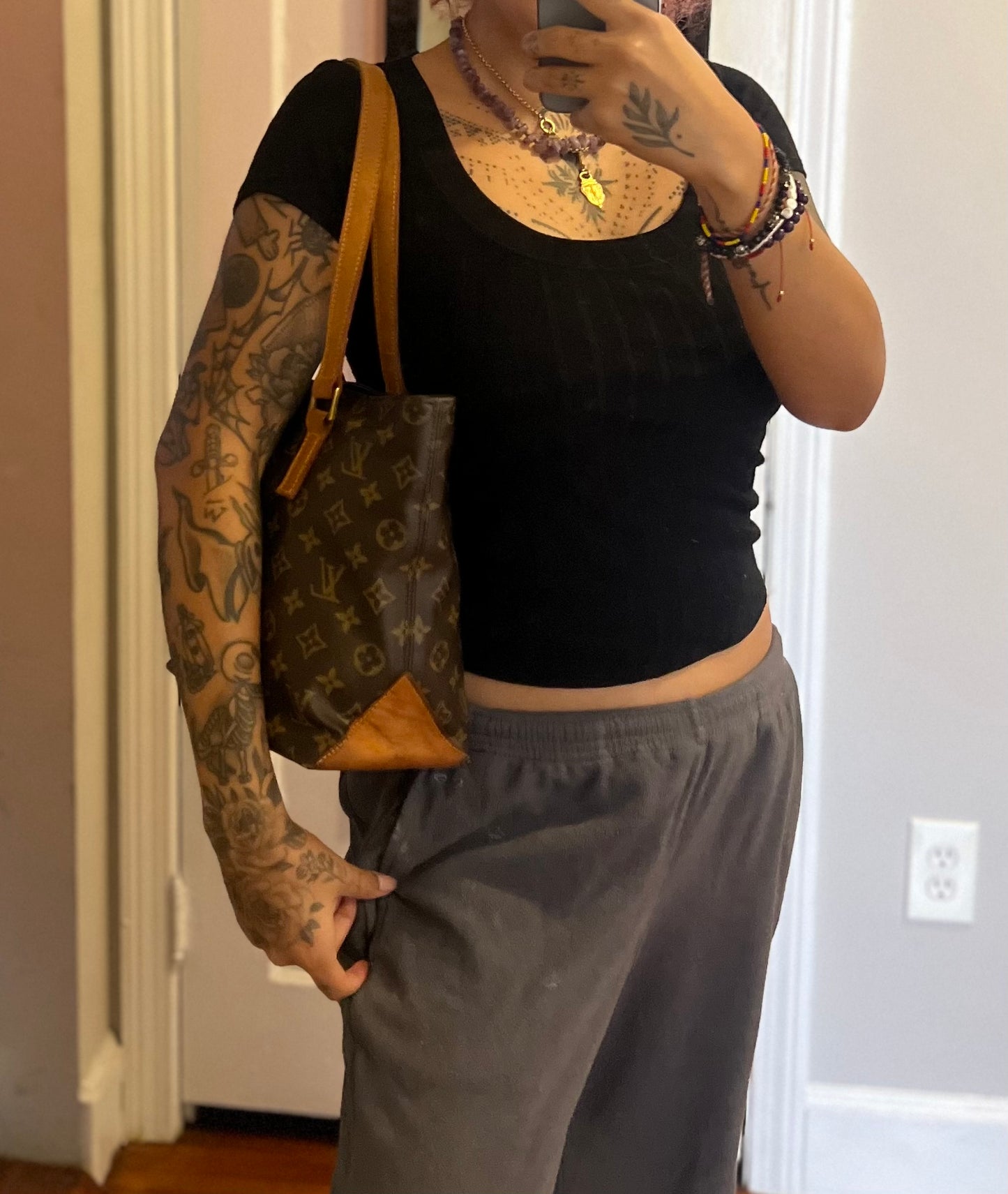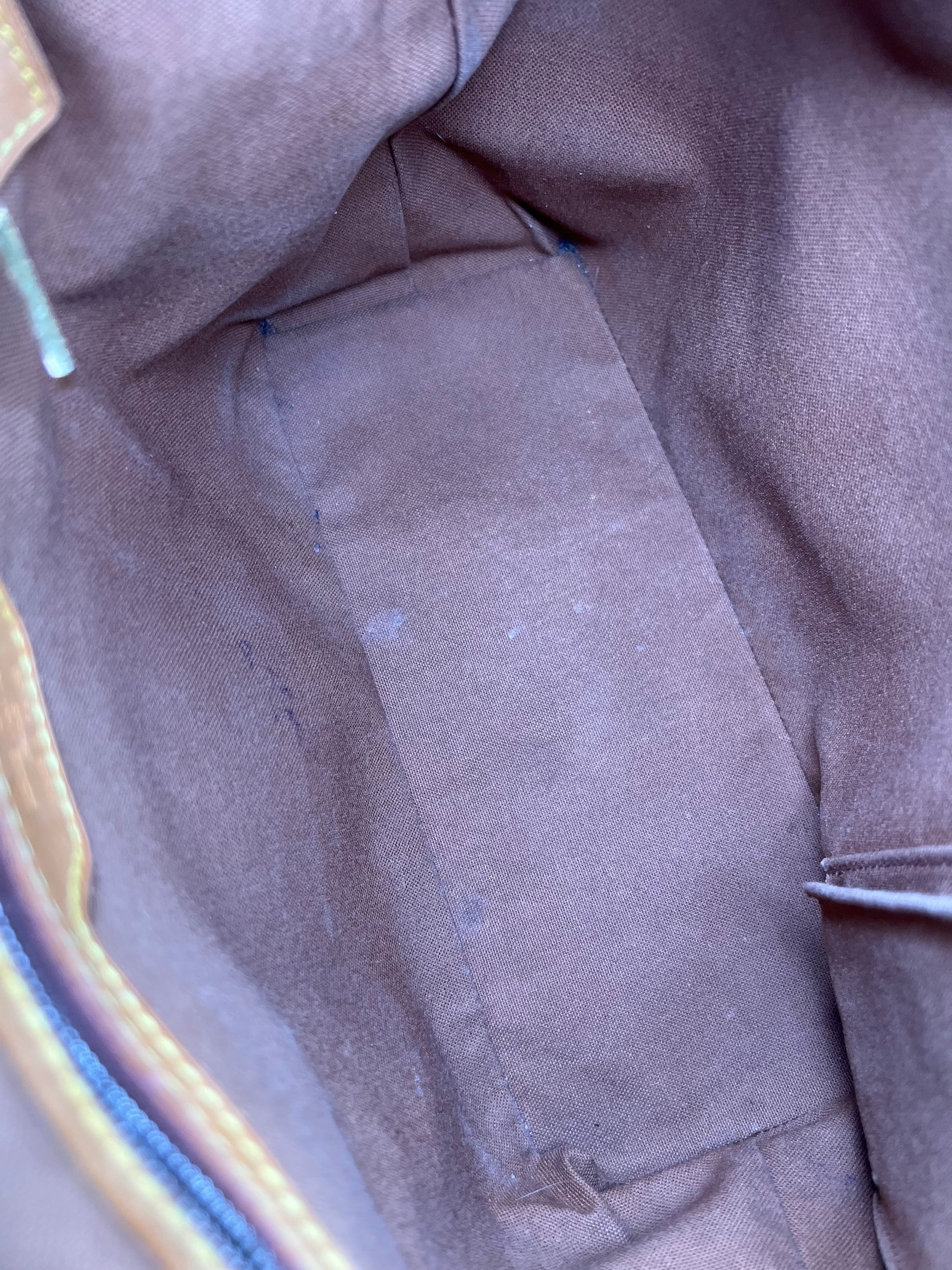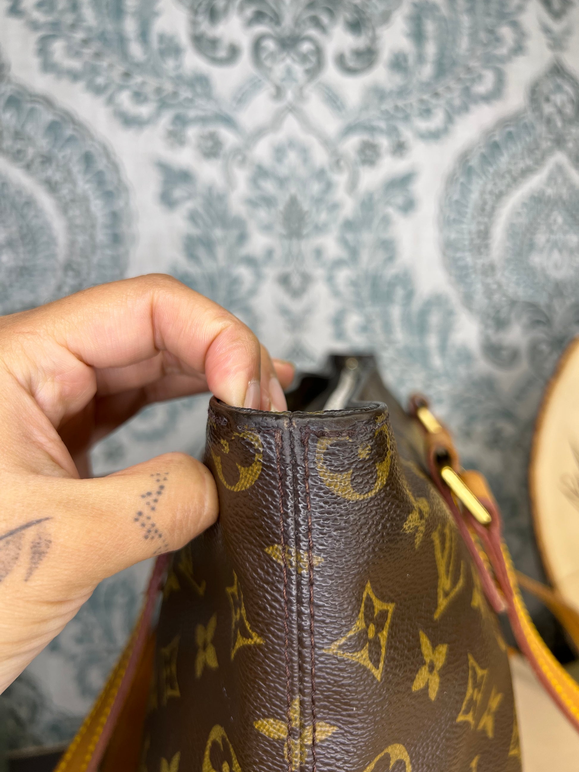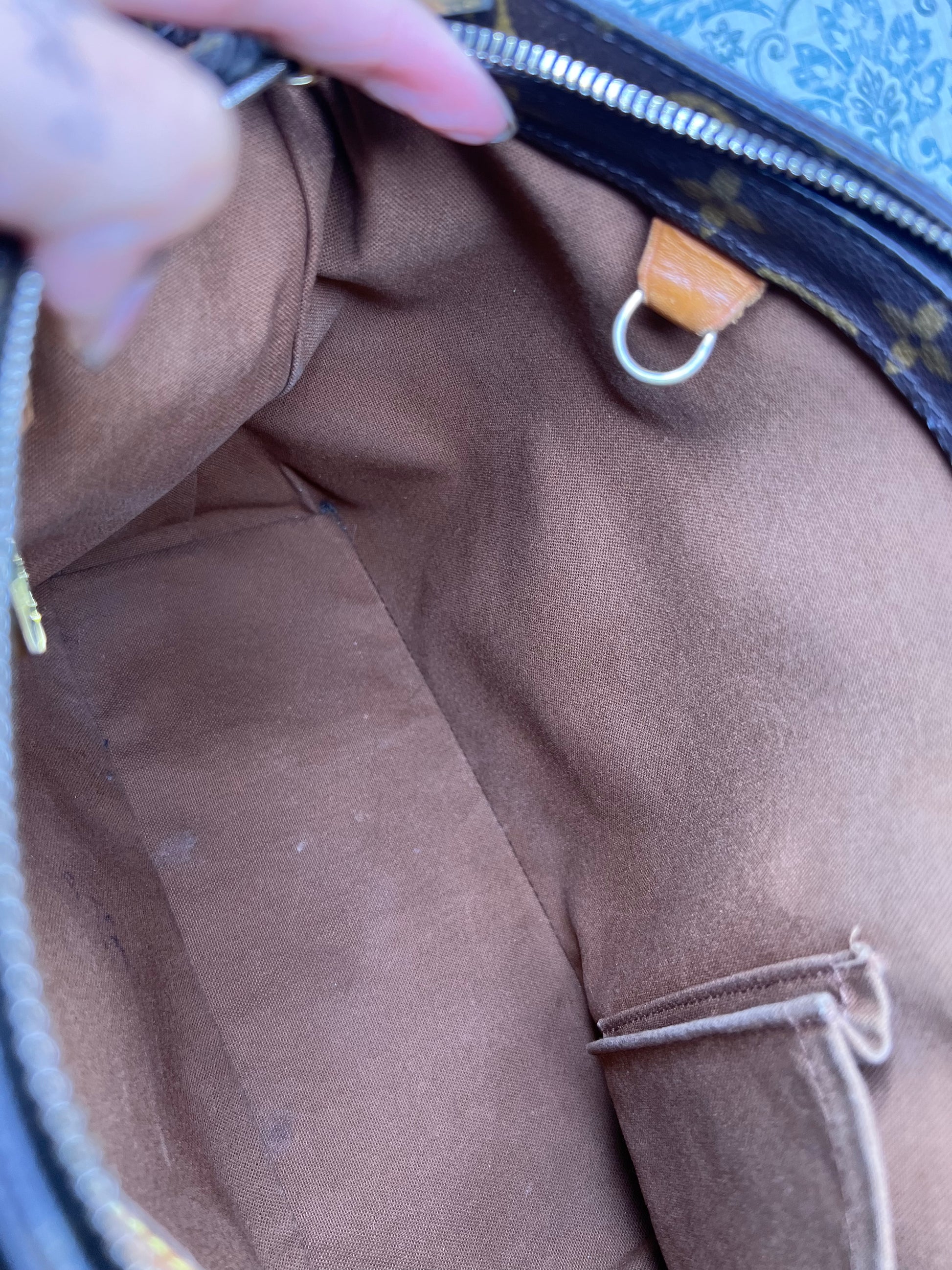 🌸 Base has stains and scuffing. Leather rubbing at corners. Handles have wrinkles, but are crack free and strong. There are waterstains on the straps and darkening towards the top. Chaps are sturdy.