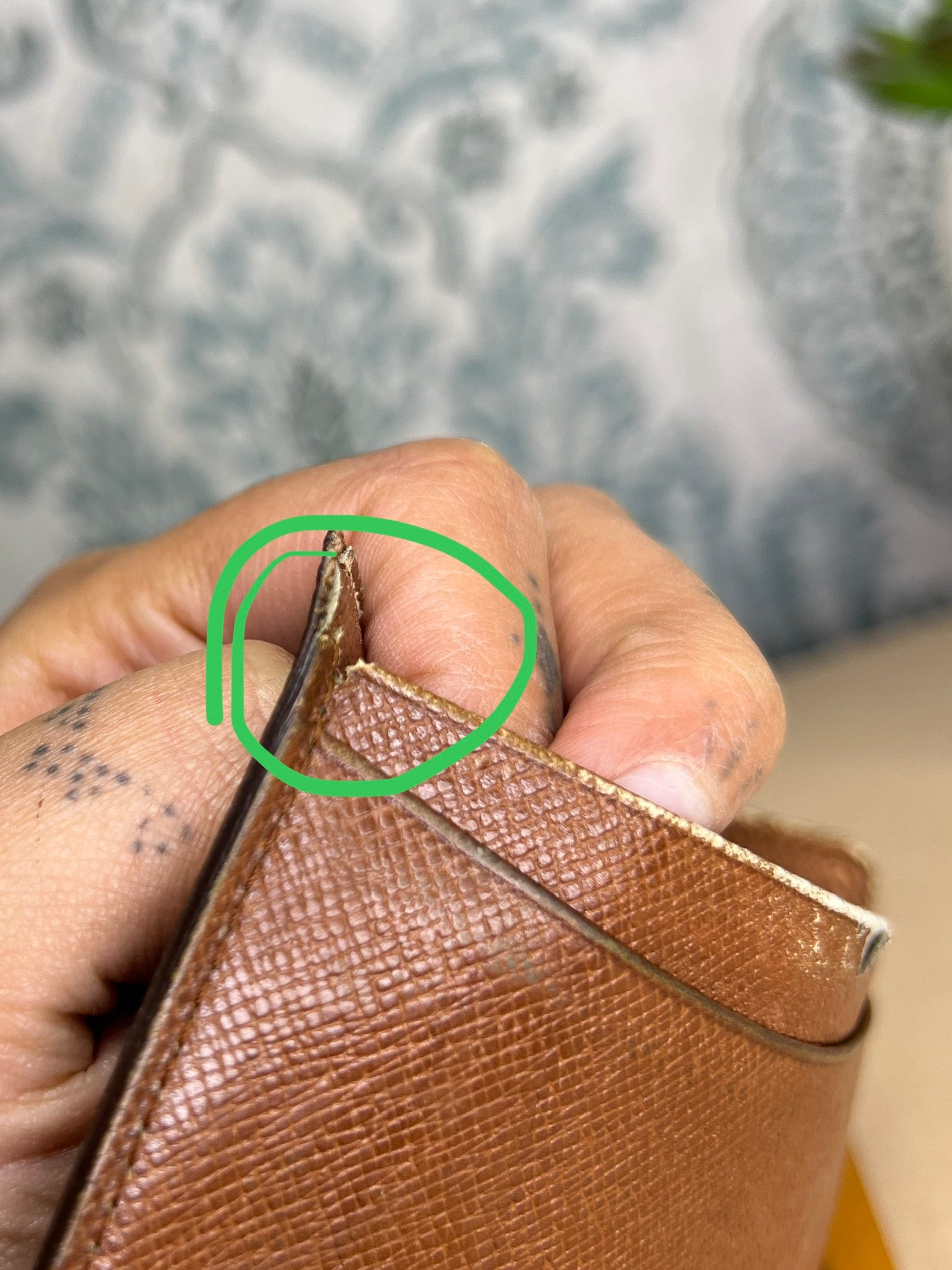 🌸 Leather has scuffing and small tears present. Pockets are free from stickiness or peeling