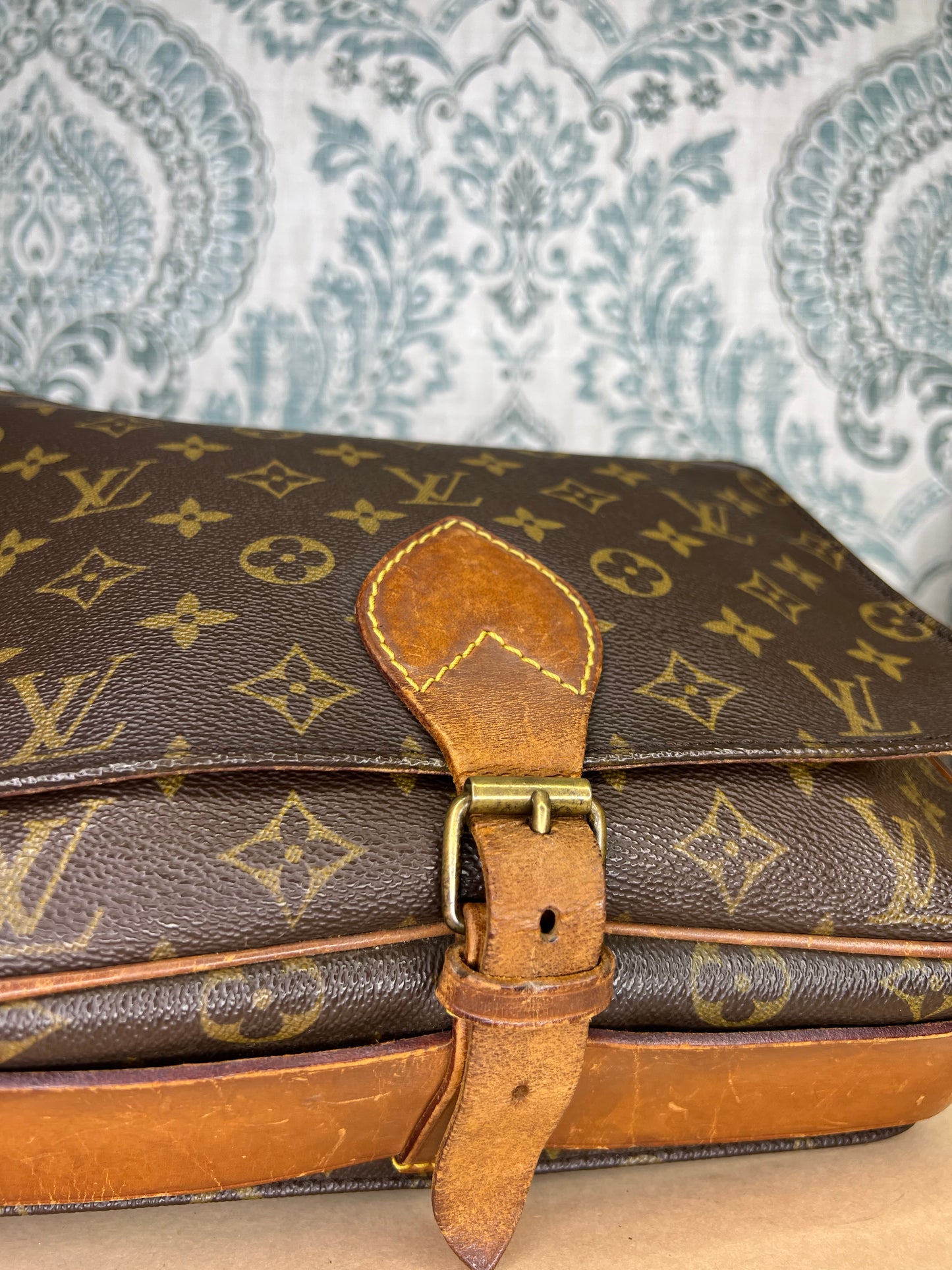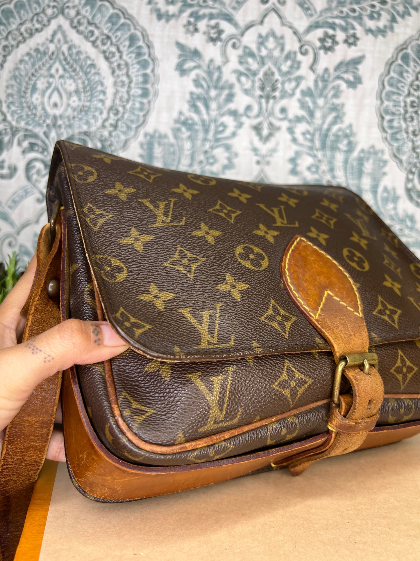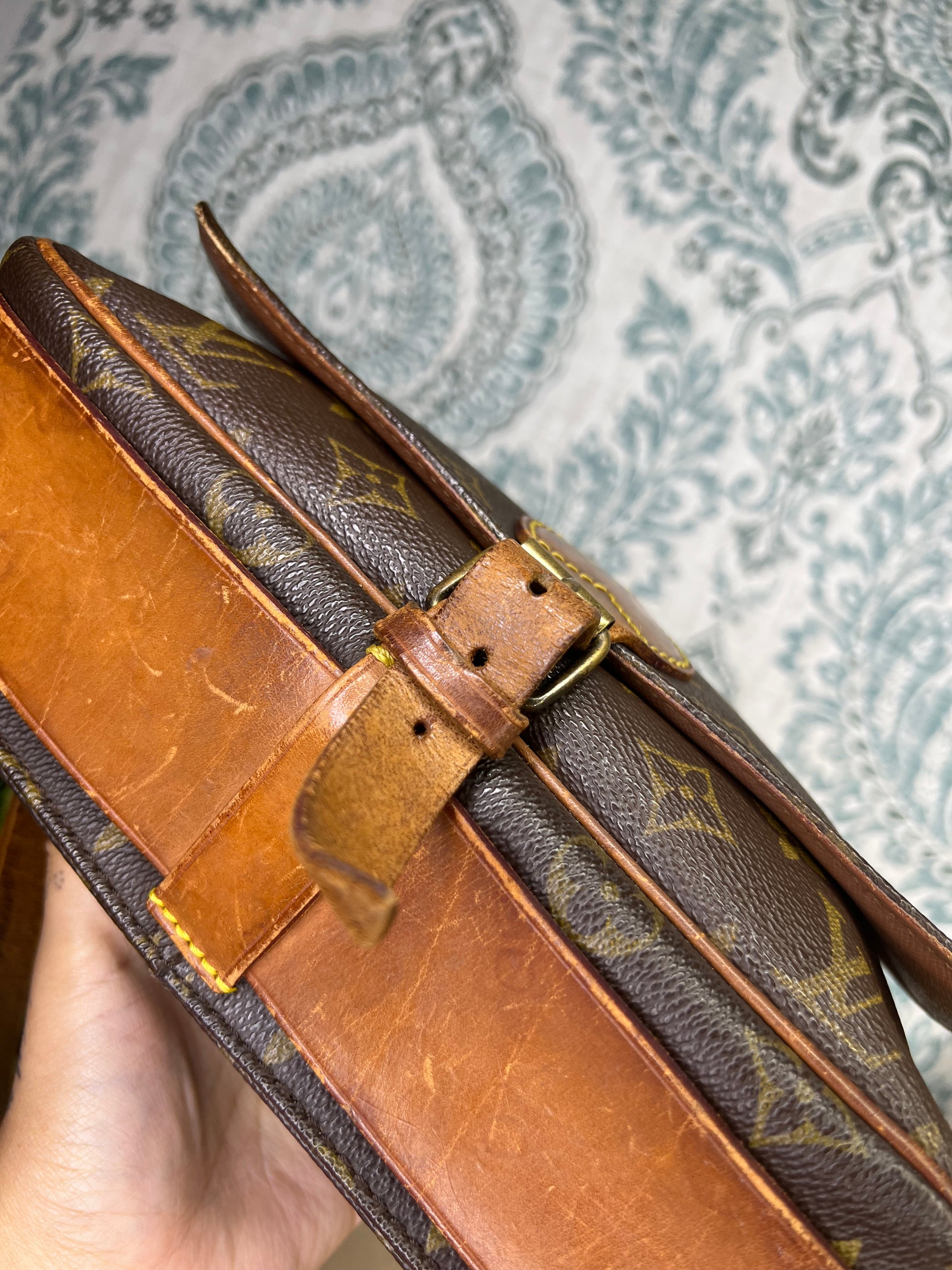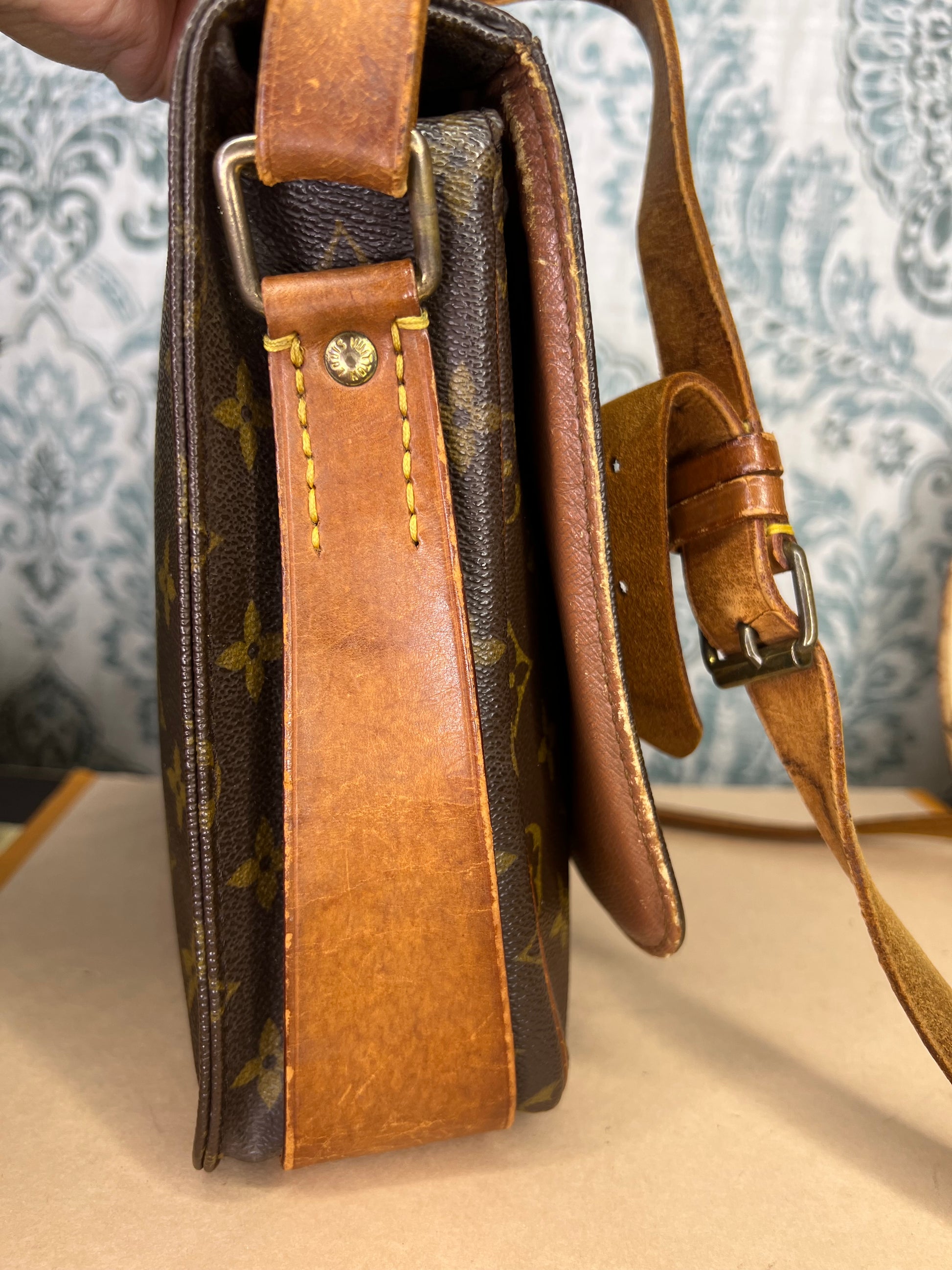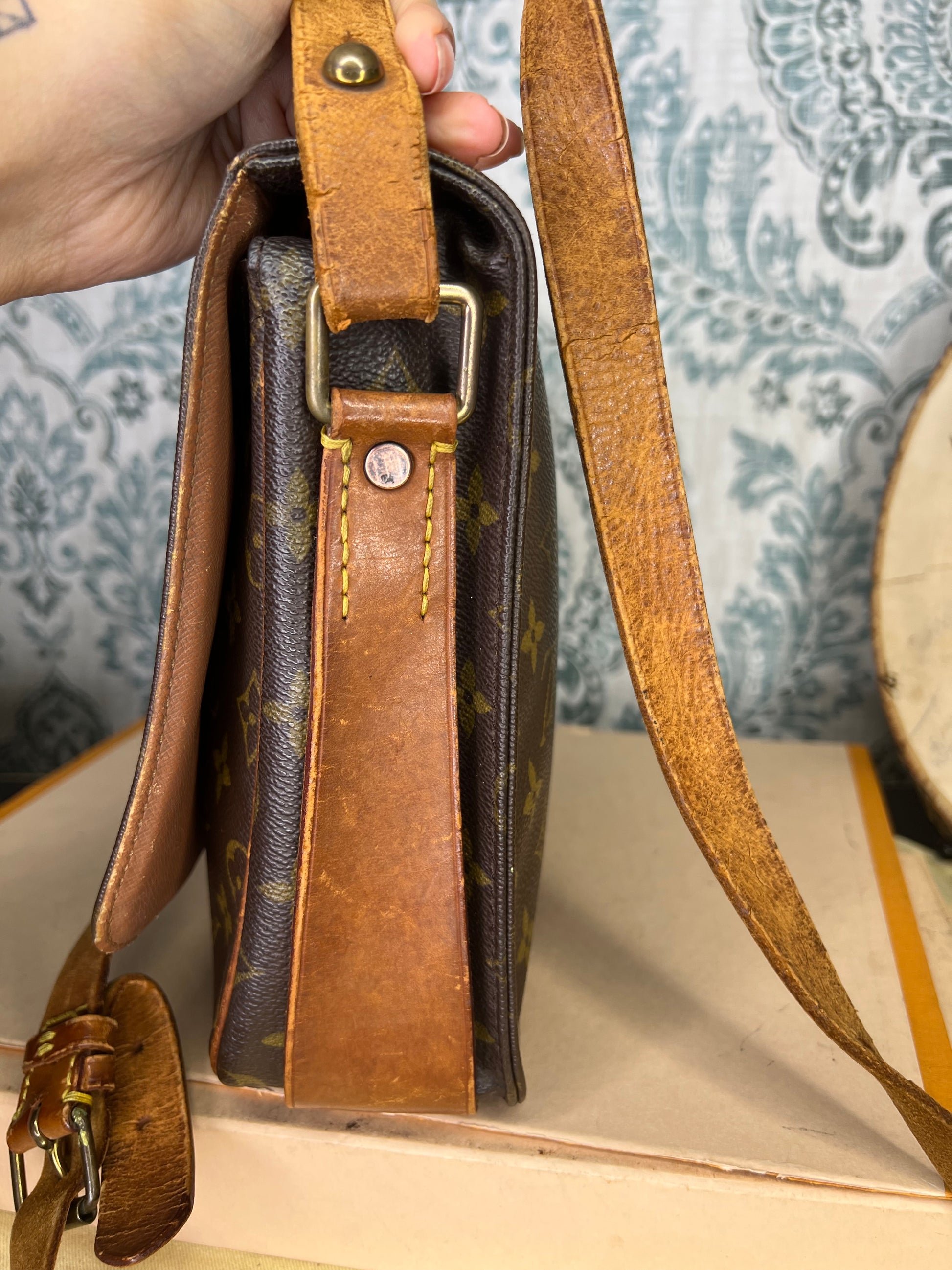 🌸 Strap is worn and cracked, there’s still life to it but it does have heavy wear. Vachetta on the body of the bag has scuffing and cracking. Buckle piece has rubs, but is intact. Piping has rubs, but is is intact, no exposed areas