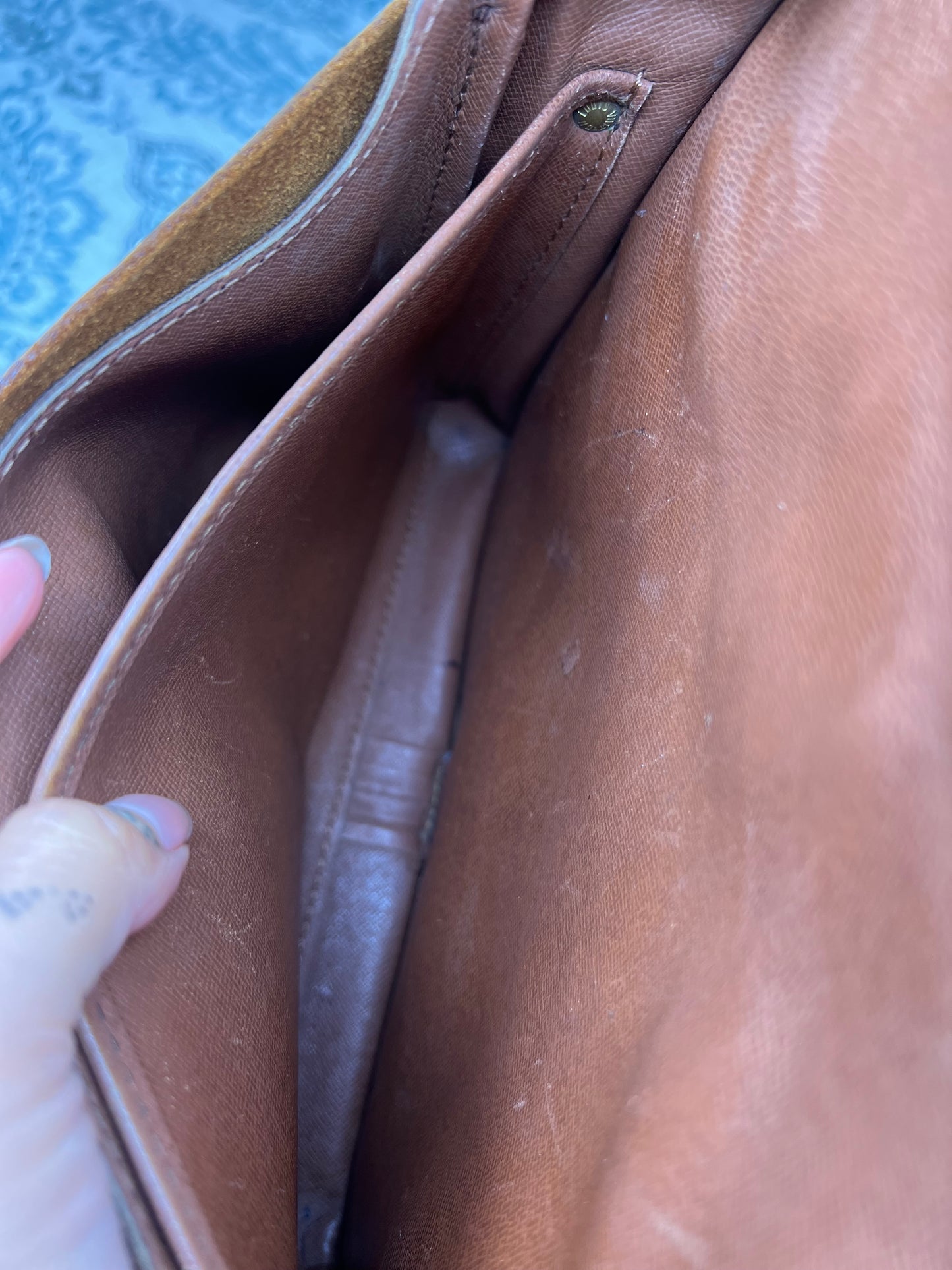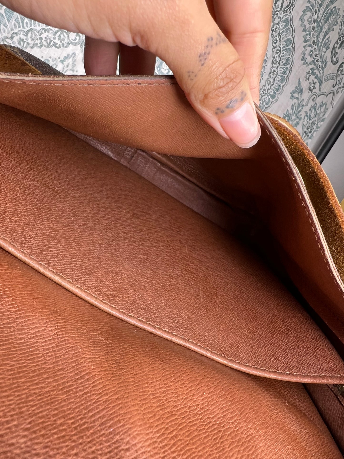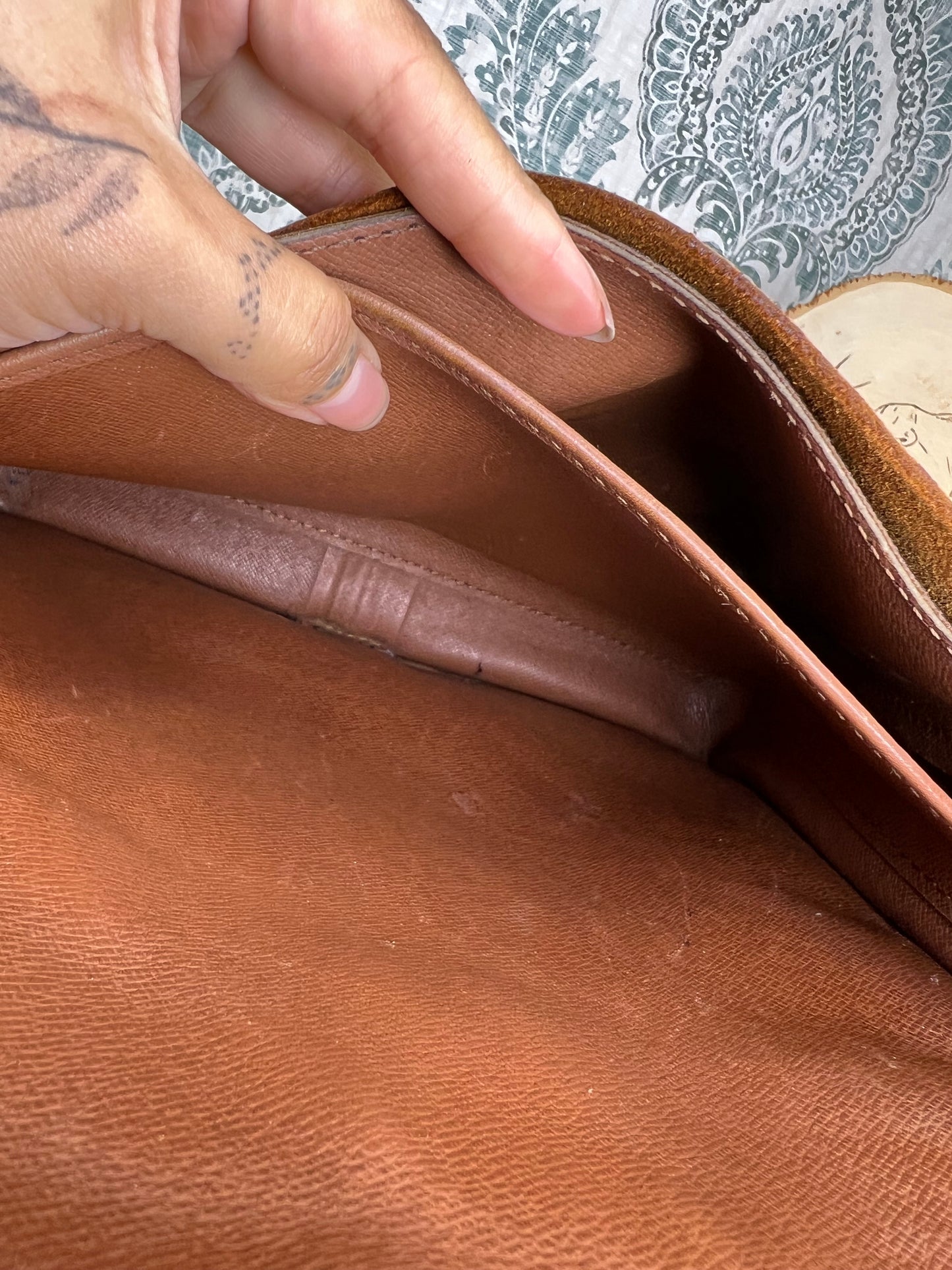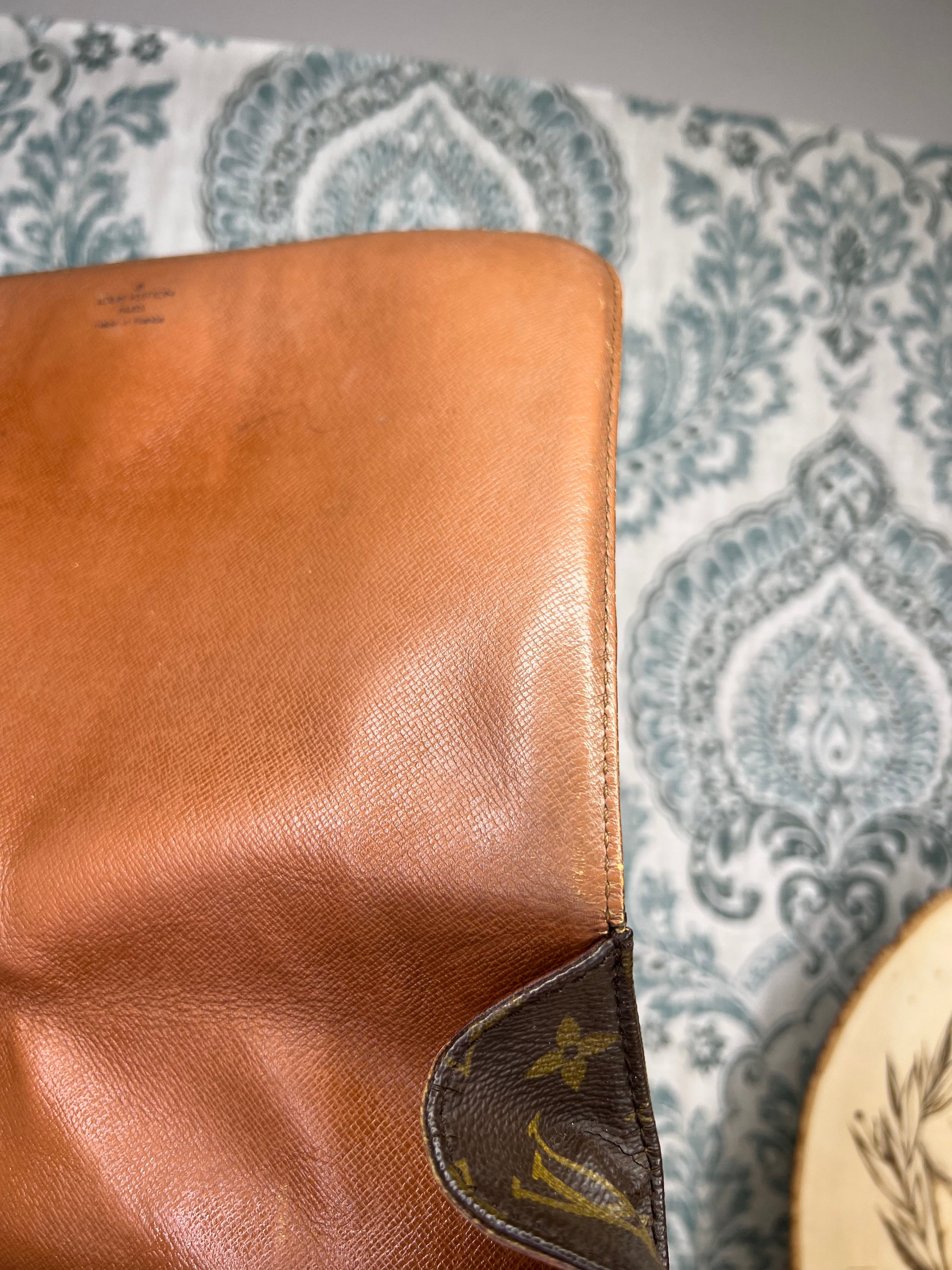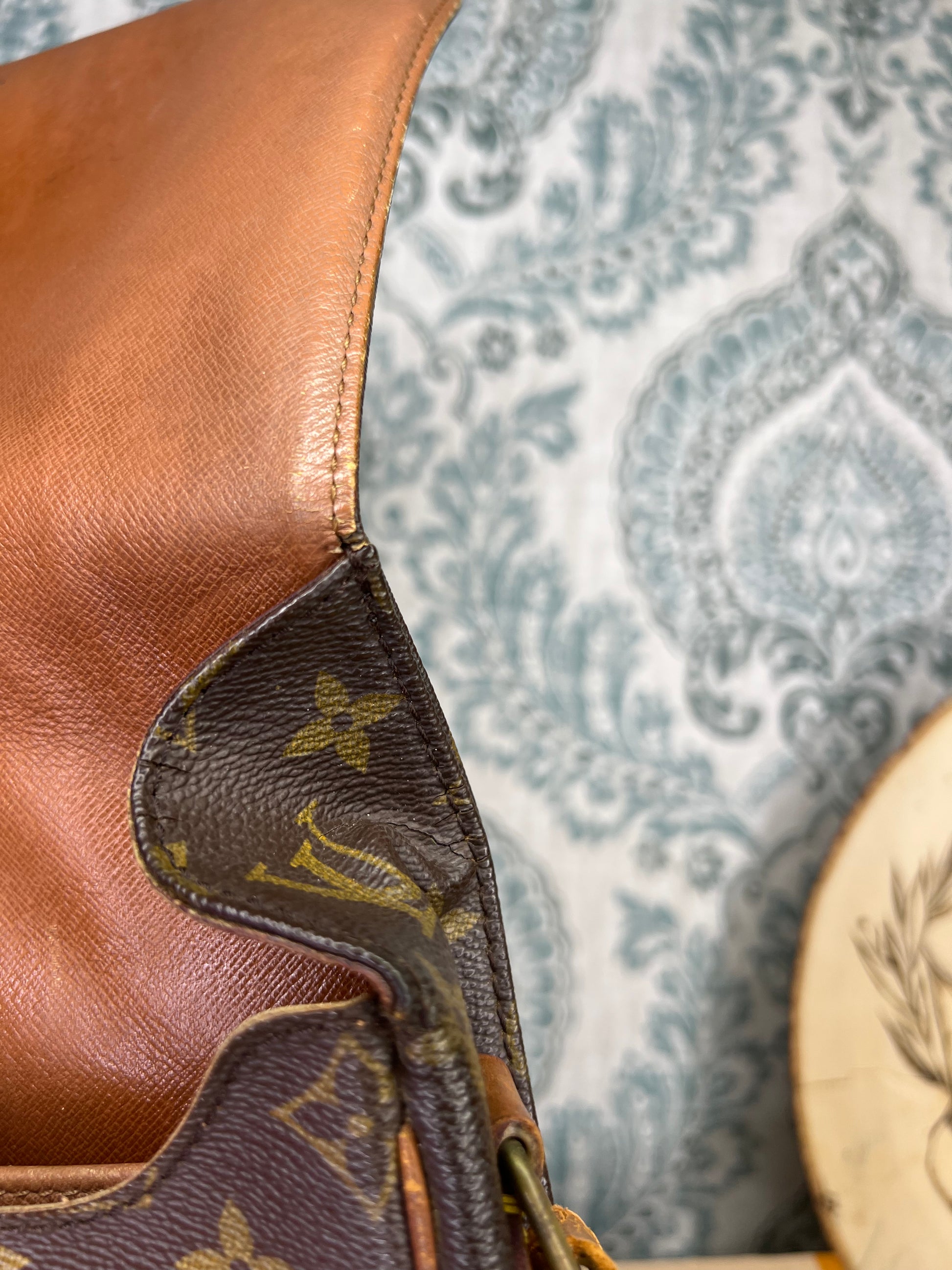 🌸 Canvas has chipping at top edge corners of the front flap. There’s also some hidden cracking on the interior folds of the bag