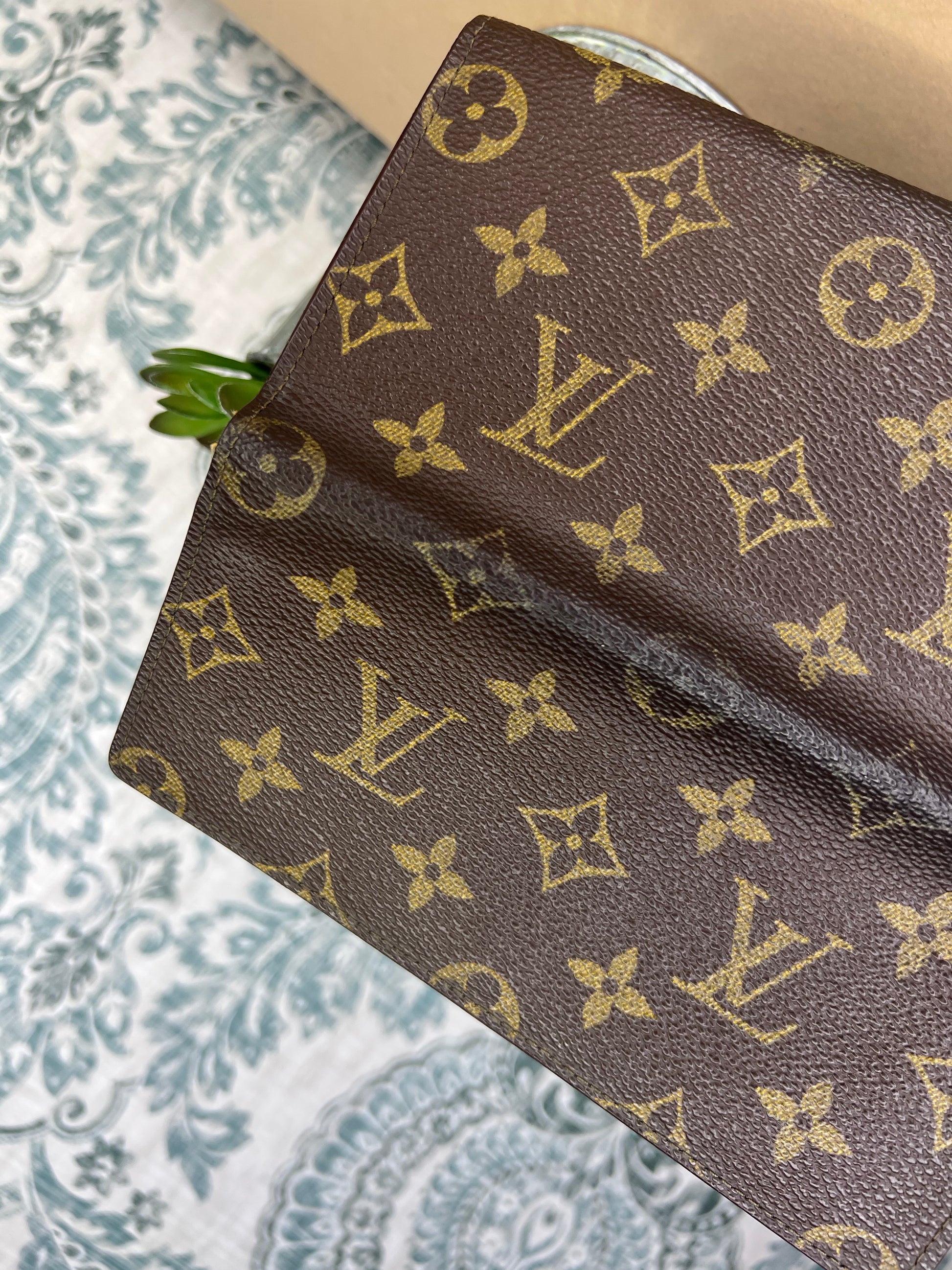 🌸 Canvas has minor wear at edge corners. No obvious canvas damage. There is popped stitching present causing separation. Monogram does have areas with fading