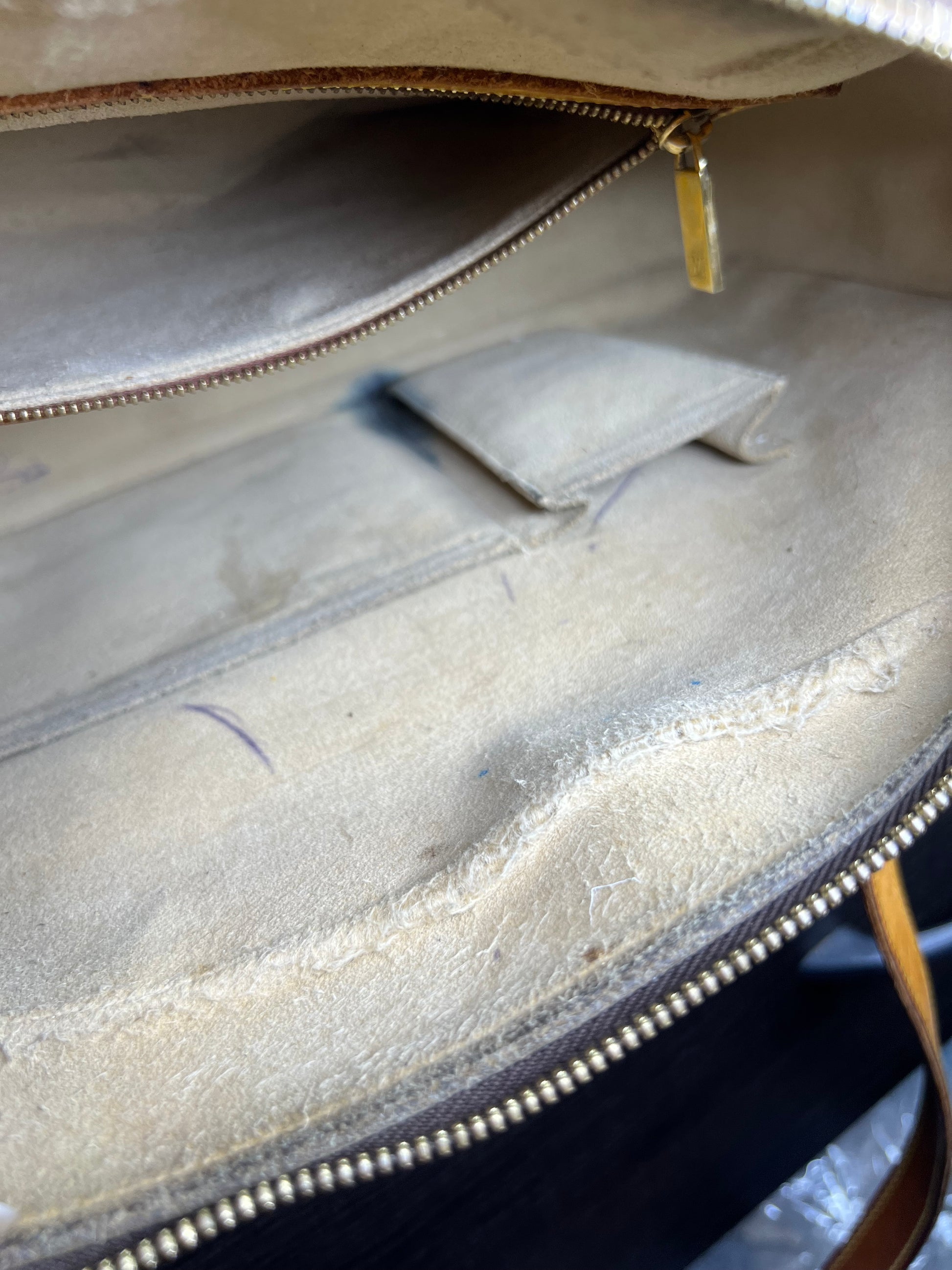 šø Interior has staining and heavier wear. Lining has some frays, but no torn areas or holes. An insert/organizer can be used to protect interior or cover flaws
