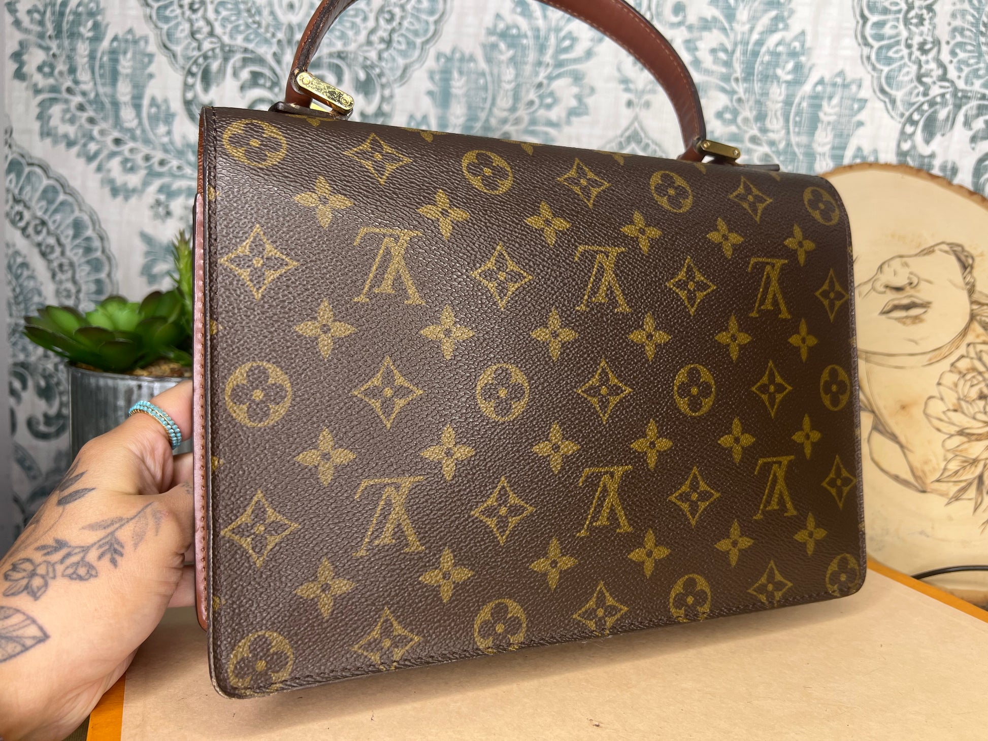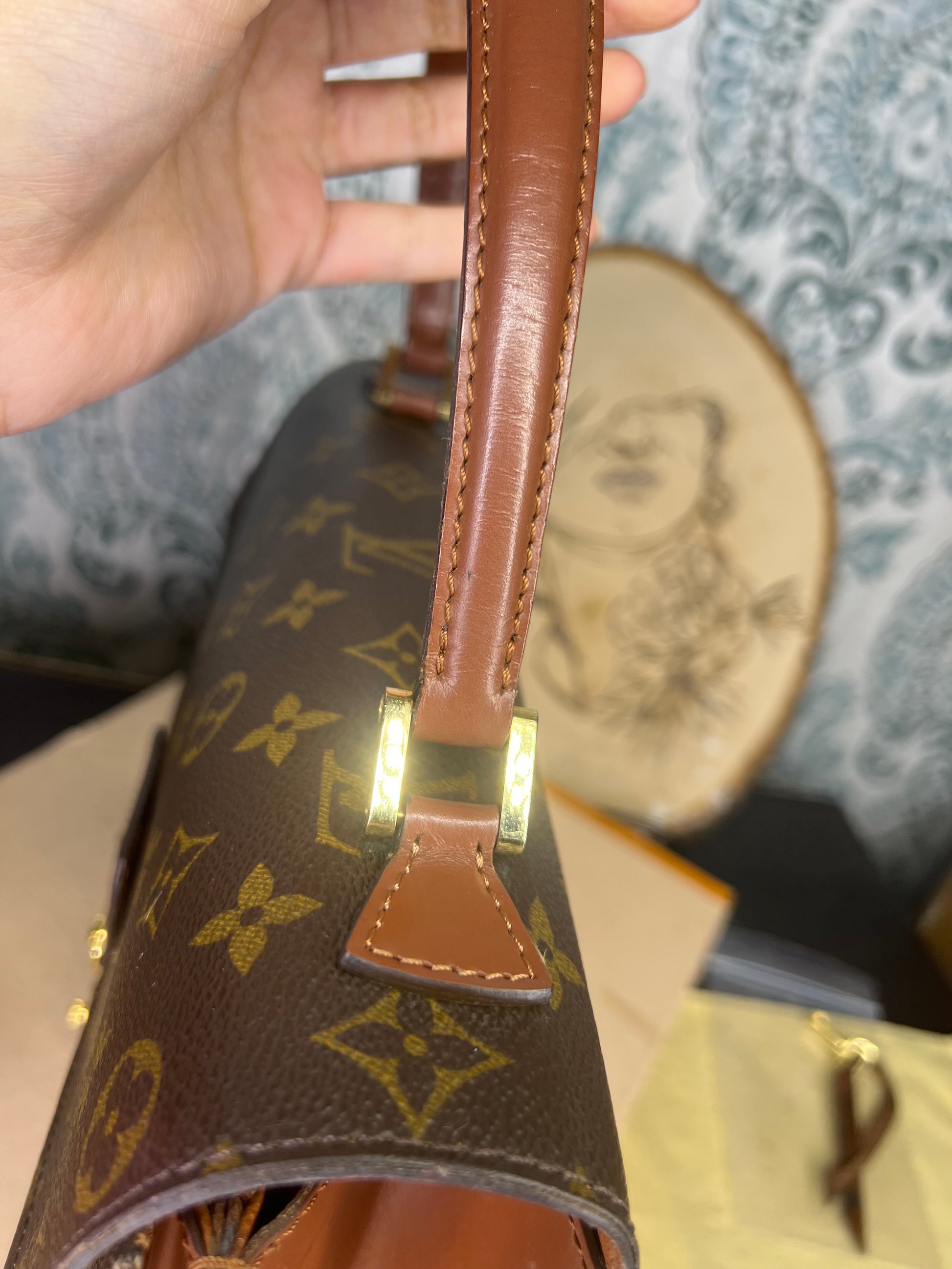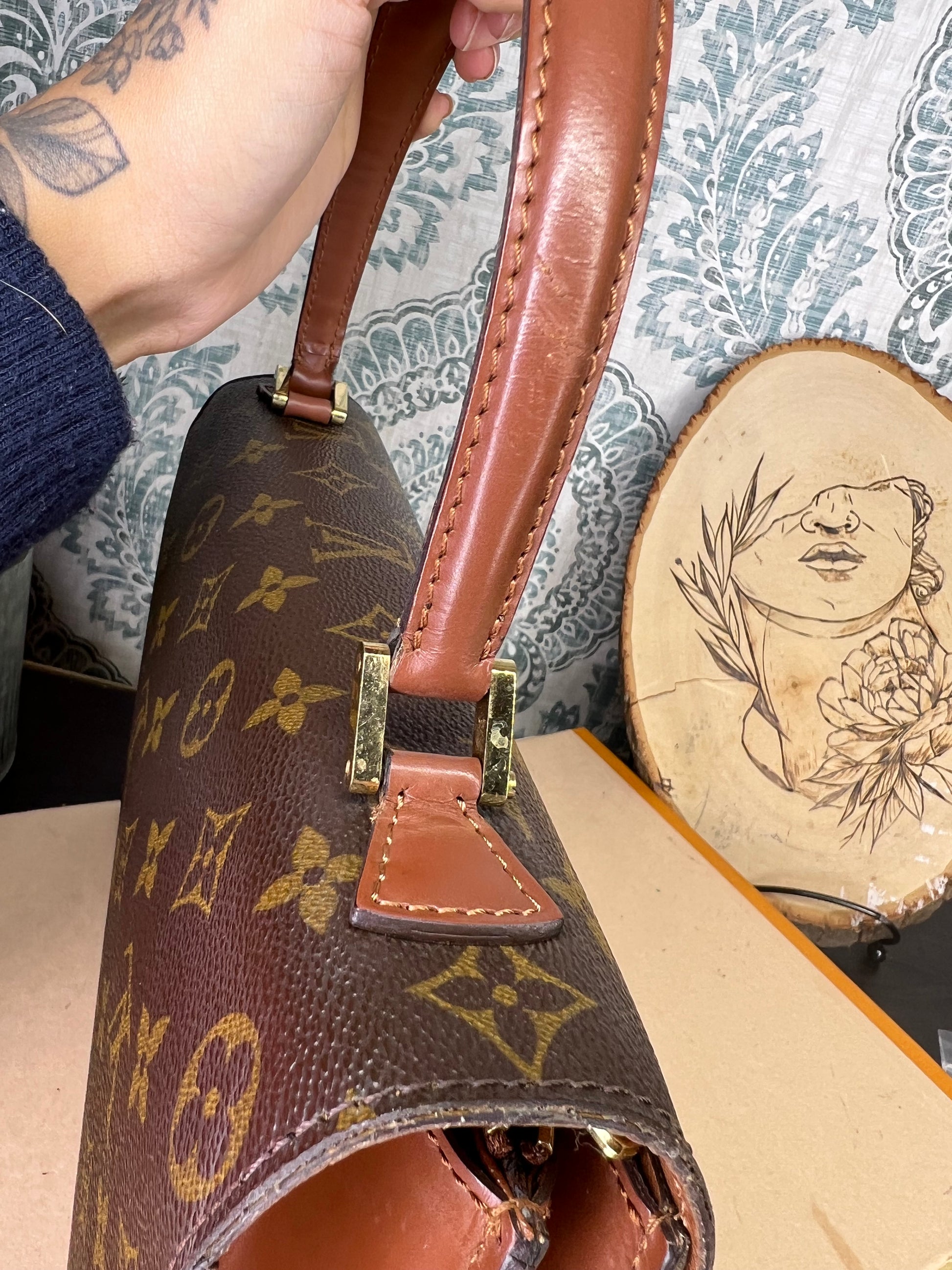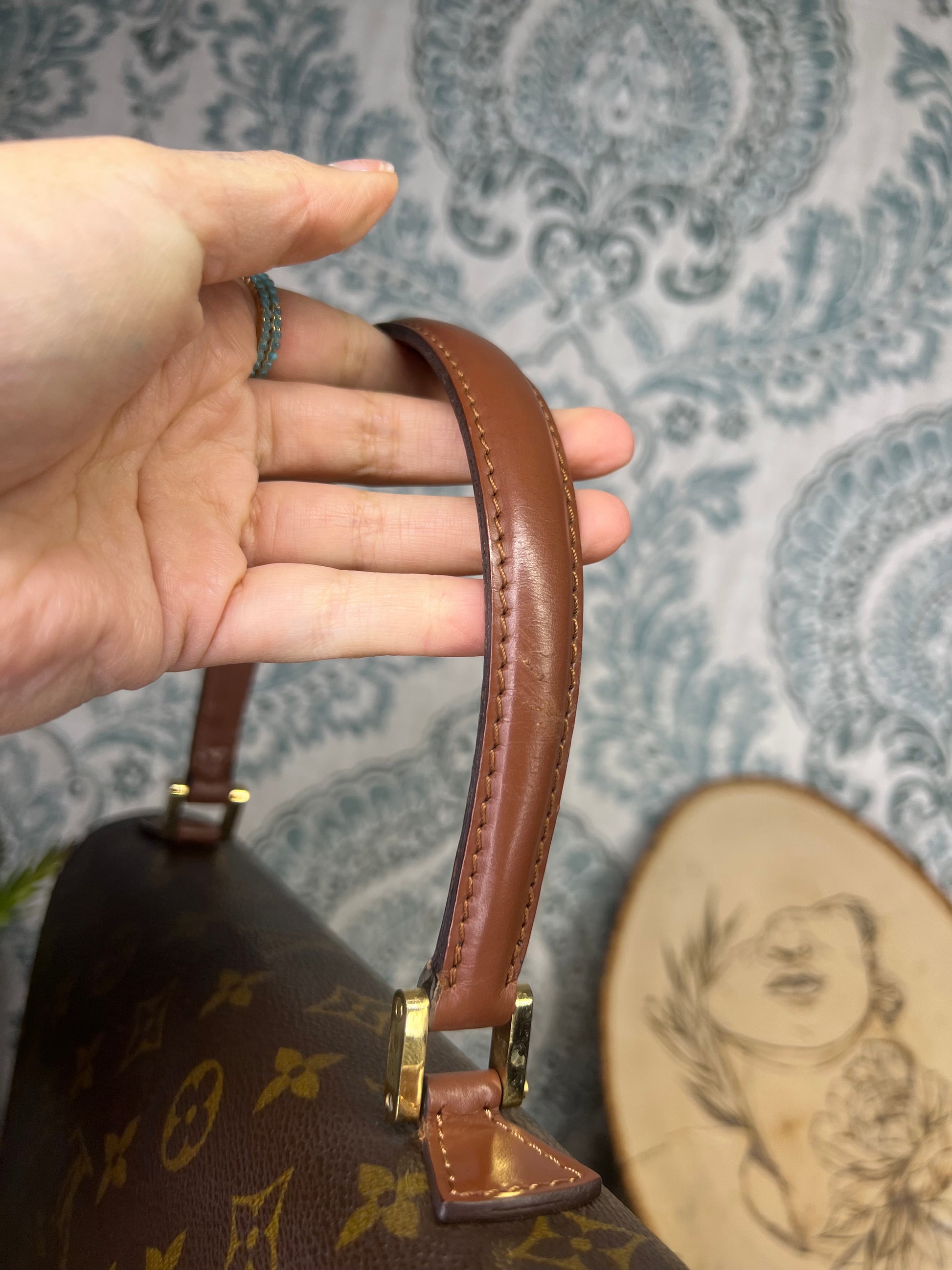 🌸 Canvas is crack free. Monogram is in good shape