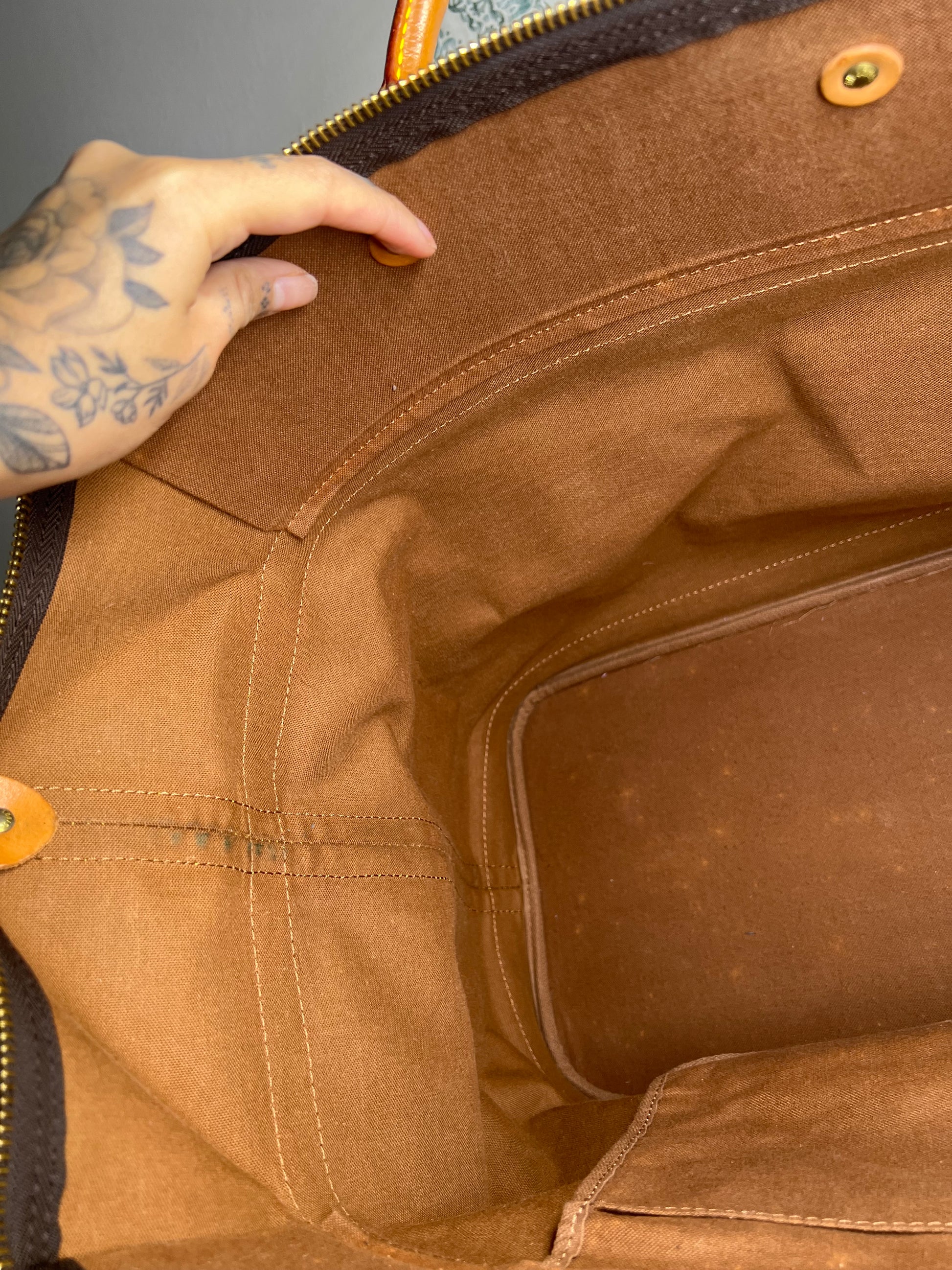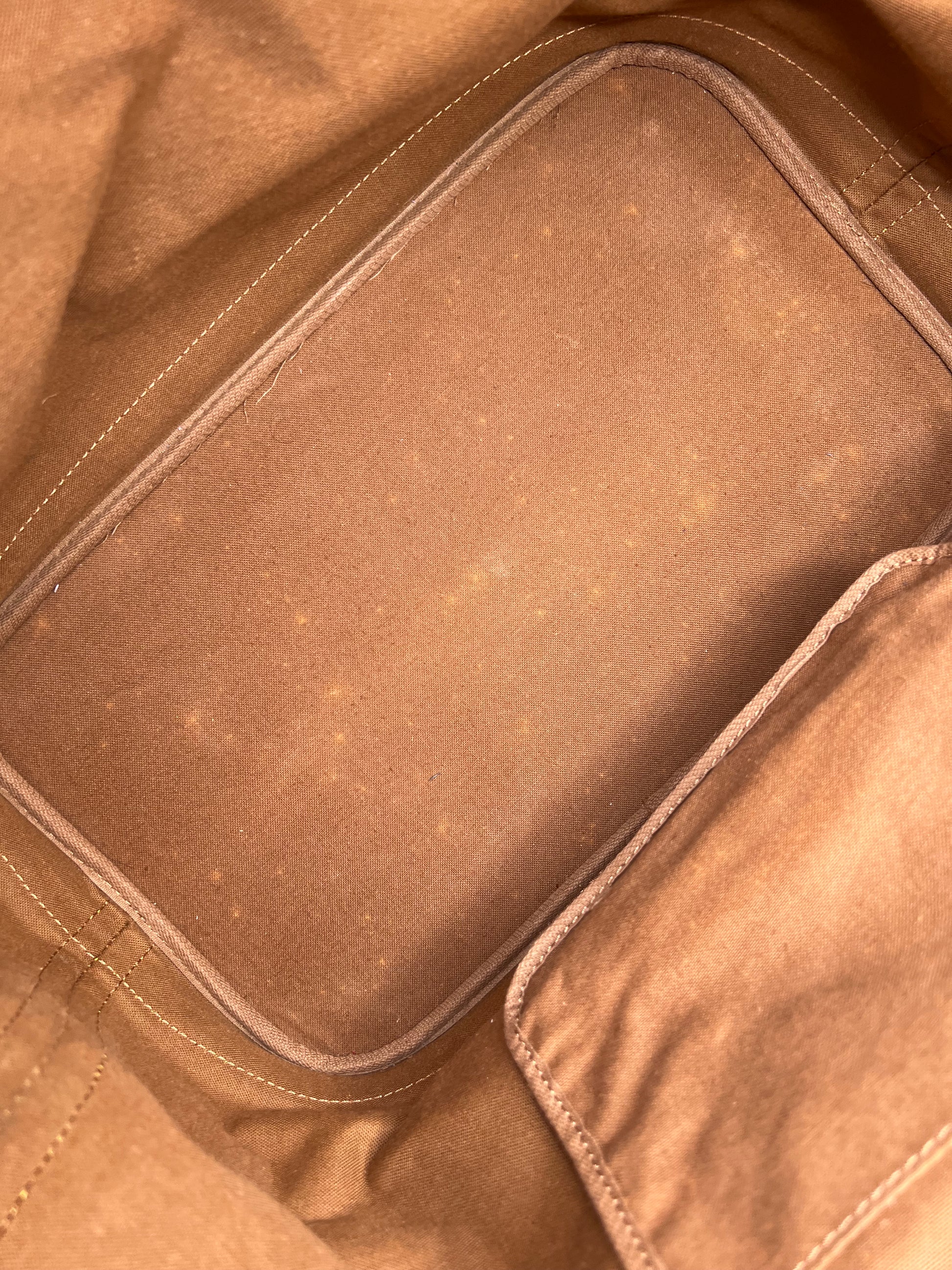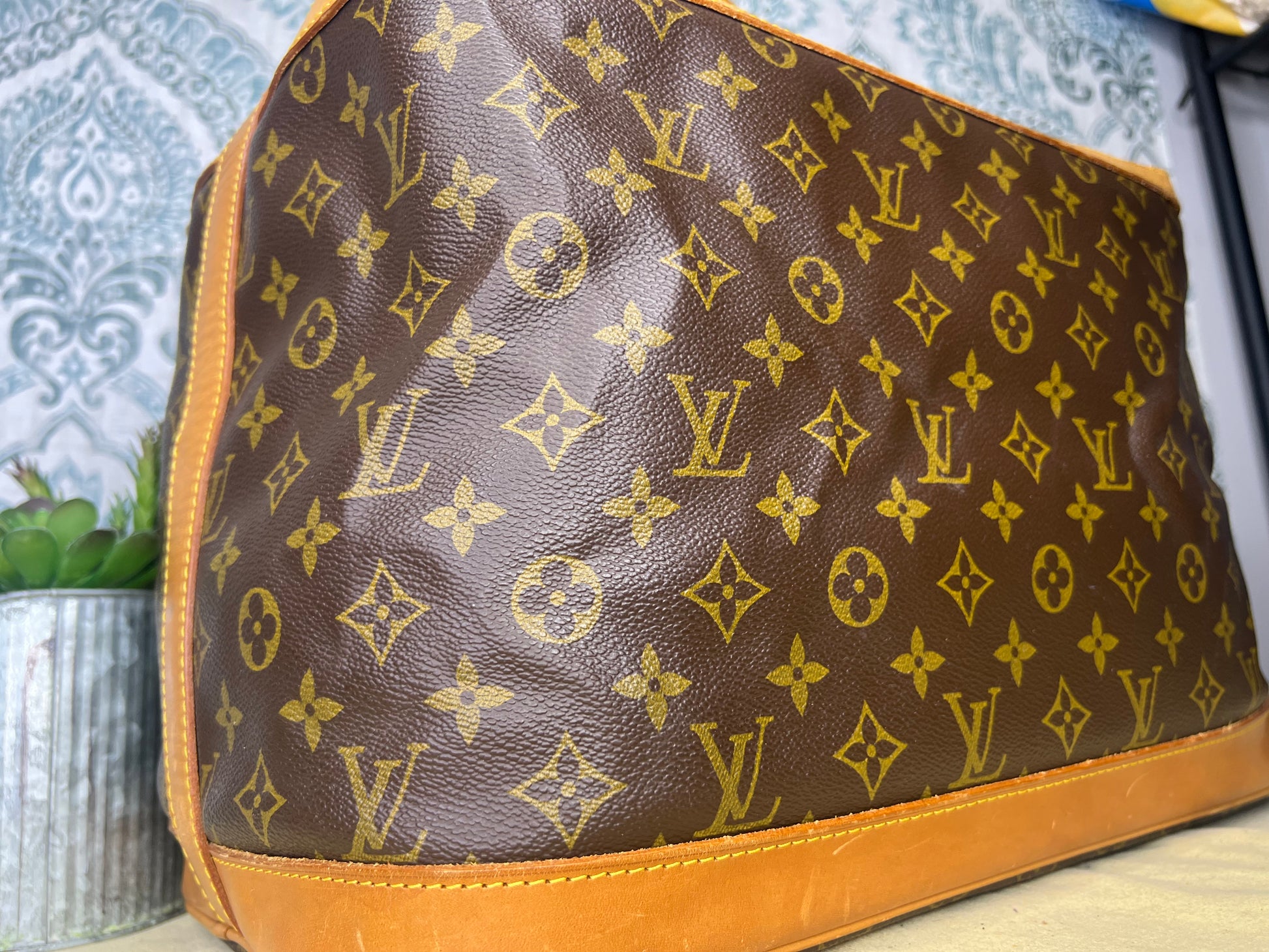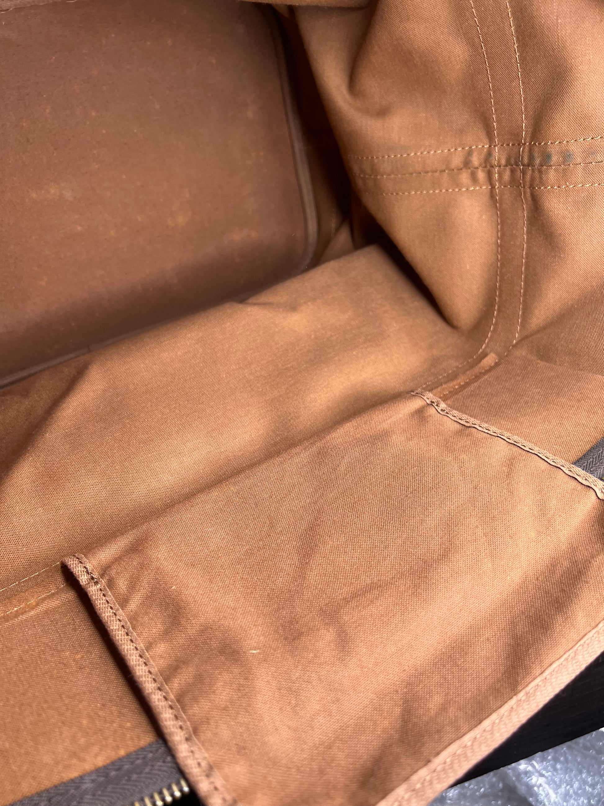 🌸 Canvas has some cracking towards top zipper where the bag folds. No large missing pieces of canvas. Canvas is overall in great shape. Monogram is very bright and clear.