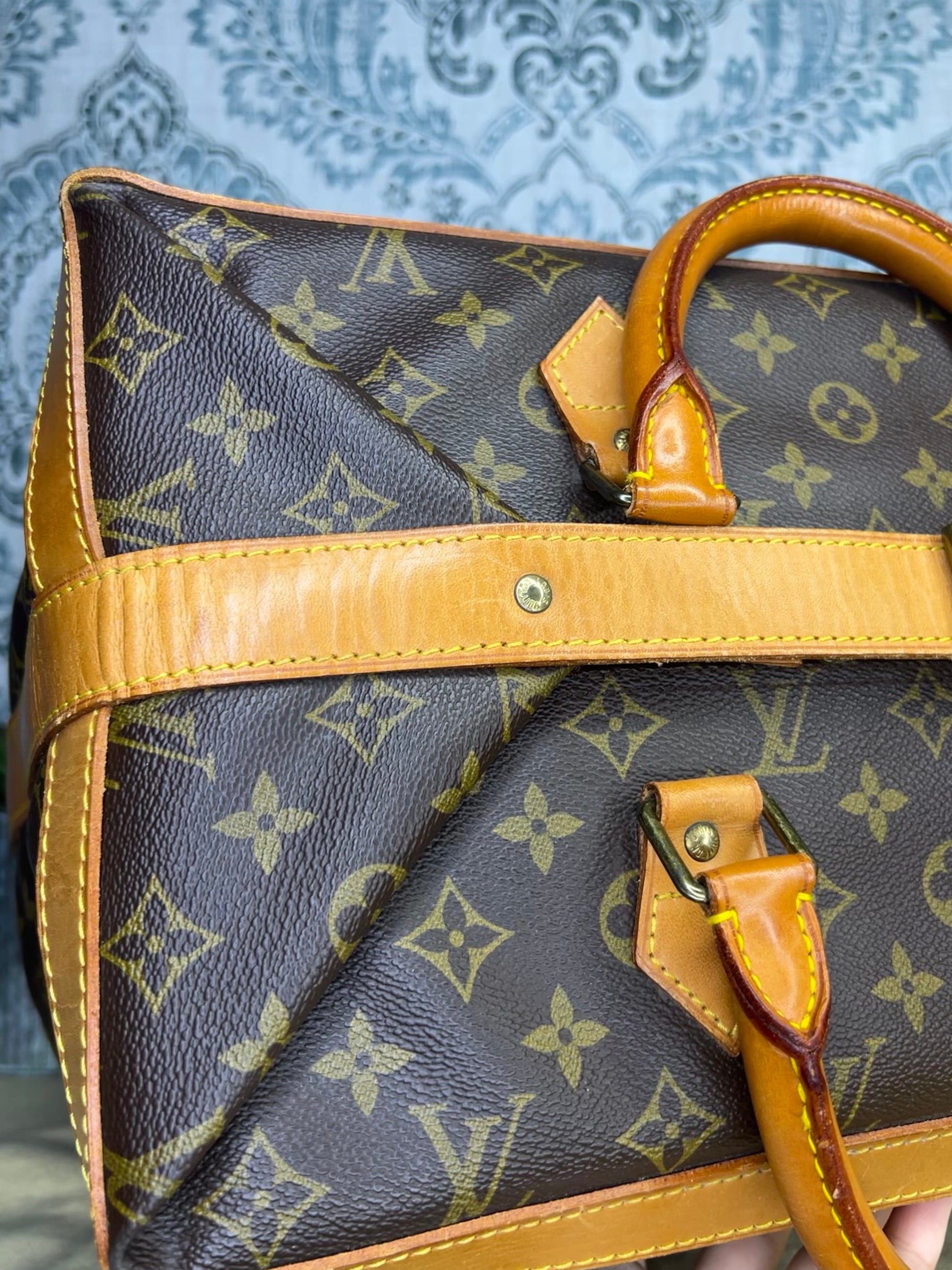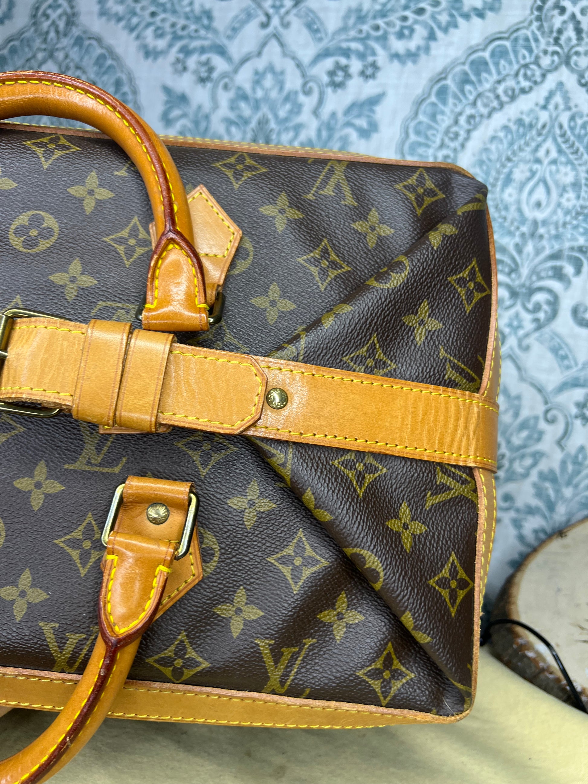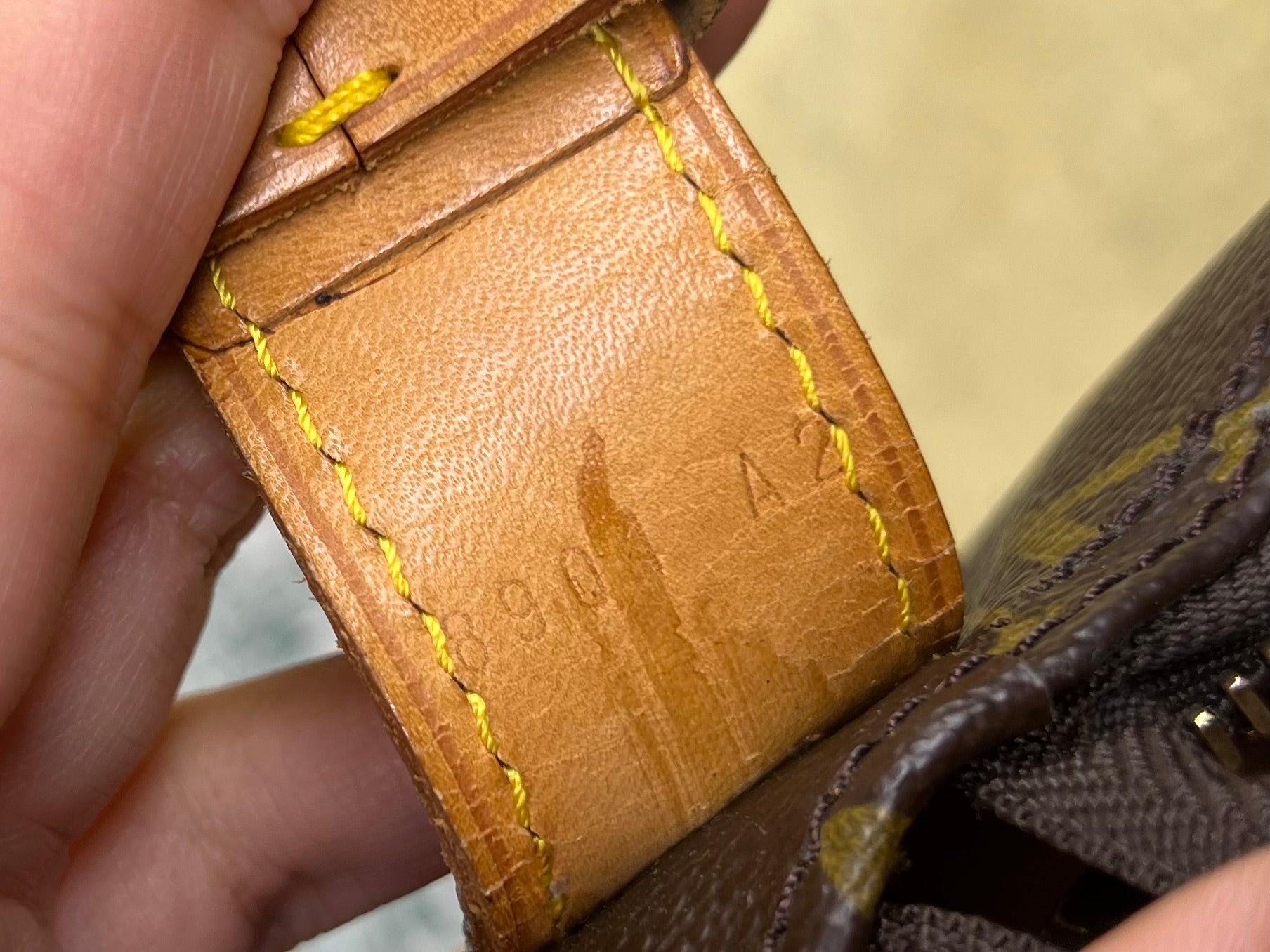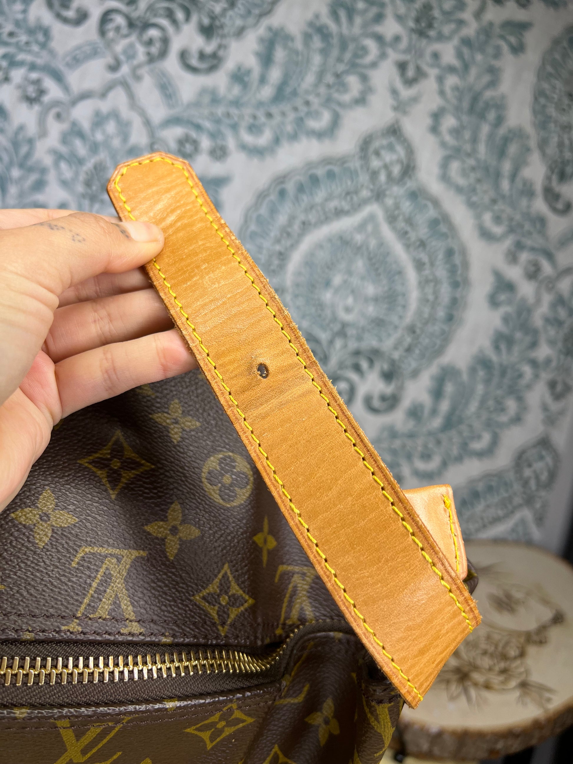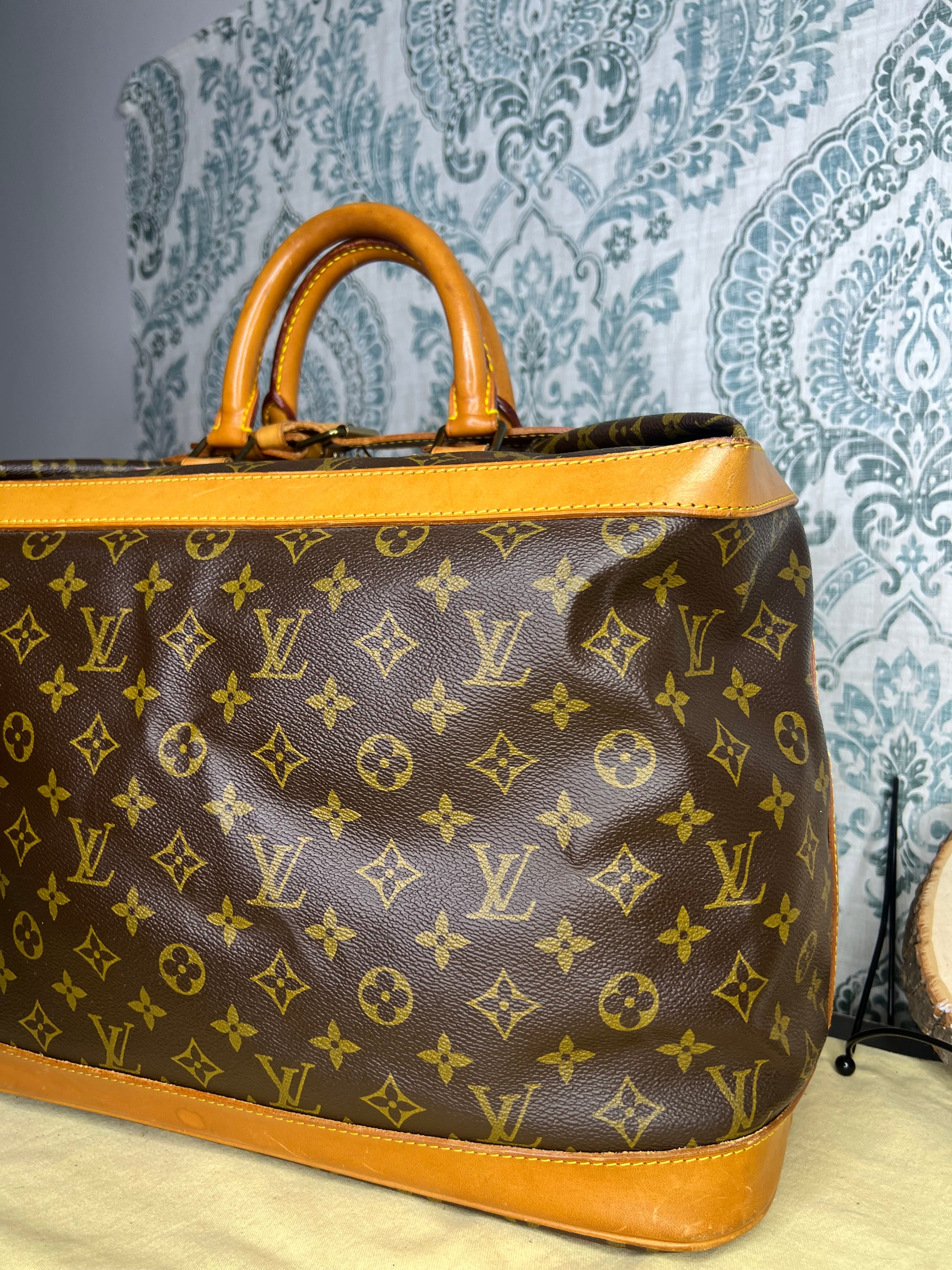 🌸 Canvas has some cracking towards top zipper where the bag folds. No large missing pieces of canvas. Canvas is overall in great shape. Monogram is very bright and clear.