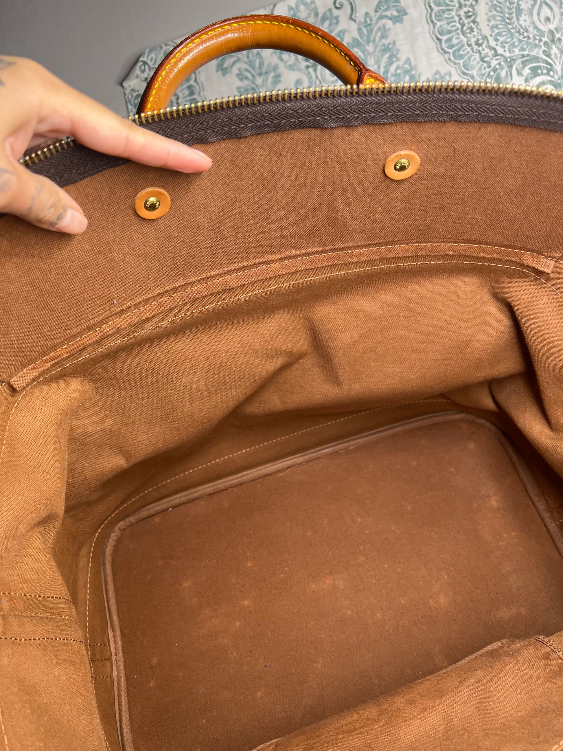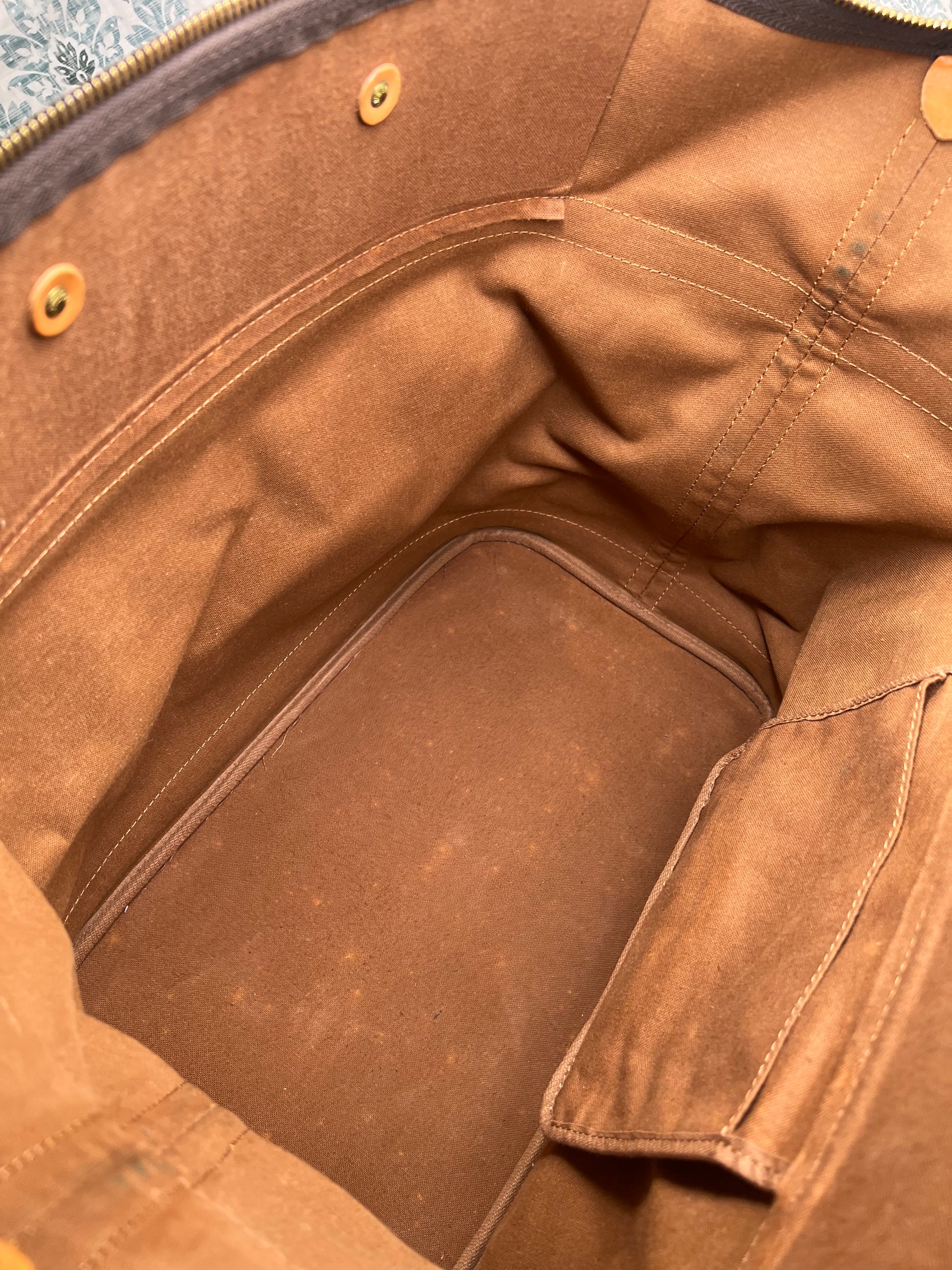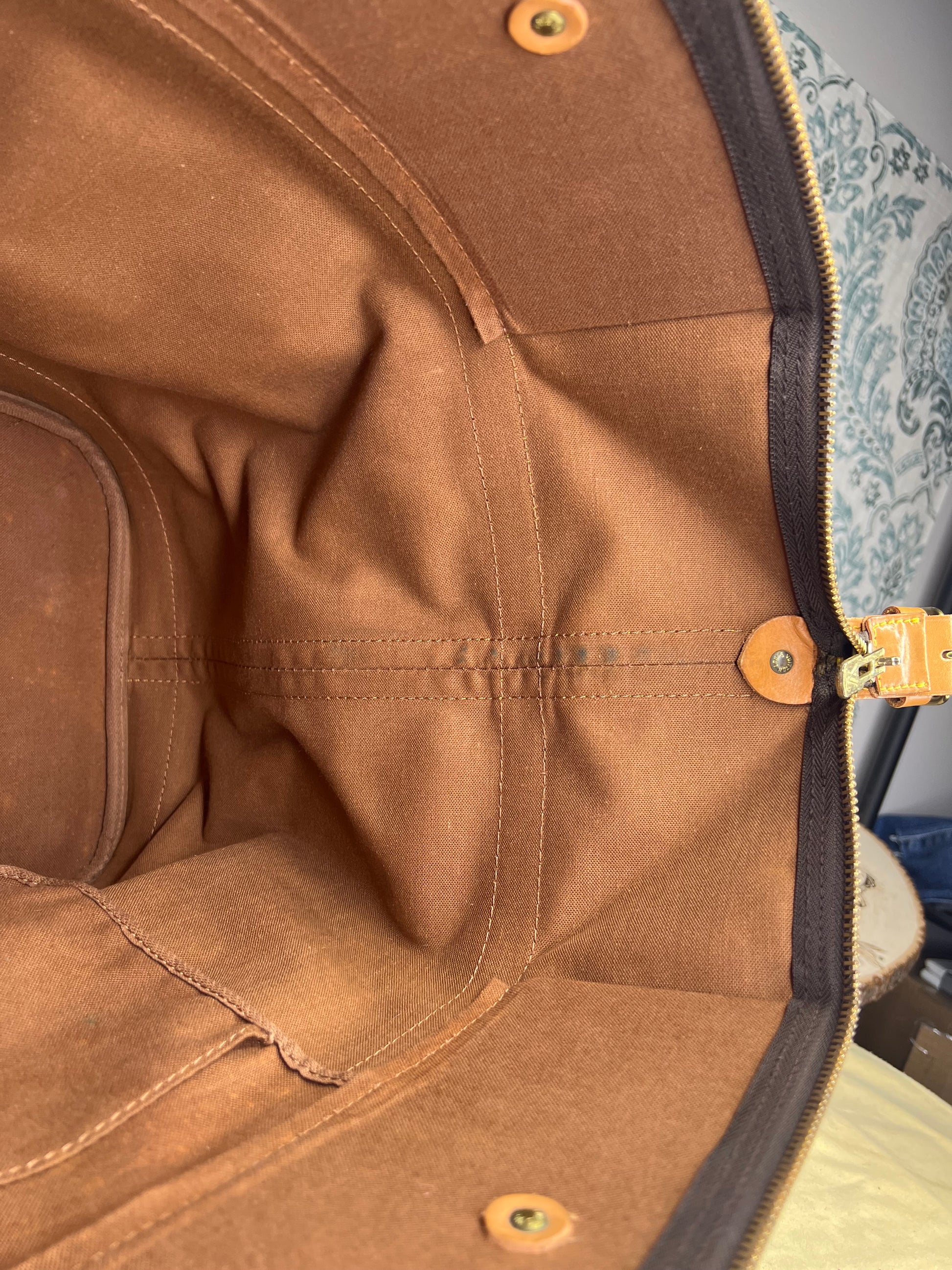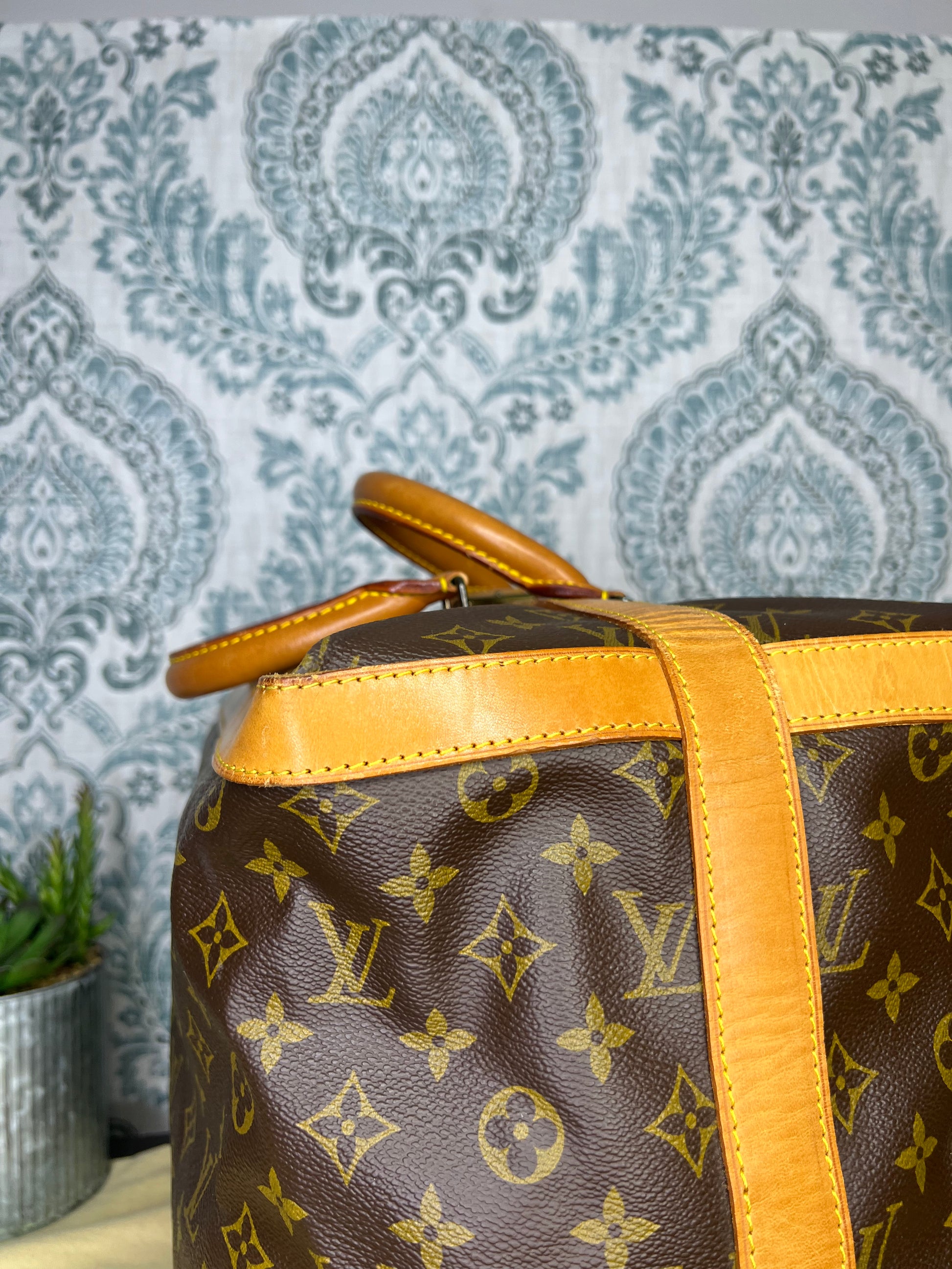 🌸 Canvas has some cracking towards top zipper where the bag folds. No large missing pieces of canvas. Canvas is overall in great shape. Monogram is very bright and clear.