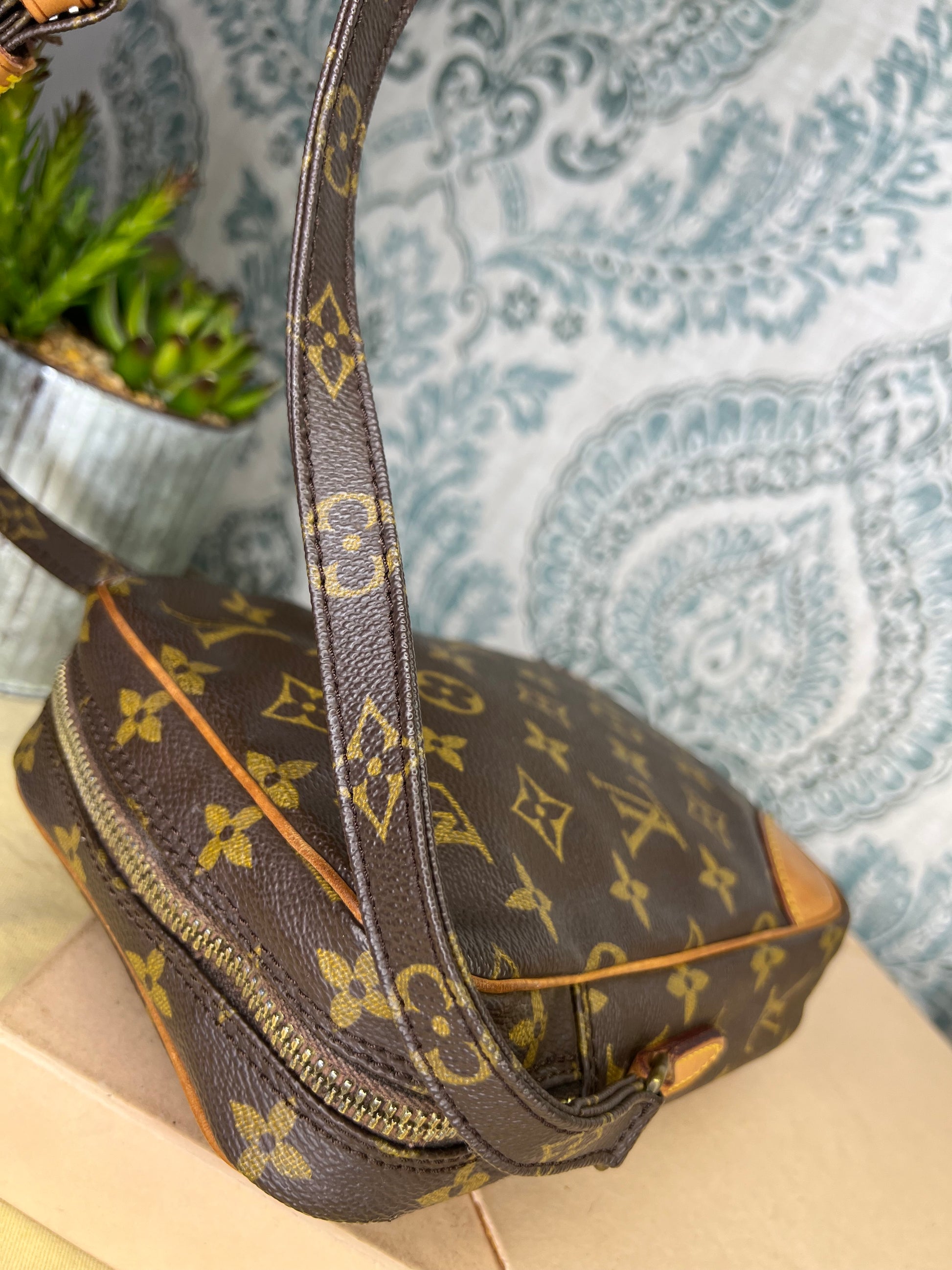 πΈ Canvas has minor chipping at top corner of purse, shown in photo with green circle. Canvas is overall in good shape. Monogram is very bright and clear through out