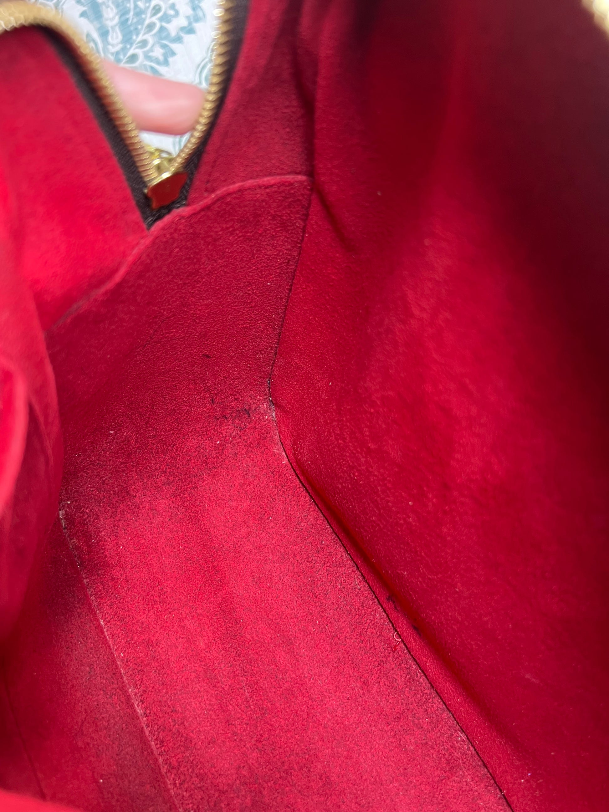šø Monogram is bright and clear. Canvas is crack free. The front pocket flap corners do curl upwards