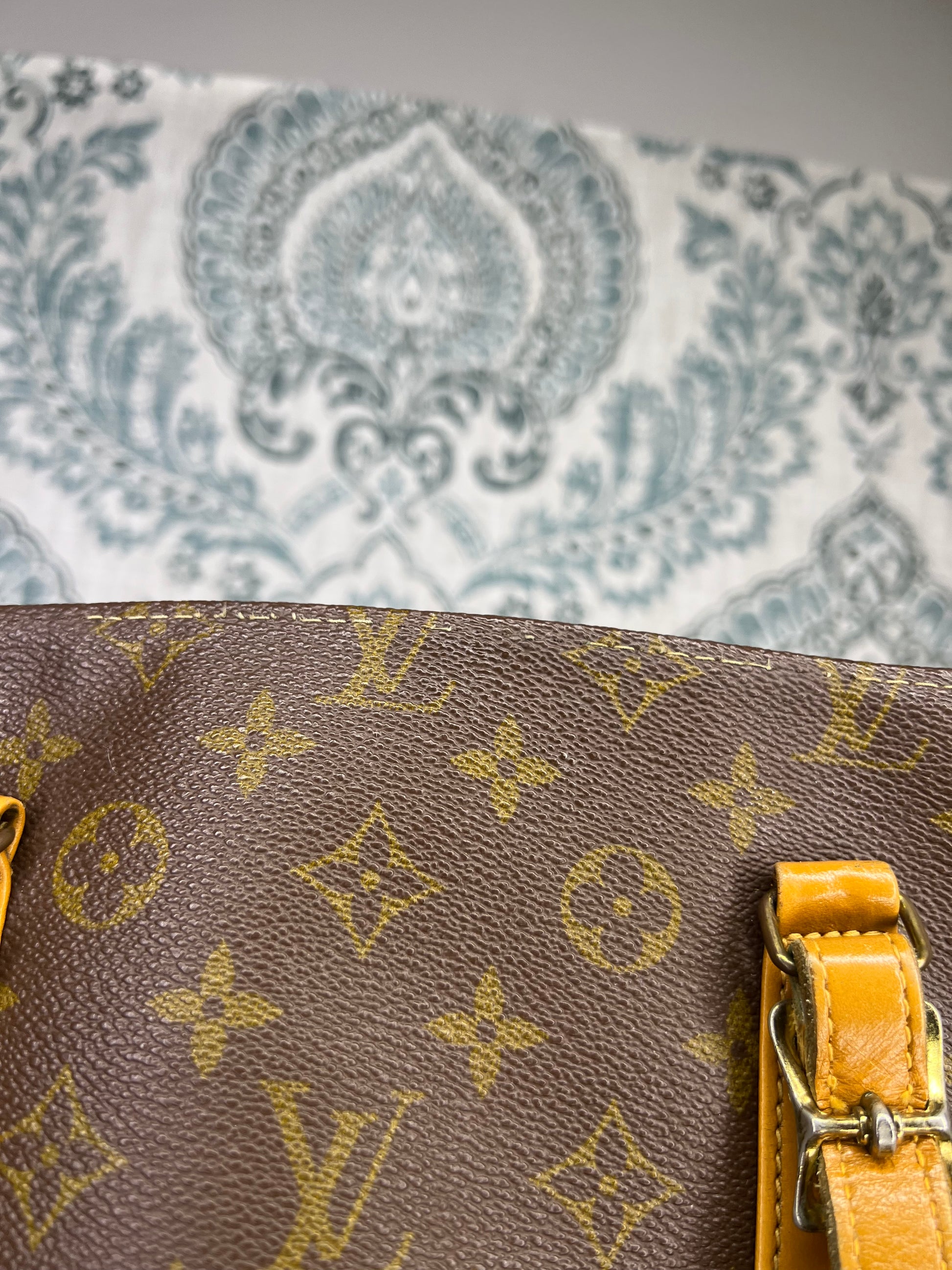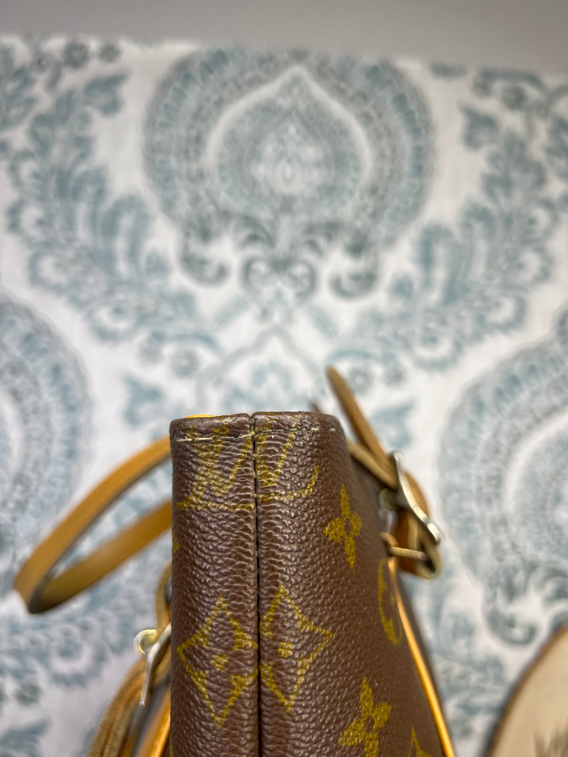 cracking at top corner edge of the bag. No other canvas wear and itβs overall in nice shape. There are popped stitches at the top edge of the bag