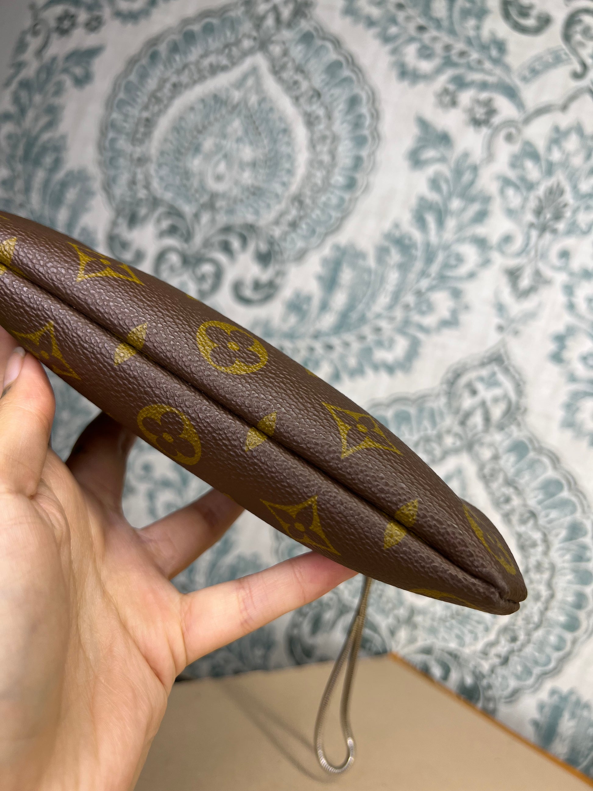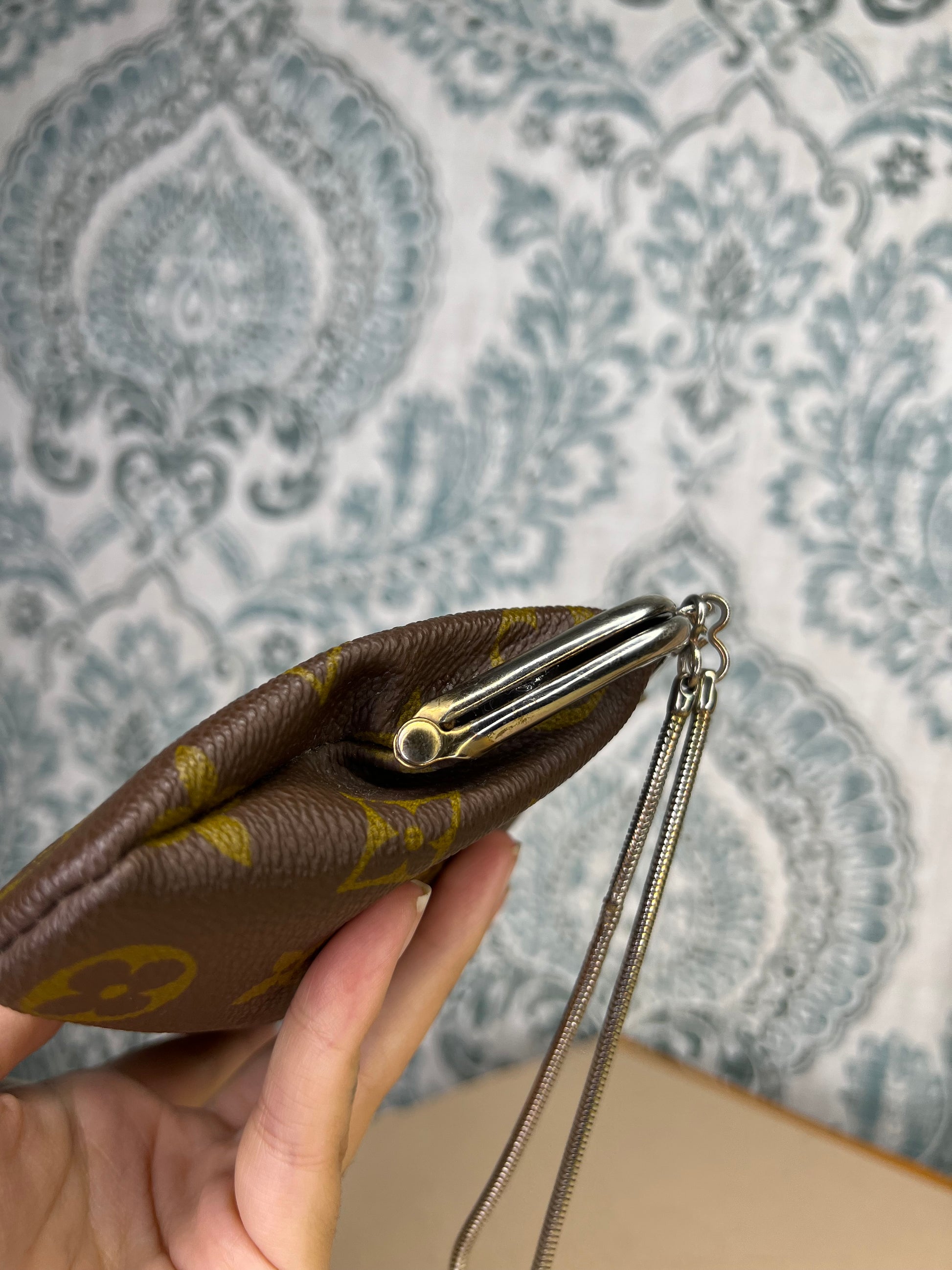 šø Hardware does have scratches and normal wear. Silver hardware. Closure is secure and tight. Wristlet strap is strong, minor wear/denting on wristlet strap