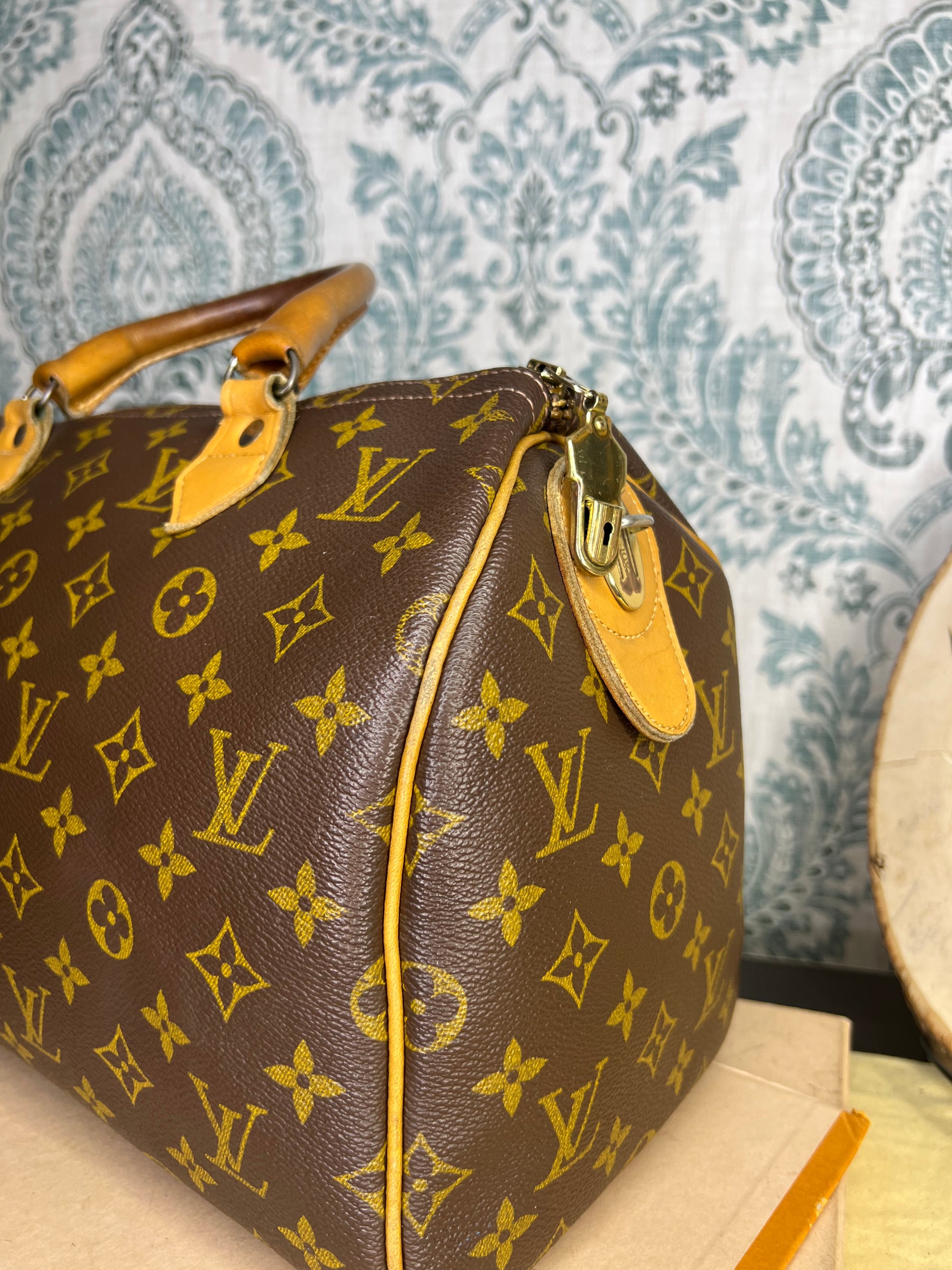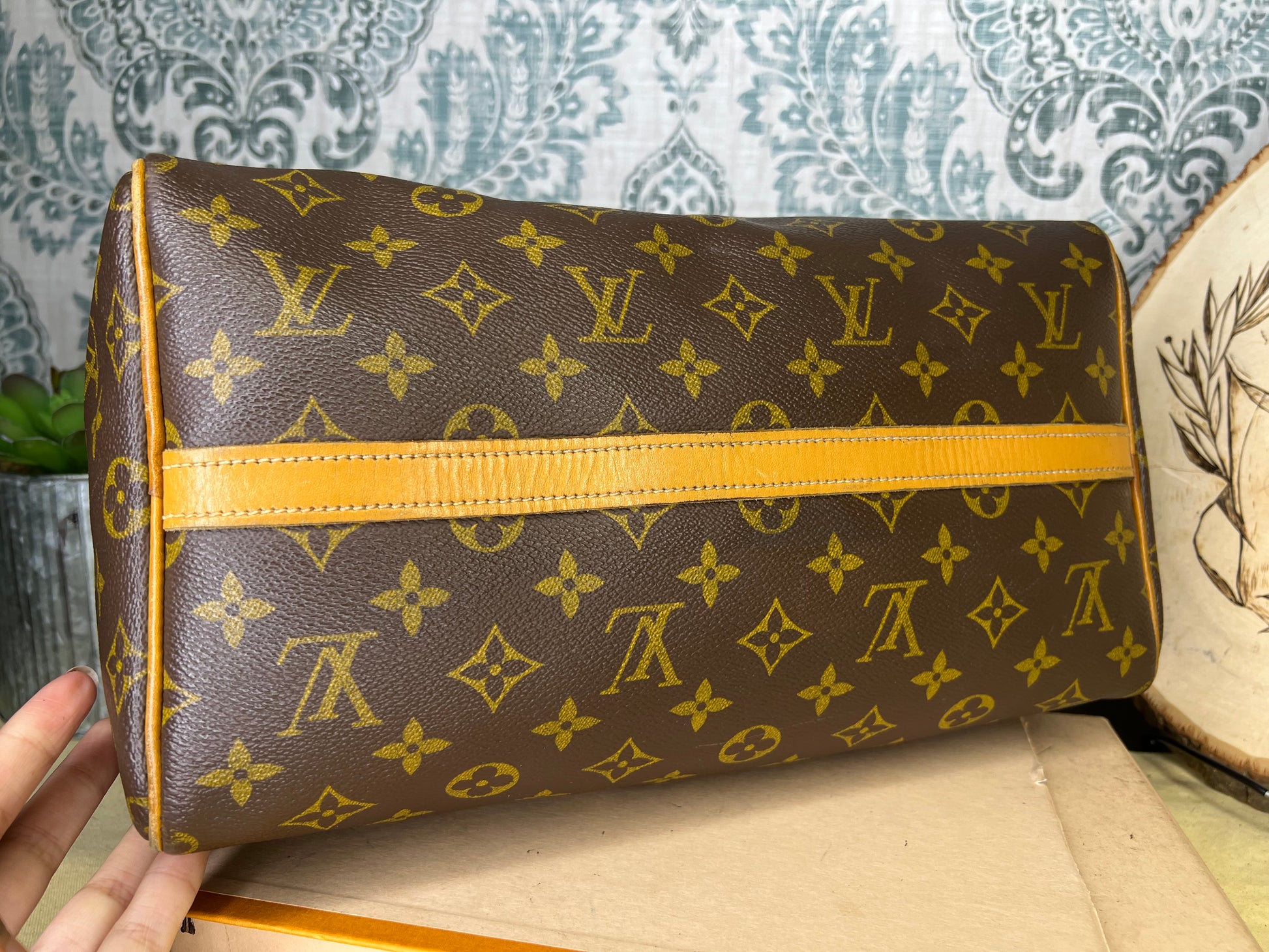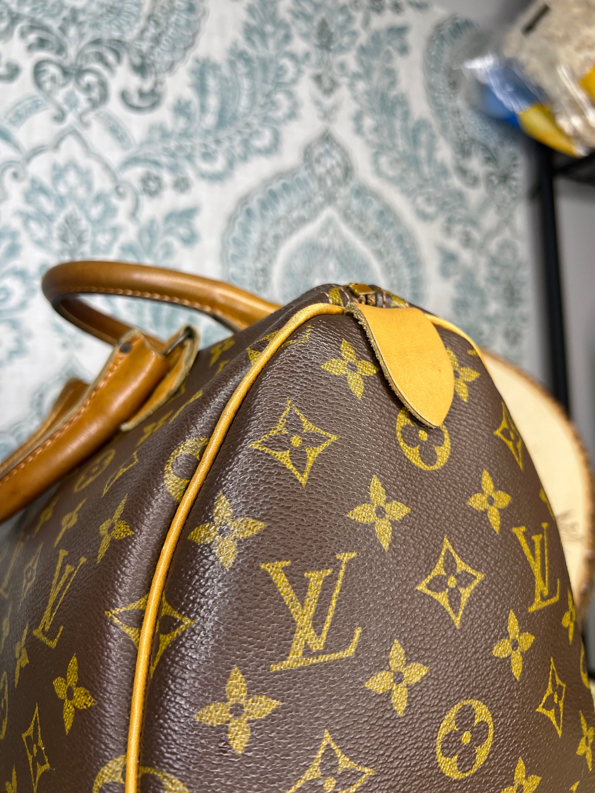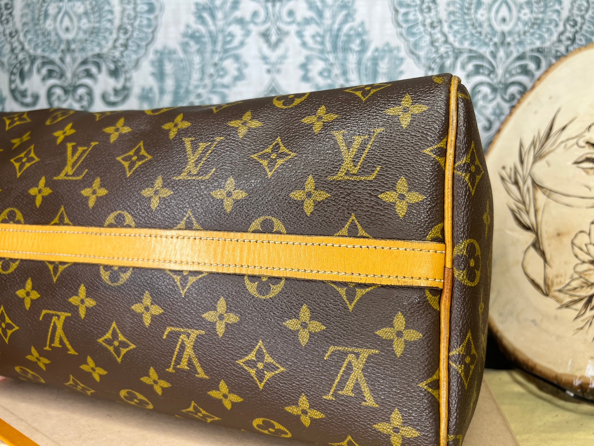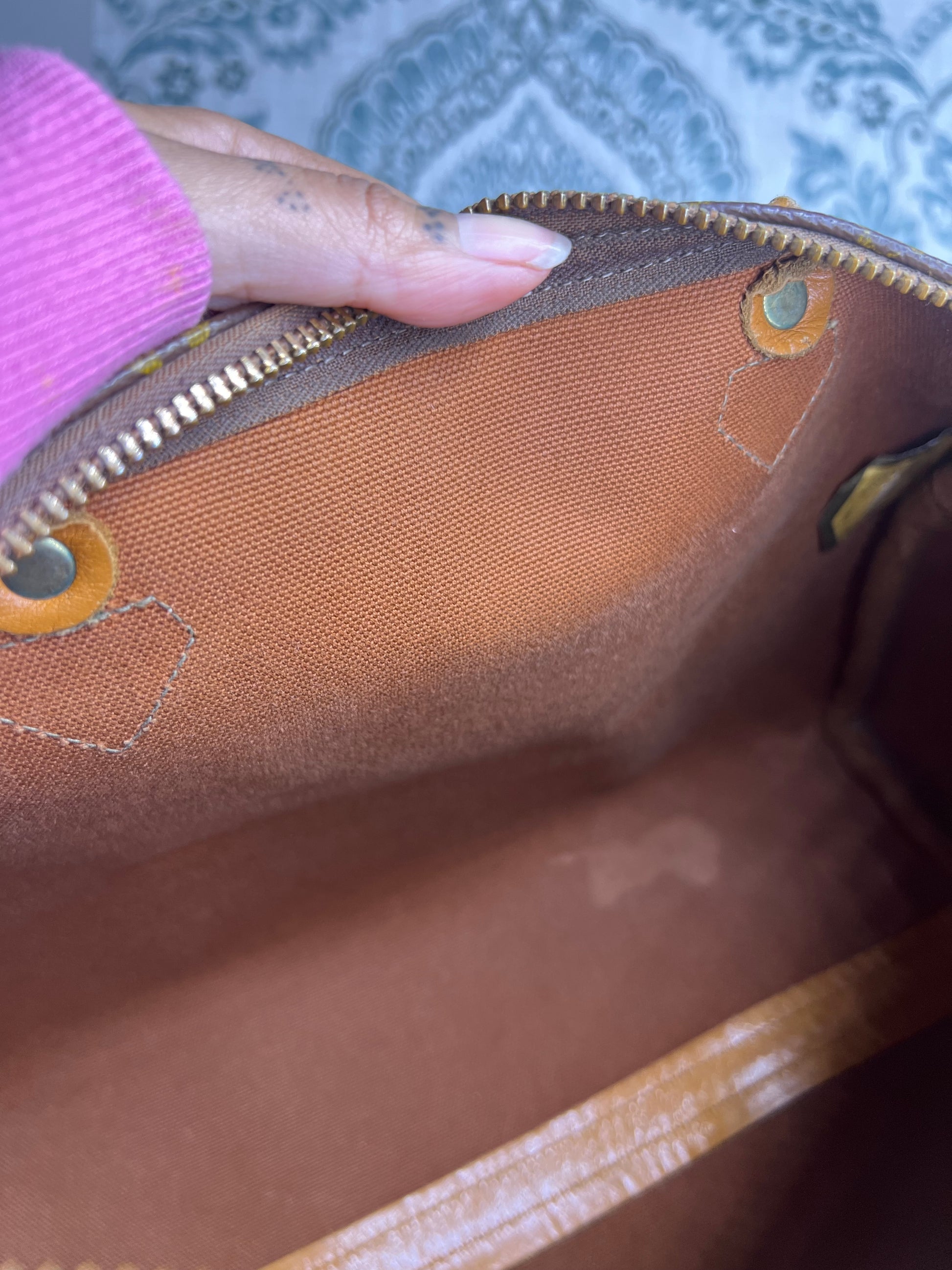 🌸 Canvas is in great shape and crack free. Nice and thick vintage canvas. Monogram is bright and clear. Bag has a nice structure to it