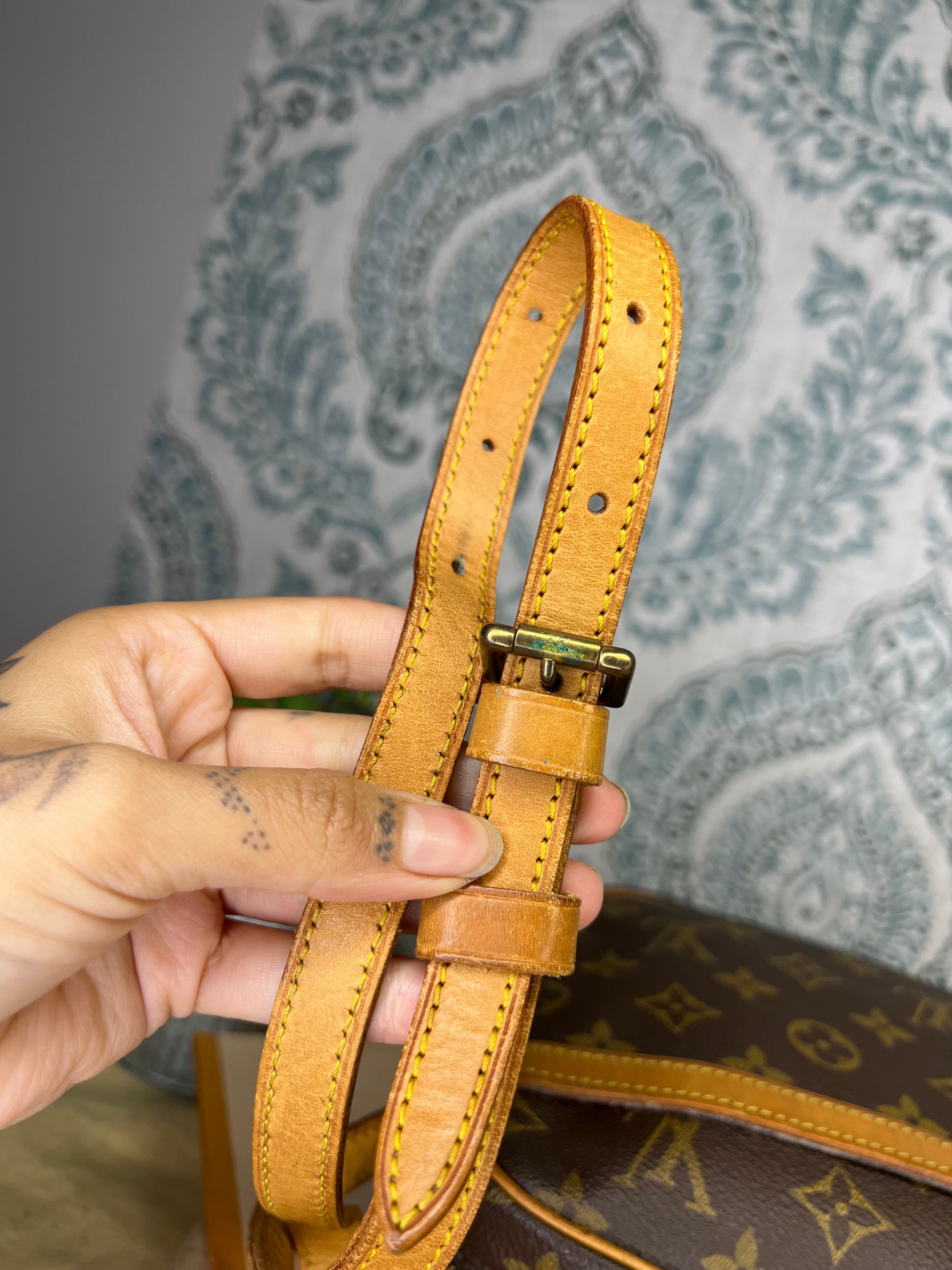 πΈ Leather has faint marks, but no major stains. Buckle piece has a few black specks. Buckle piece is intact. Strap has wrinkles and minor surface wear, but has no deep cracks and is strong. Piping is intact