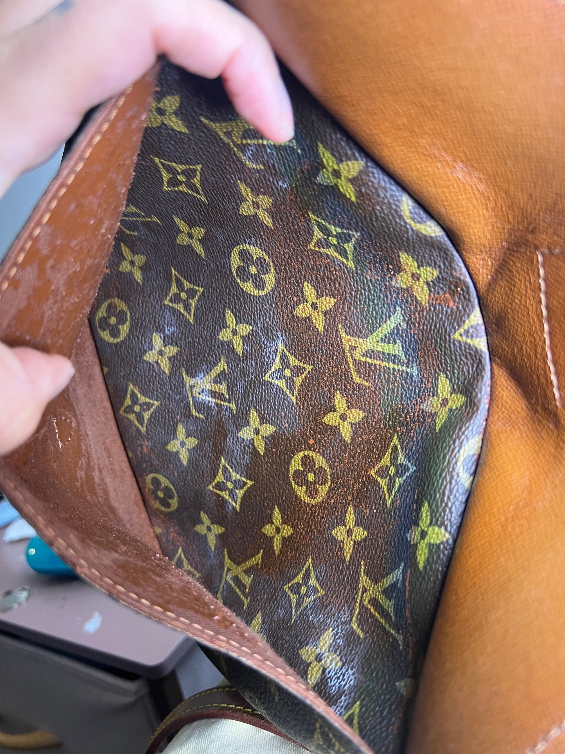 🌸 Main compartment is clean overall. Interior zipped pocket and exterior front/back pocket have peeled lining. These can be relined or cleaned out to be made usable. Main compartment has no issues with use.