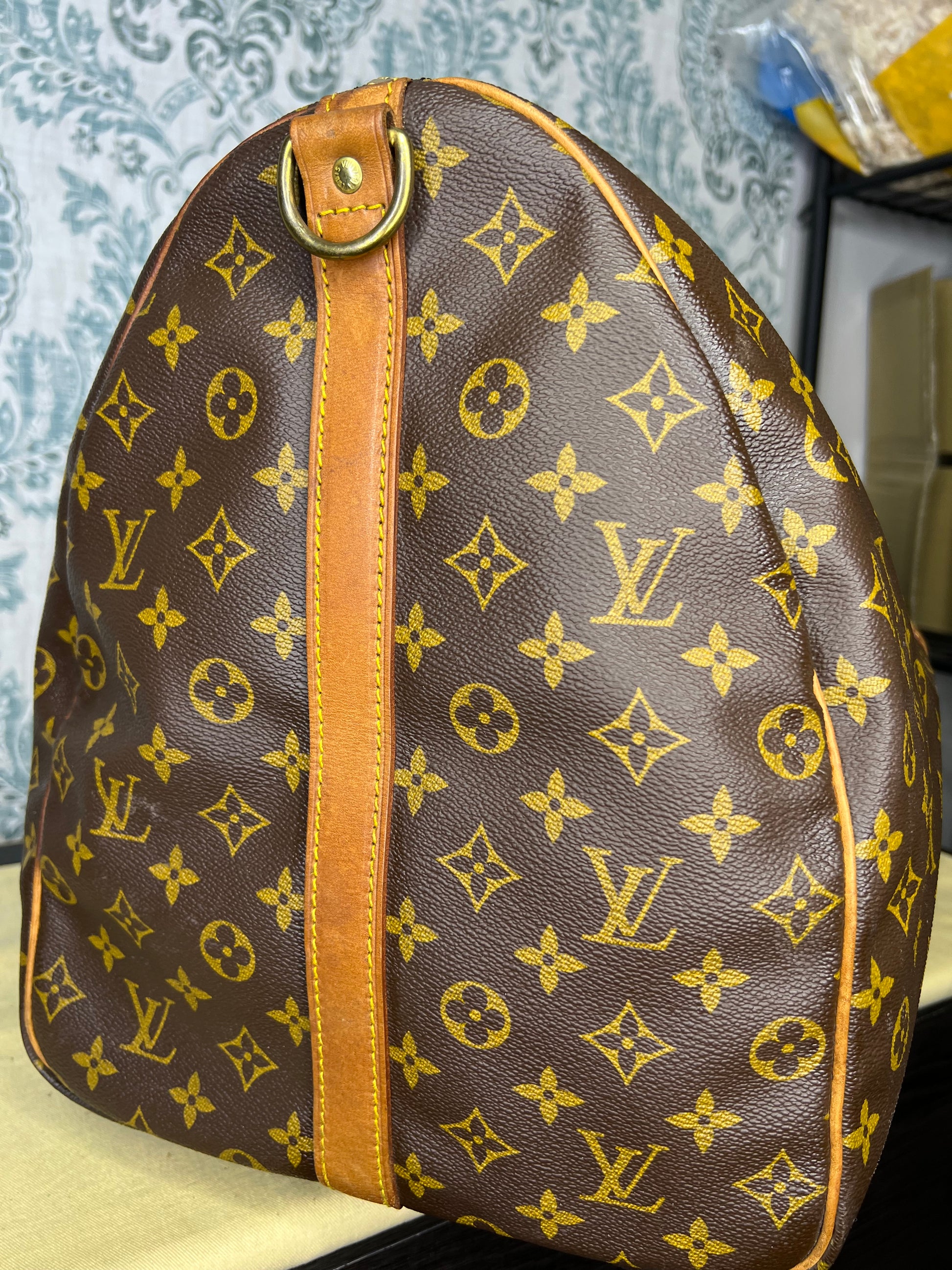 🌸 Zipper is working properly. Hardware is in good shape overall. One rivet has detached from the side band of the bag, shown in photo with green circle