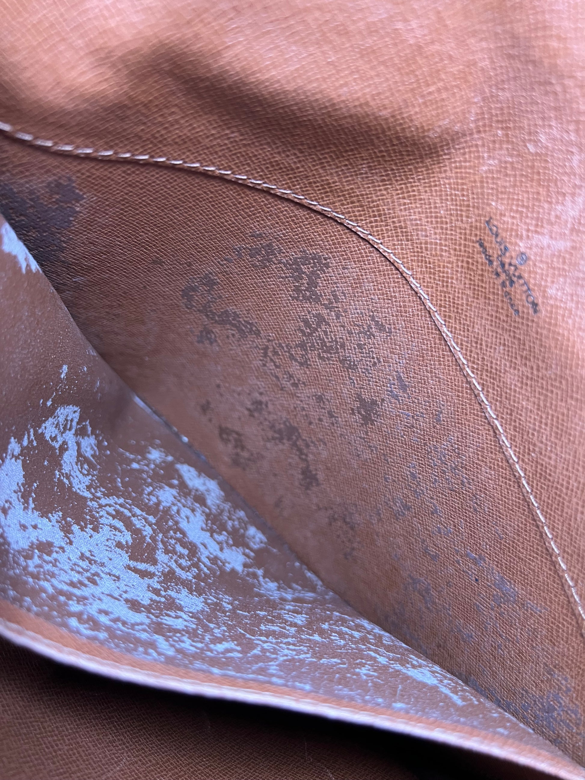 ๐ธ Canvas is in great shape. Thereโs only a small amount of hairline cracking hidden in top side folds of the clutch. No major canvas wear. Monogram is very bright and clear