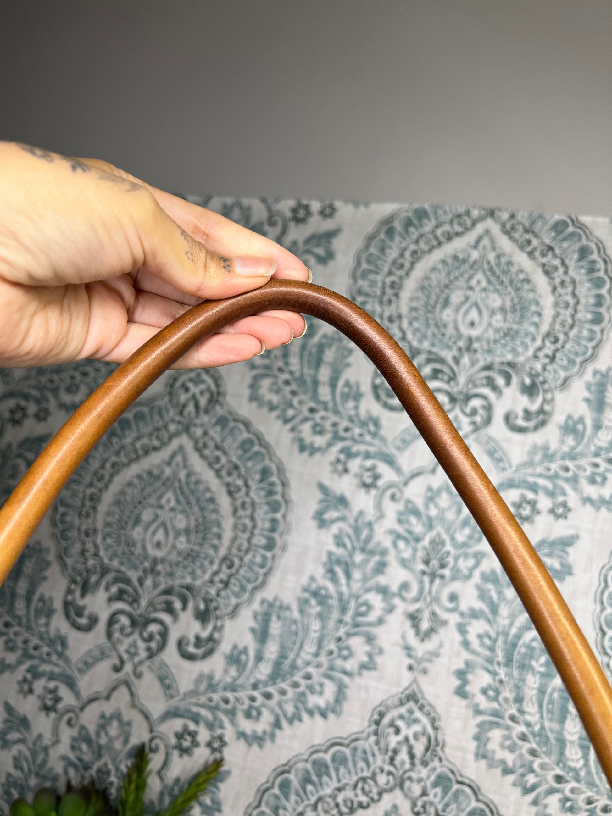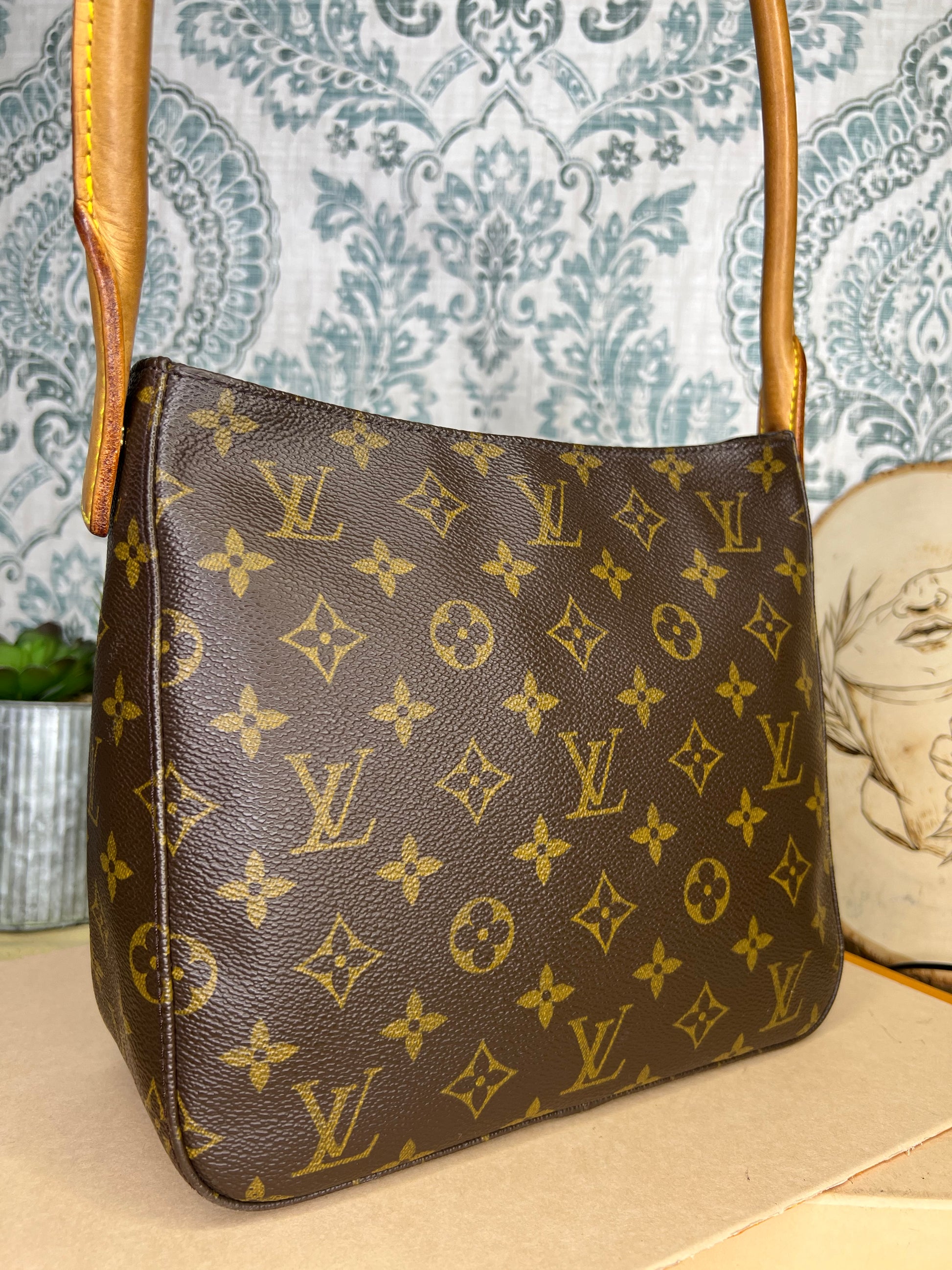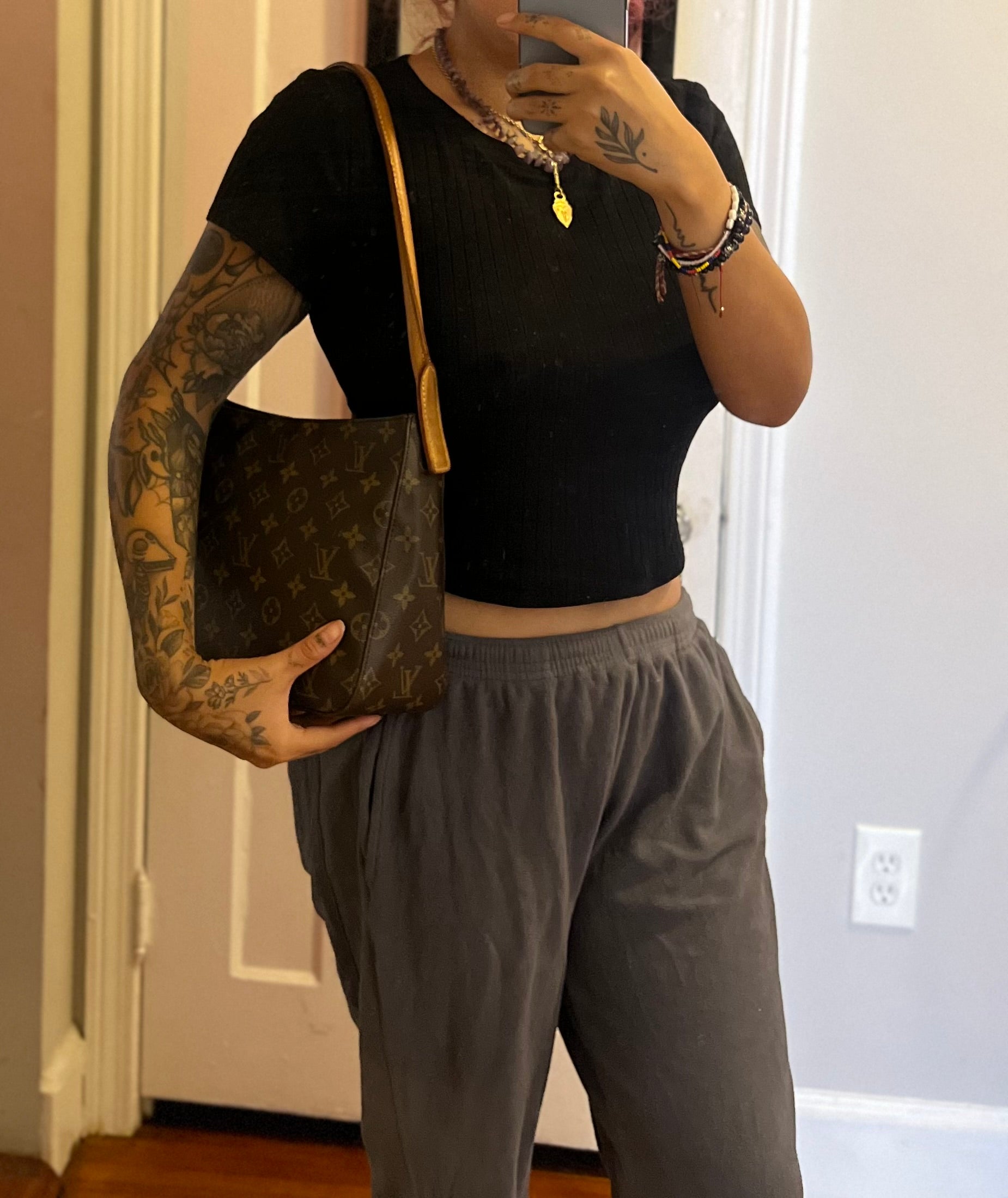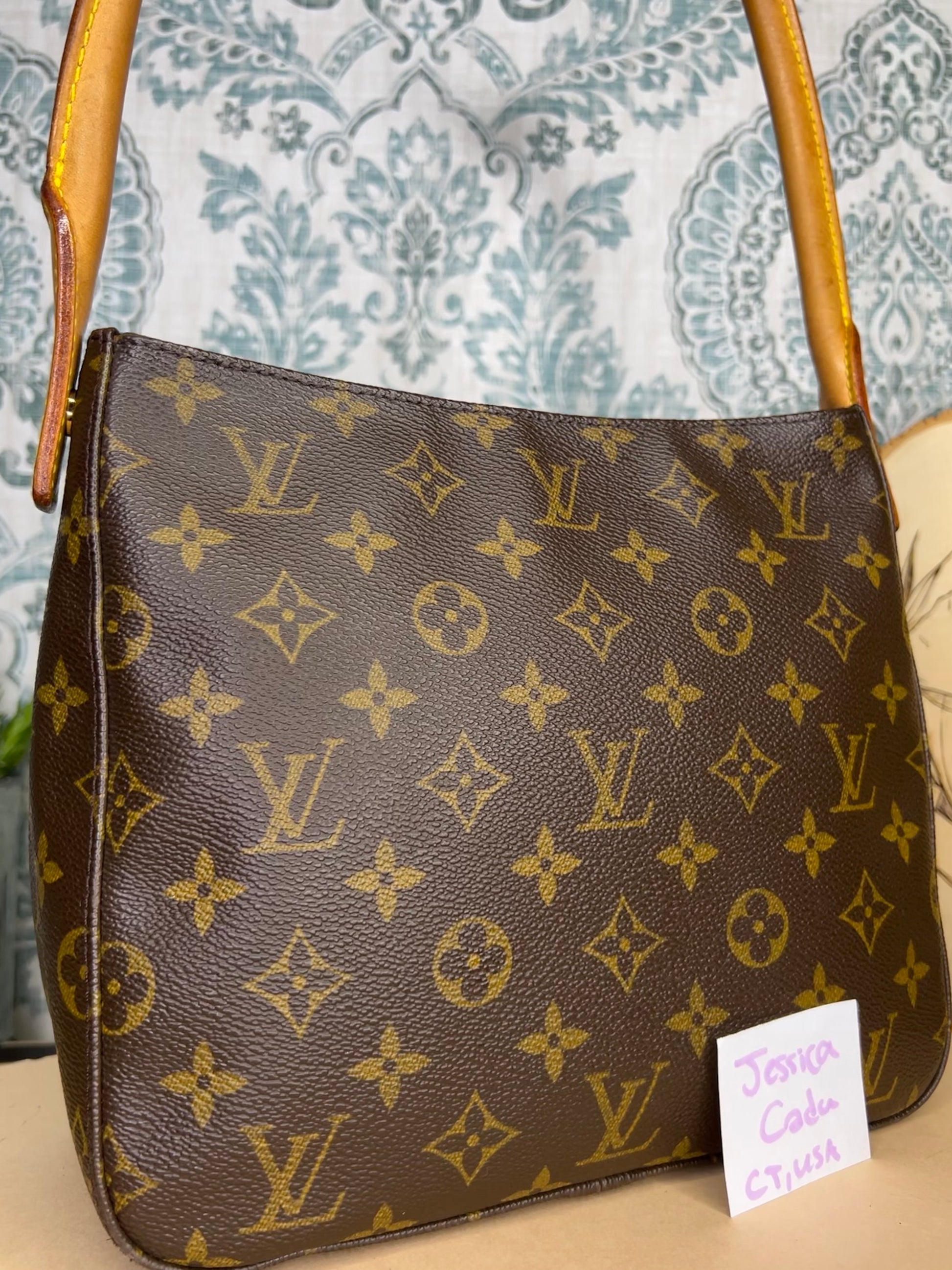 🌸 Shoulder strap has darkened towards the top of the strap, but is in strong shape. It is flexible and does not have any cracking, only wrinkles. Faint water spots present.