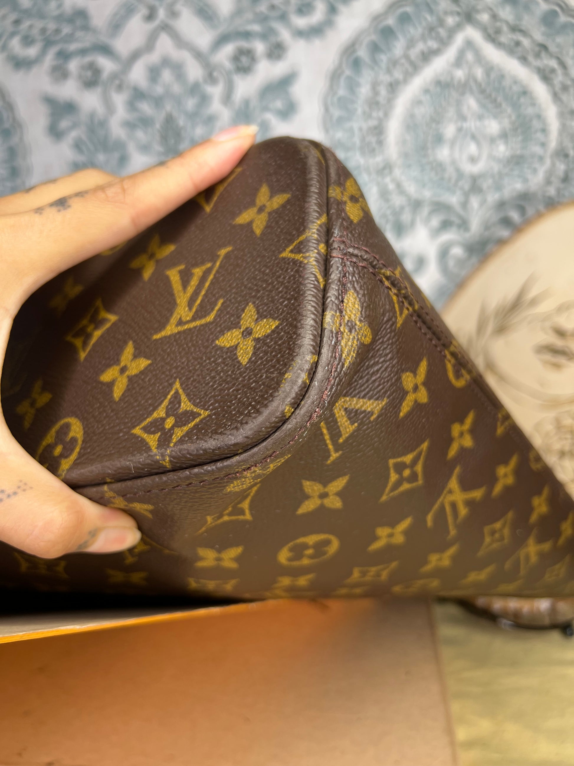 πΈ Monogram is bright and clear throughout the bag, no exterior cracks. Only a small amount of canvas cracking at the top interior corners of the bag. Shown in photo green circle. Canvas is a bit wrinkled at base. Base corners of the bag have rubs and wear, very minor canvas chipping at base corners. No torn or through holes